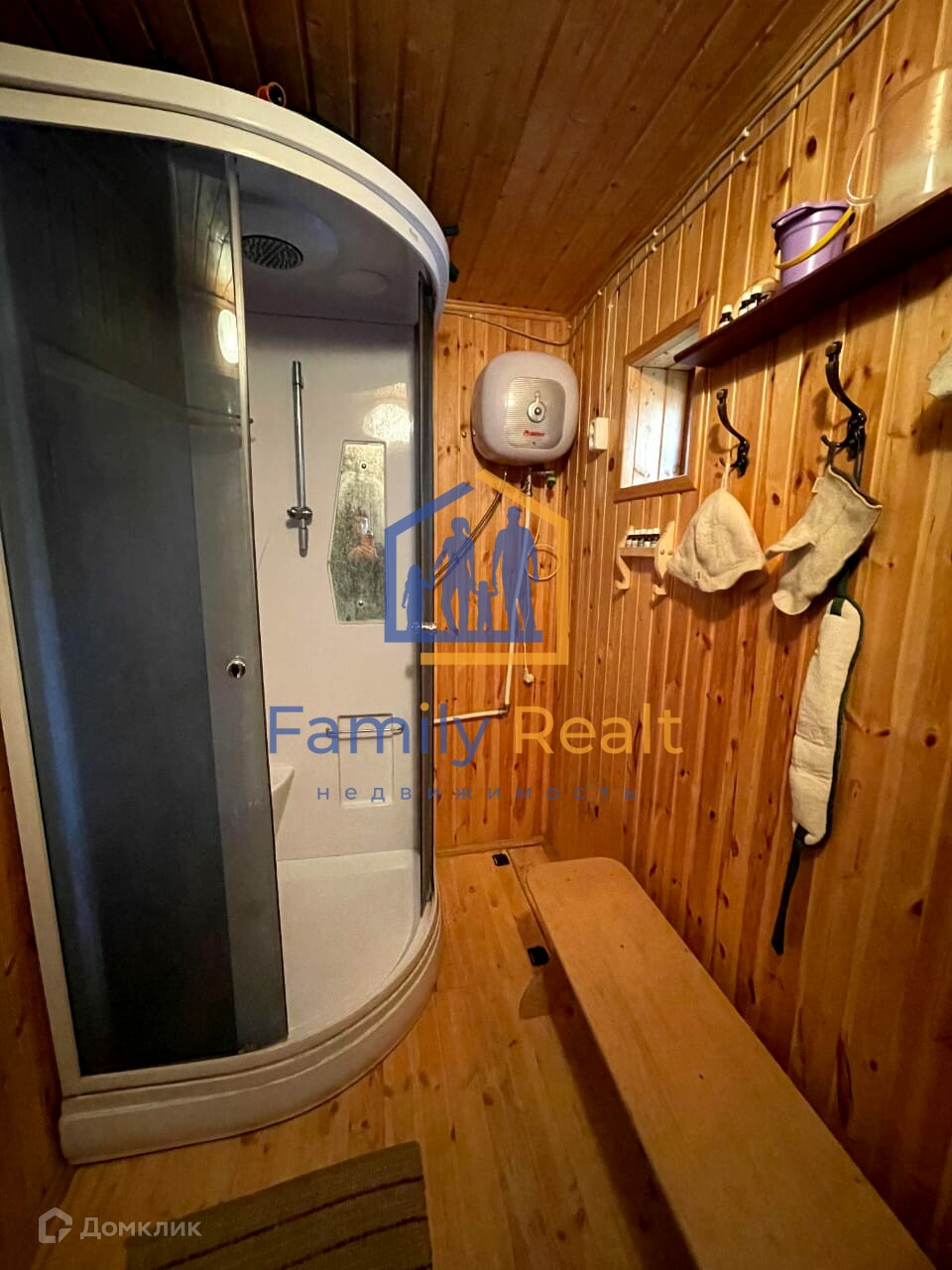 На участке также имеется баня с душевой кабиной и небольшой комнатой отдыха.