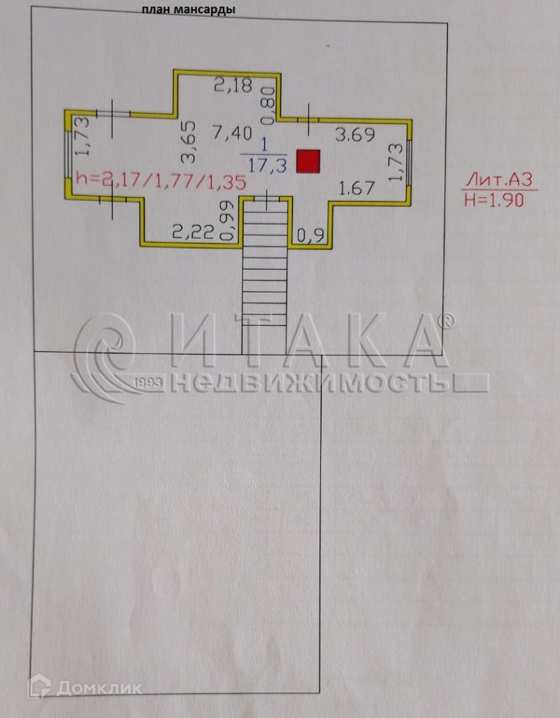 3 этаж: - мансарда 17,3 м2.