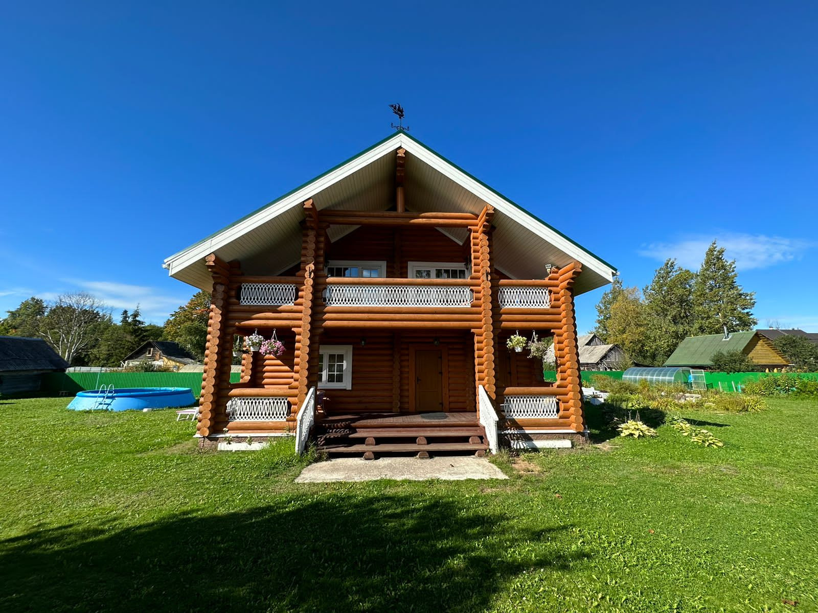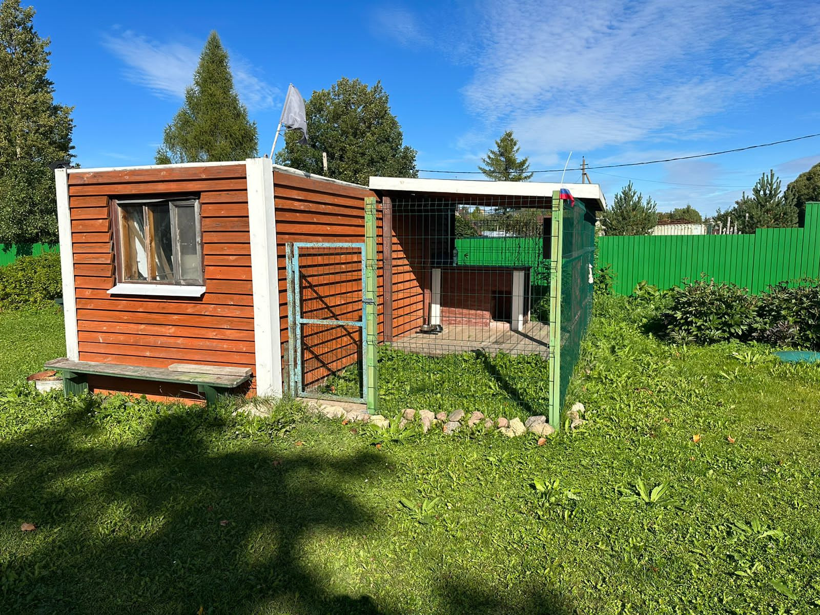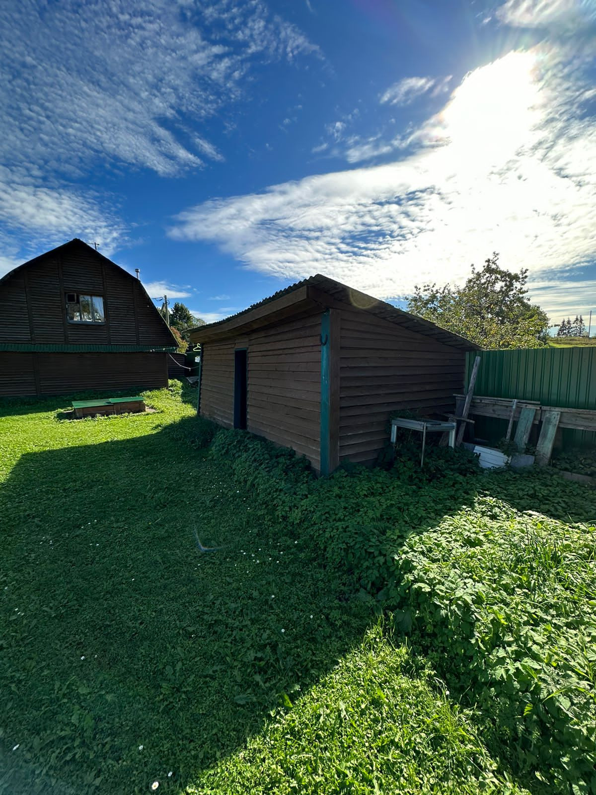 На участке : вольер для собак, зона для шашлыков и отдыха, дровник, хоз. помещение, бассейн, баня с купелью и комнатами отдыха, теплица, а так же много посадок ( смородины, крыжовник, сирень и тд ).