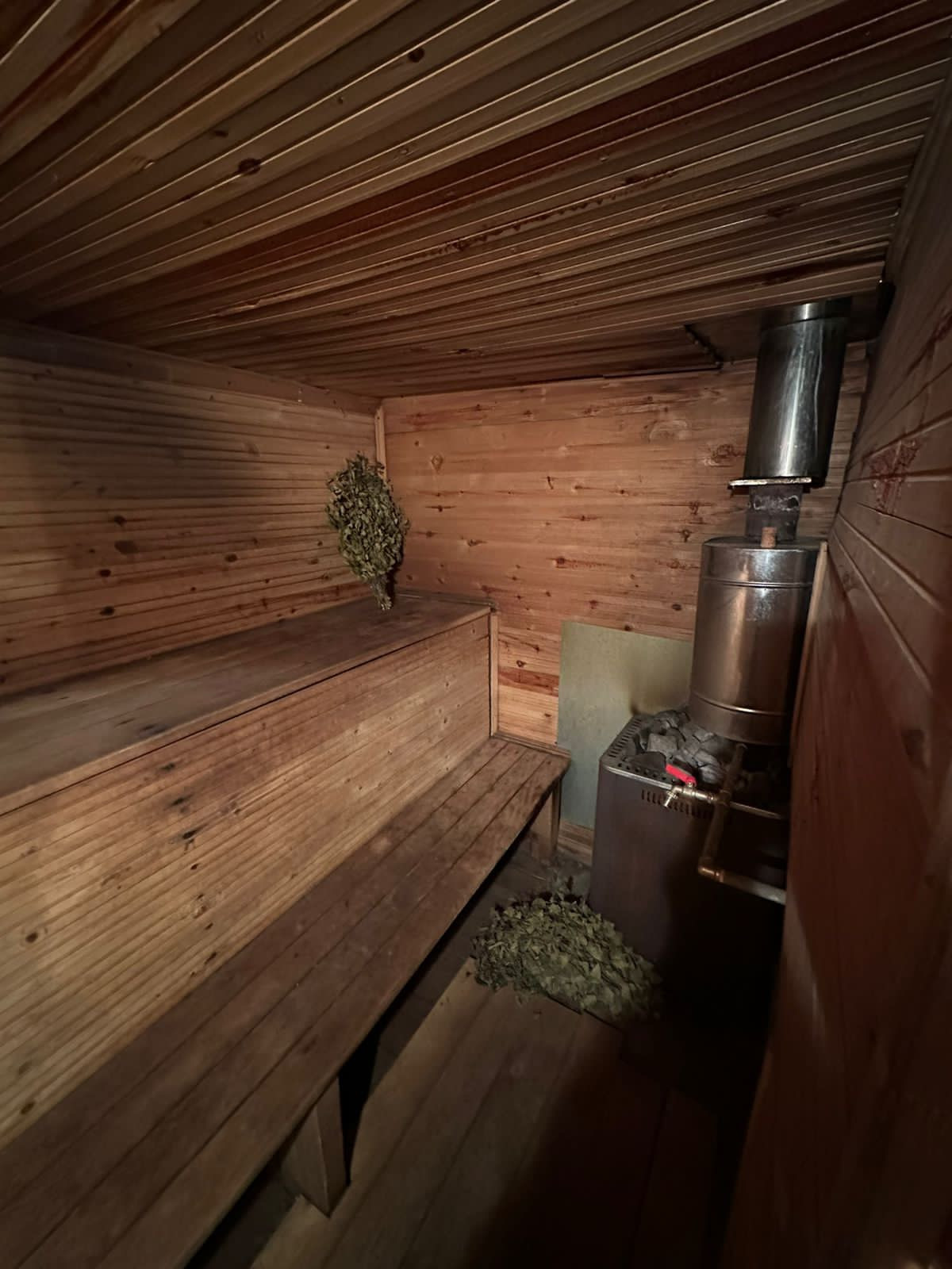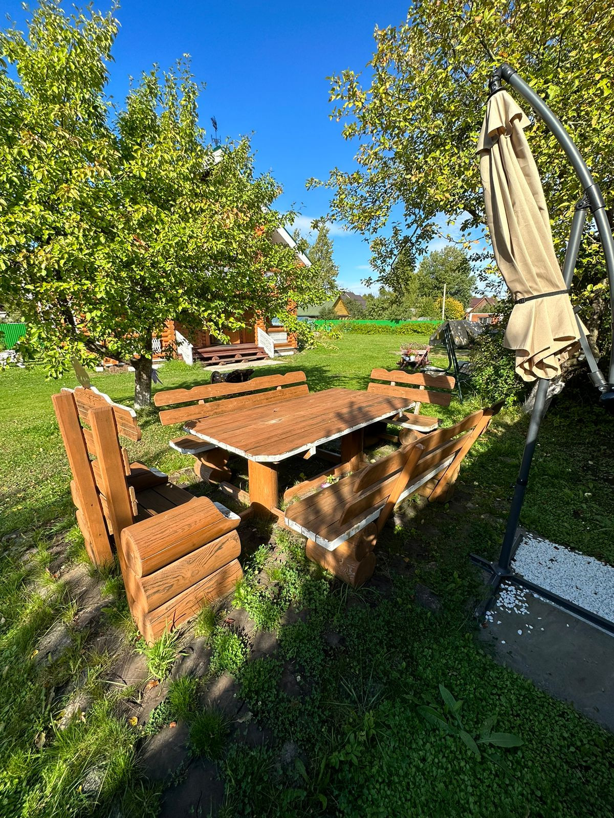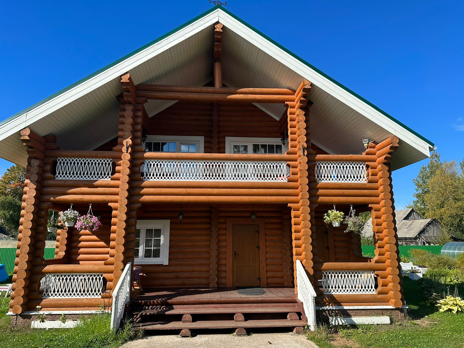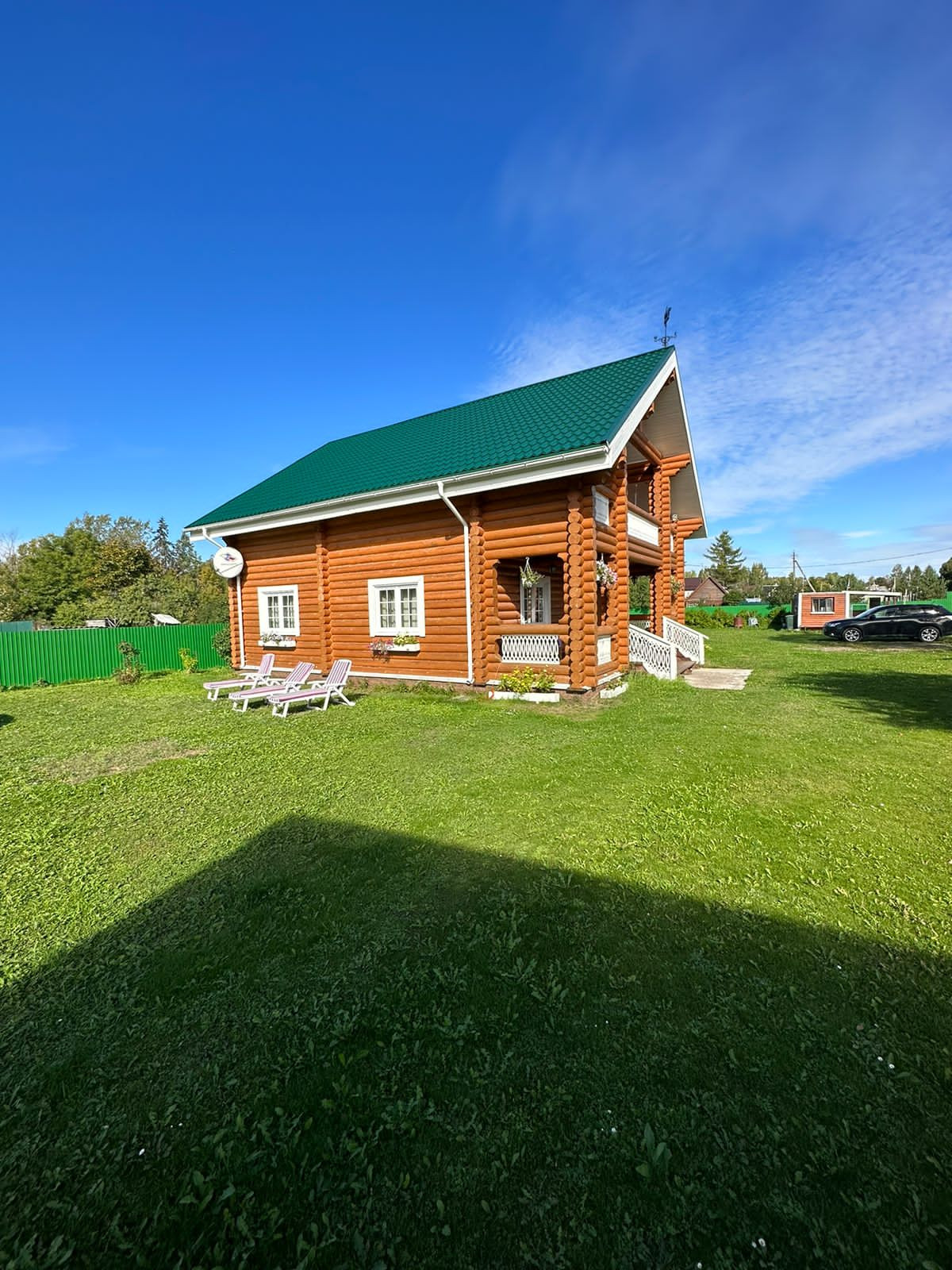 На участке : вольер для собак, зона для шашлыков и отдыха, дровник, хоз. помещение, бассейн, баня с купелью и комнатами отдыха, теплица, а так же много посадок ( смородины, крыжовник, сирень и тд ).