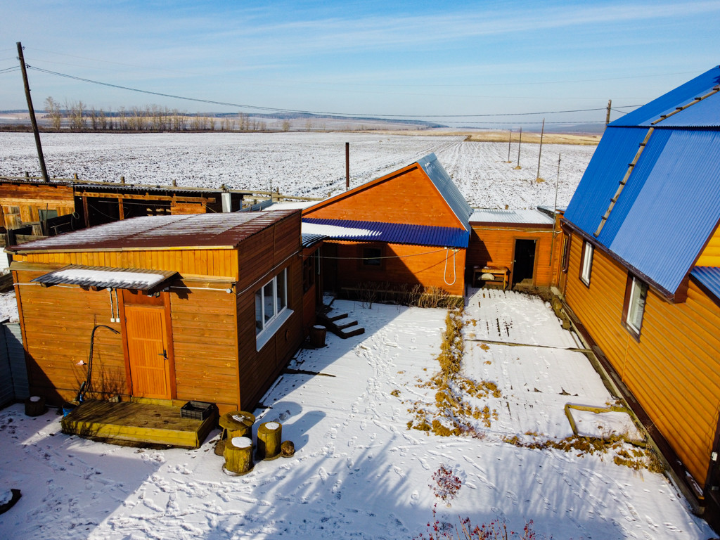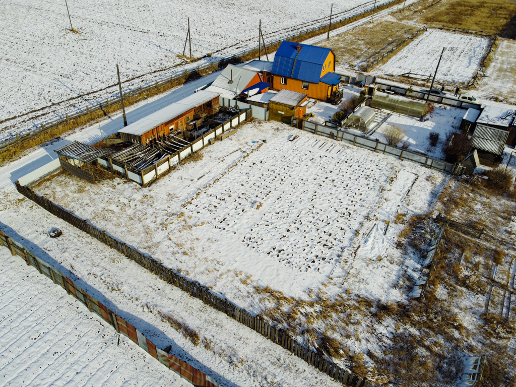 За огородом огорожена зона для скотного двора, построены из бруса 3 стайки для содержания скота и птиц.