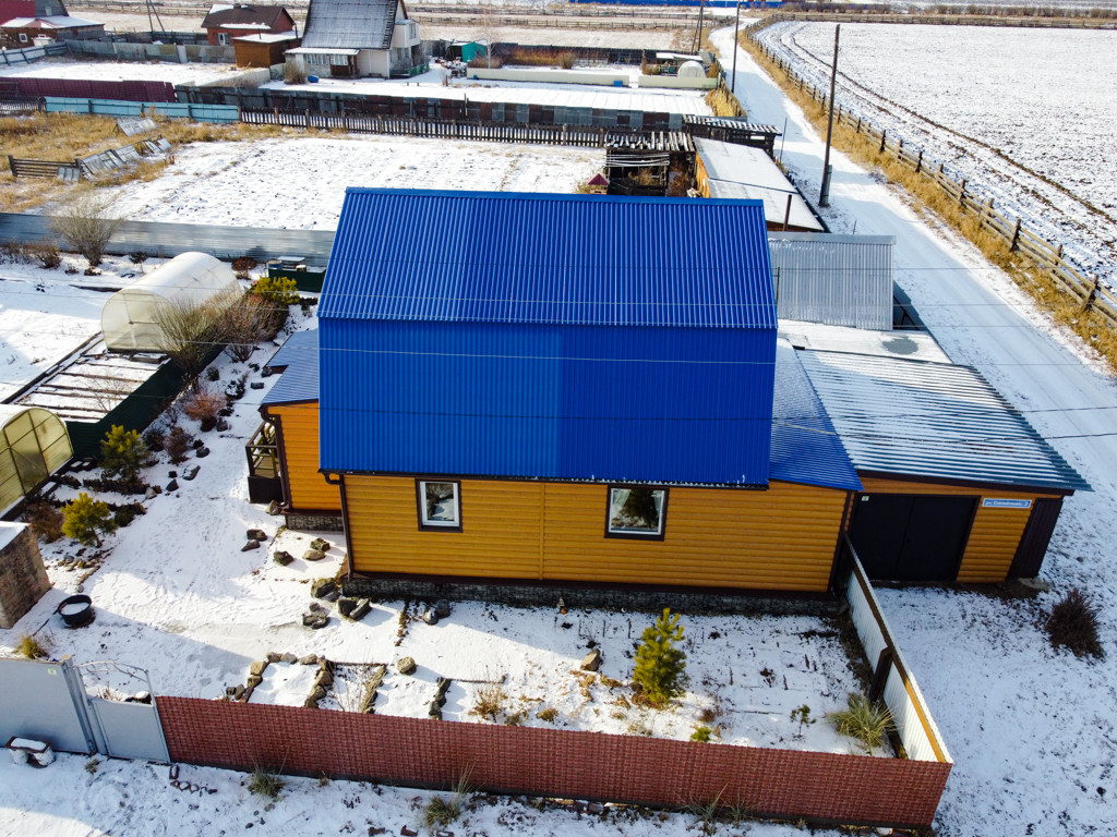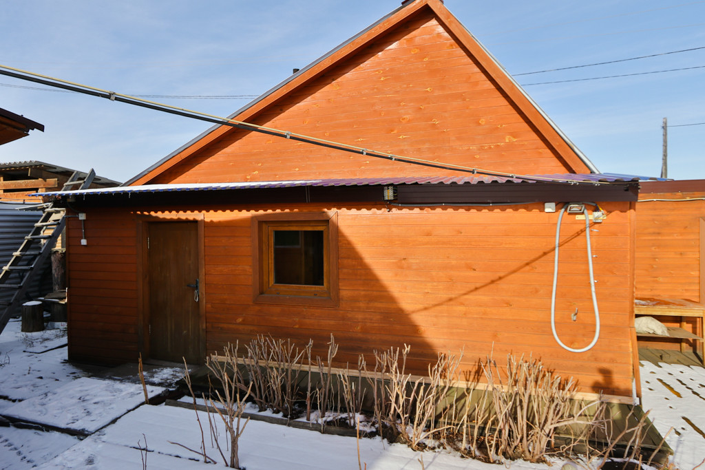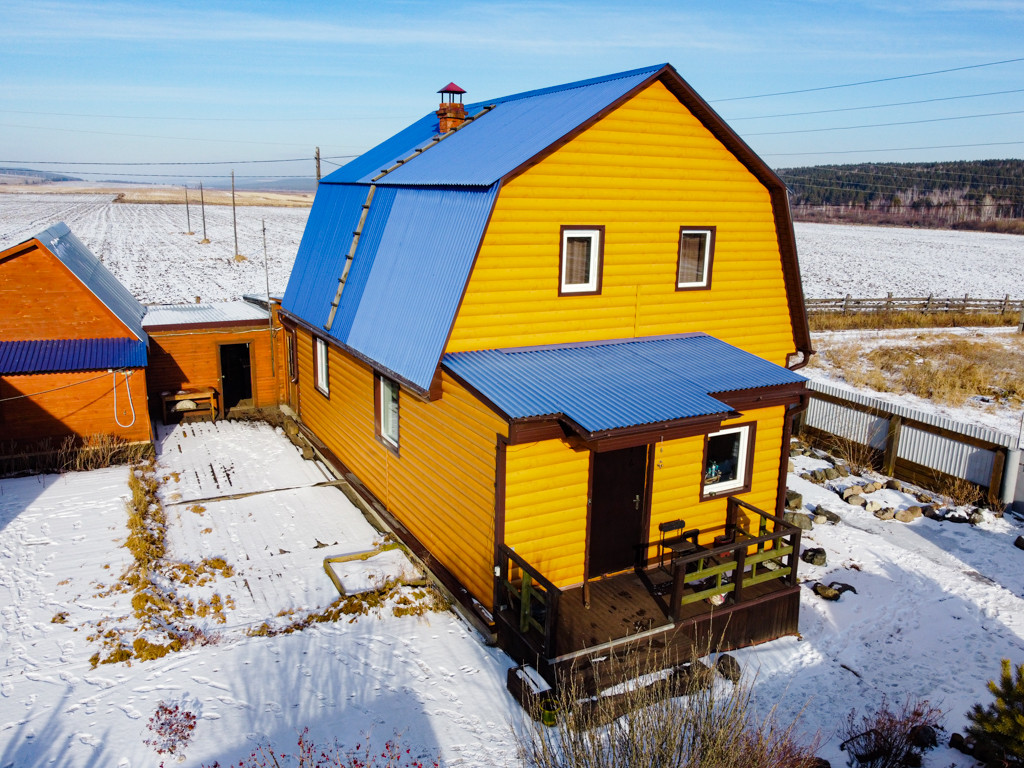 Дом утеплён внутри и снаружи, обшит металлическим сайдингом.