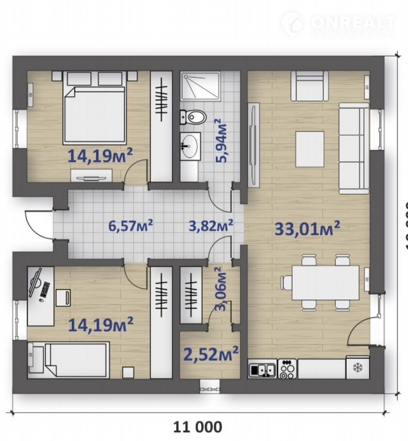 Общая площадь 90 м2