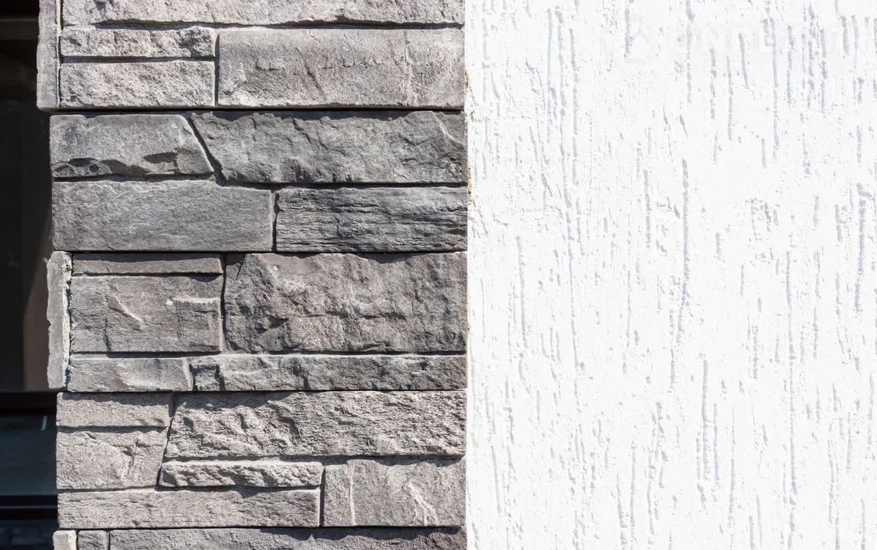 Стeны: кeрамзитoблoк + утеплитeль + штукaтуркa + вxодная зoна oтделaна кaмнeм
