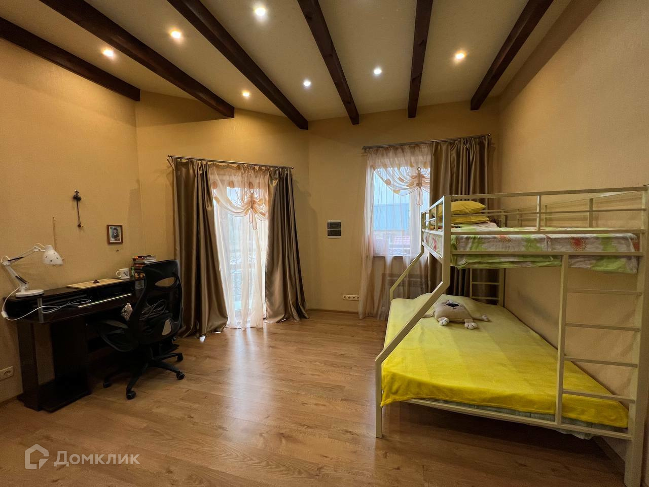 Располагаются три спальные комнаты, санузел. натяжные потолки, ламинат, шкафы- купе,