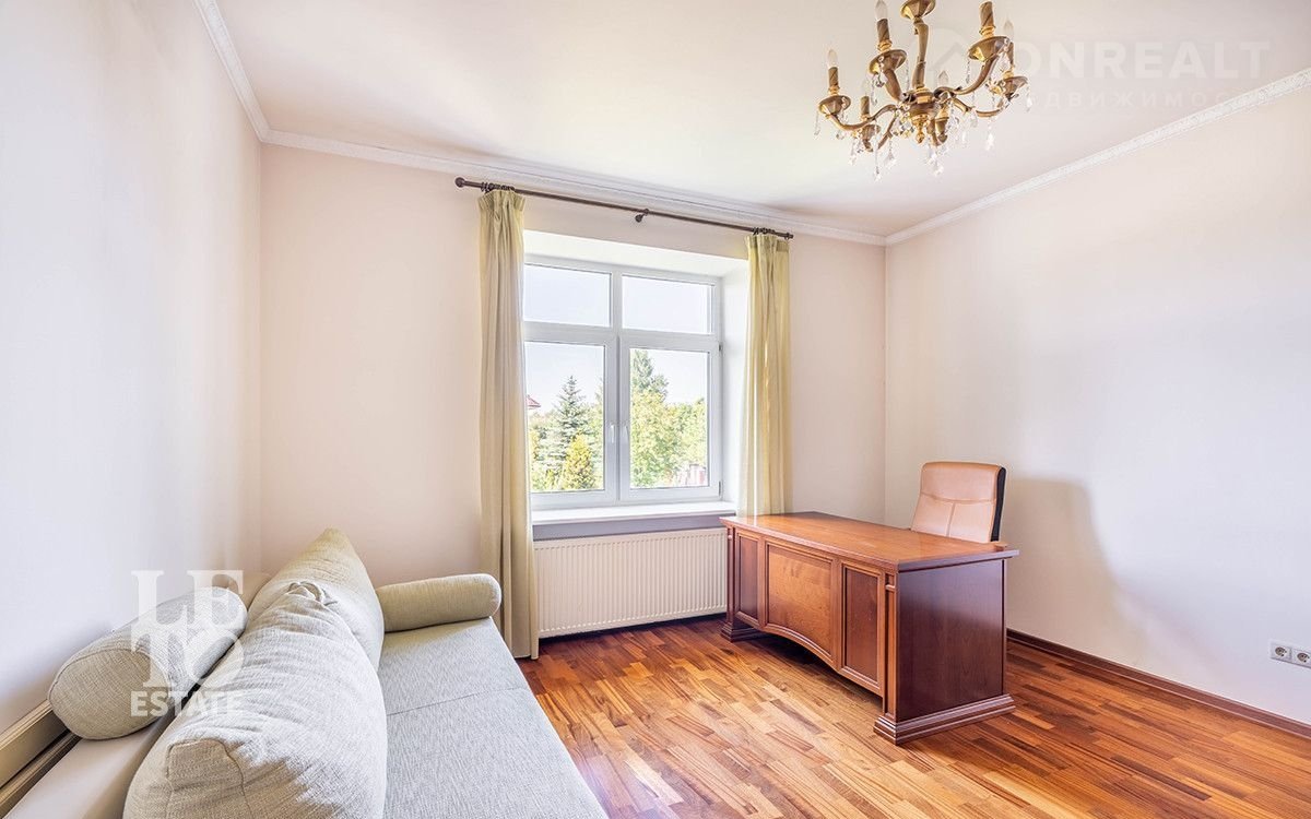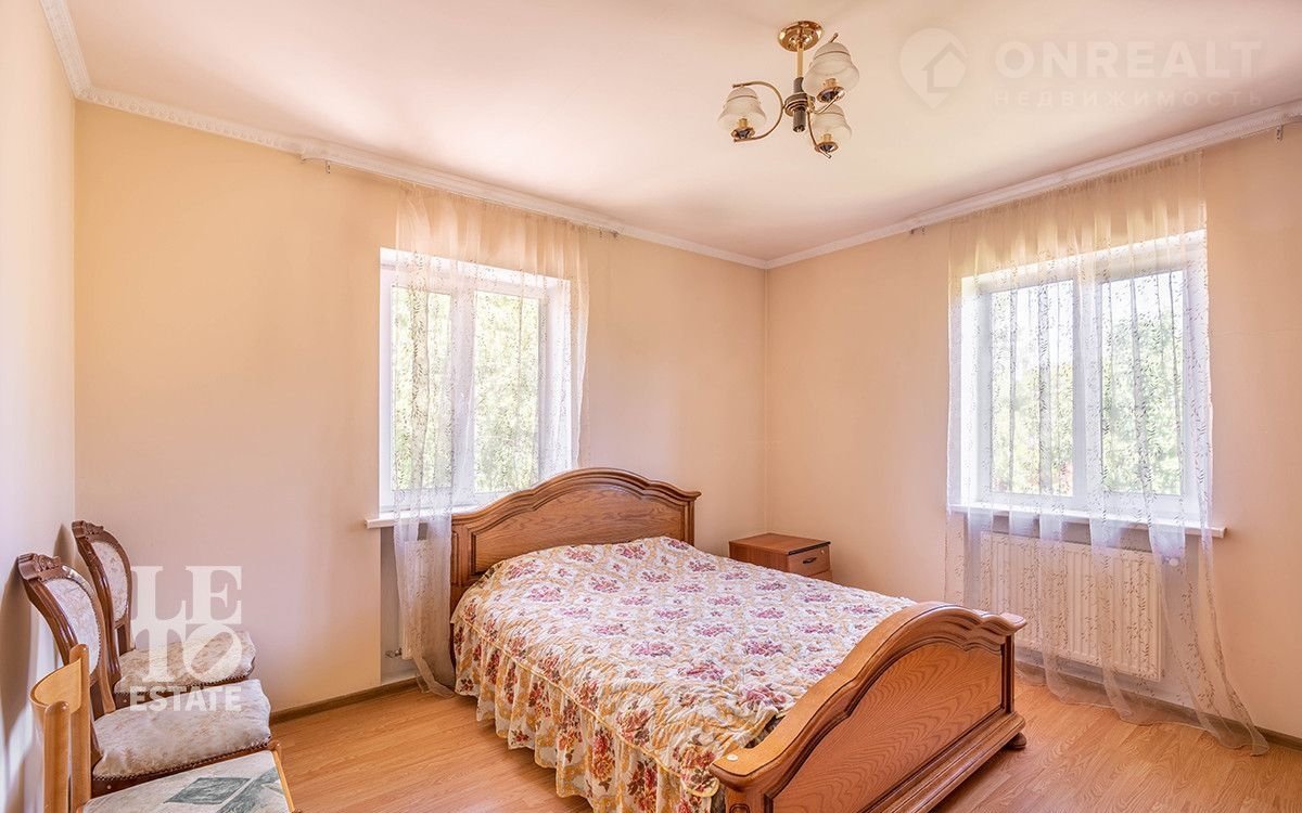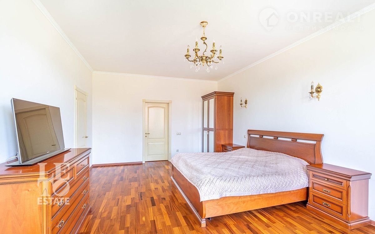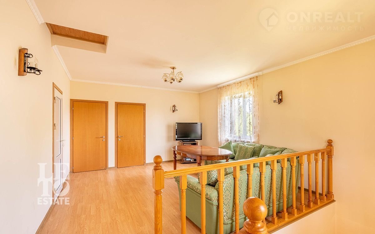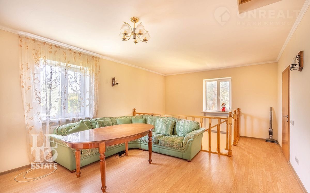 Фактическая площадь 3-х этажного дома: 564 м². Дом построен в 2006 году по проекту. Фундамент: монолитный, кровля изготовлена из гибкой черепицы Каtераl . Толщина стен: 80 см. В кухне и санузлах разведены тёплые полы. Панорамные окна и высокие потолки (3, 15 м) делают дом светлым и просторным. Полы в помещениях - паркетная доска. Лестница с элементами ковки. Дом полностью меблирован, оборудован всей необходимой техникой. Вся мебель в спальнях изготовлена на заказ (производство: Италия), двери из дуба. Мансардный этаж можно оборудовать как помещение для хранения. На цокольном этаже расположены сауна НАRVIА из лиственницы. Котельная оснащена дорогостоящим оборудованием, газовый котел "ВUDЕRUS" (Германия), система водоочистки.