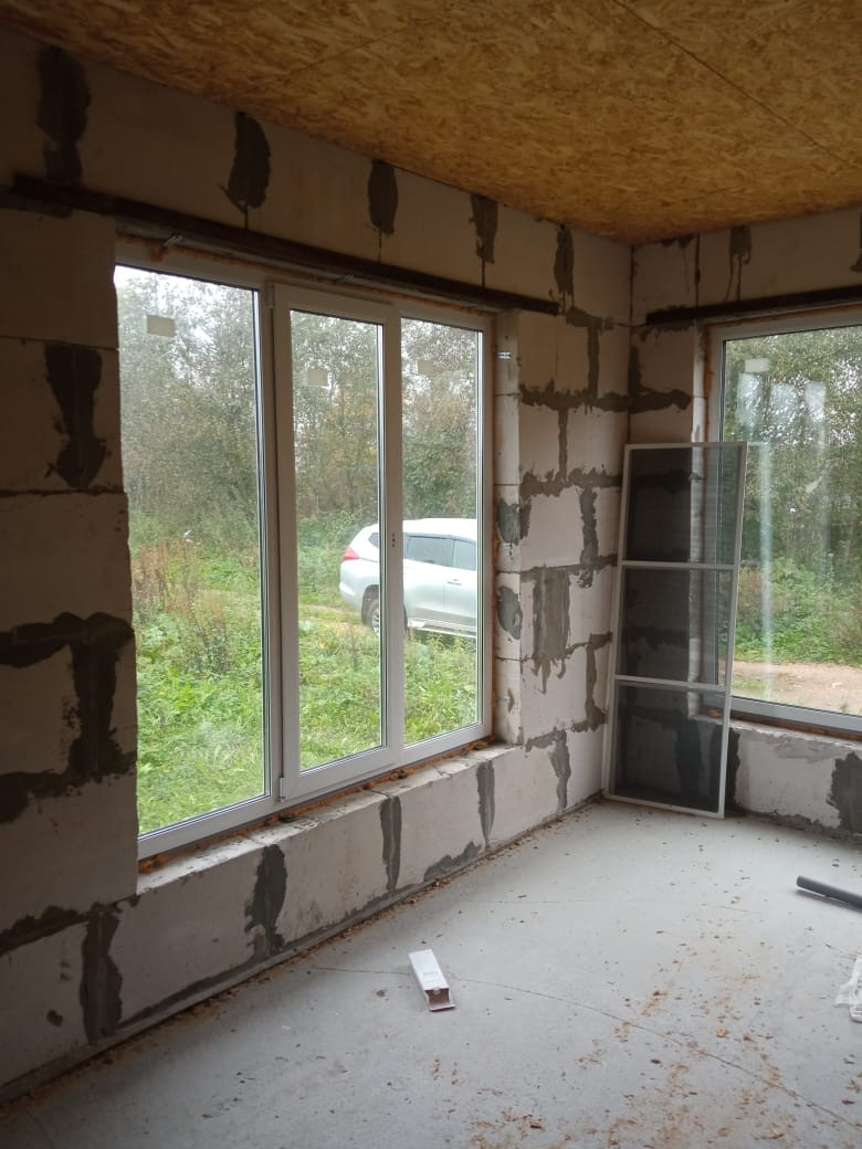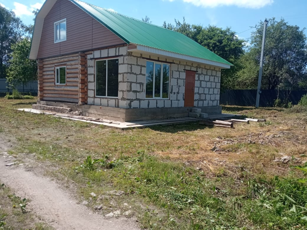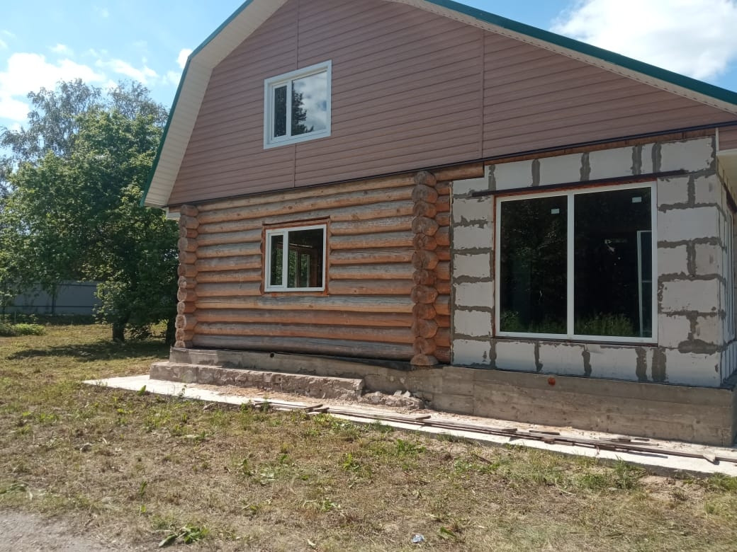 Дом 9м*9м, из которых сруб 6м*9м, пристройка из газобетона 3м*9м.