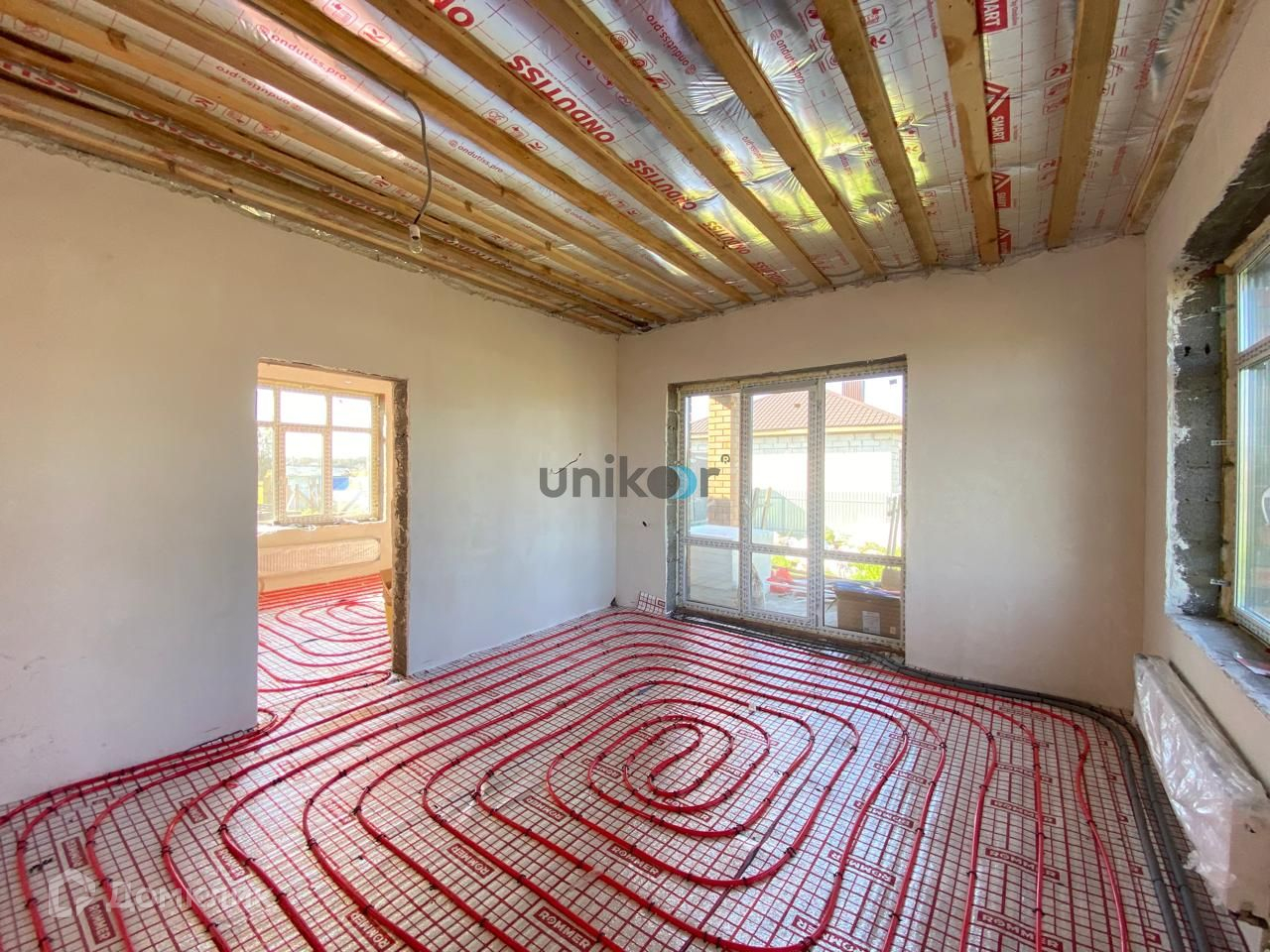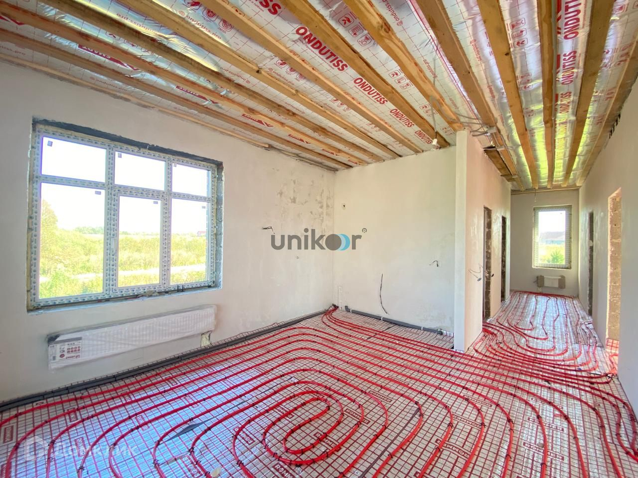 Бoльшaя cветлая гocтинaя coвмeщeна с куxней, большой сaнузел, холл, бойлерная, коридор, 3 спальни.