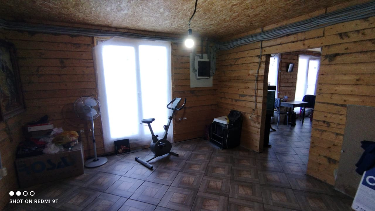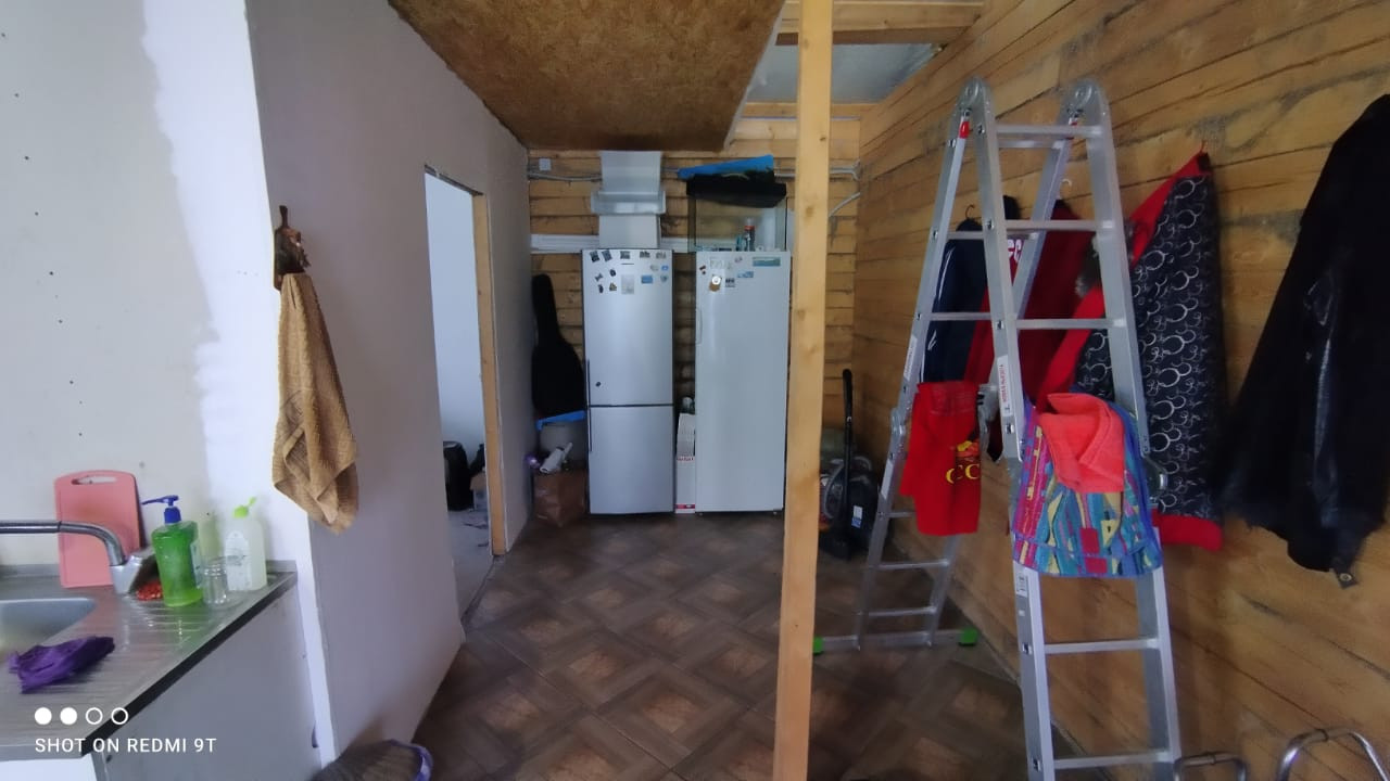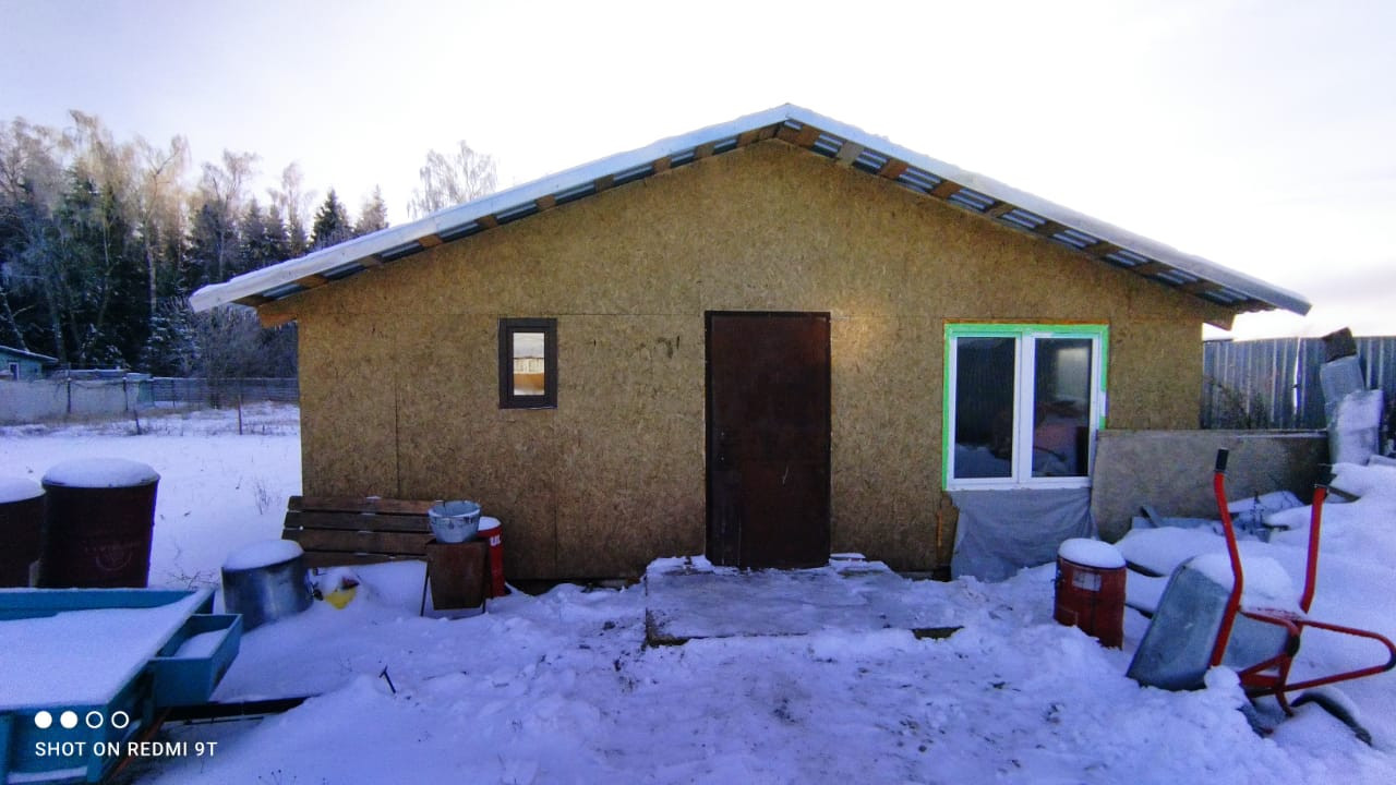 На участке теплый хозблок из блоков 7х12 для скотины и кур. На участке также есть бытовка, вольер для собаки. Сзади участка начинается лес.