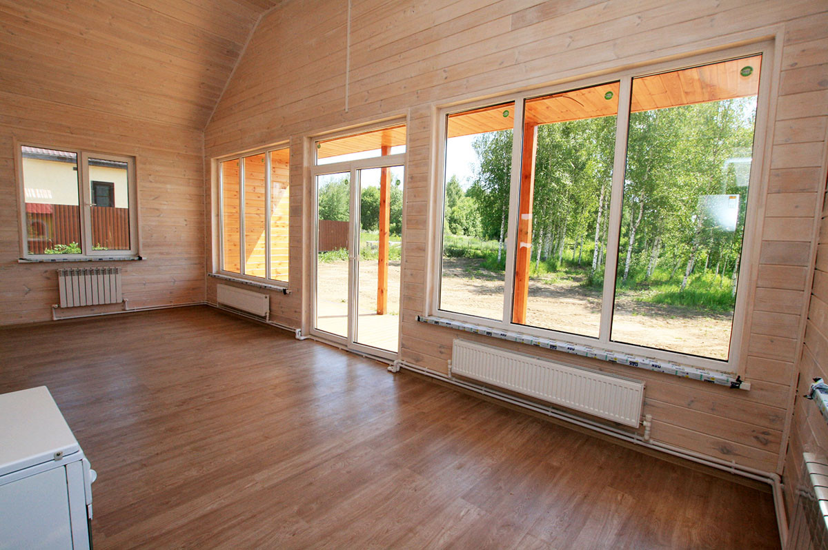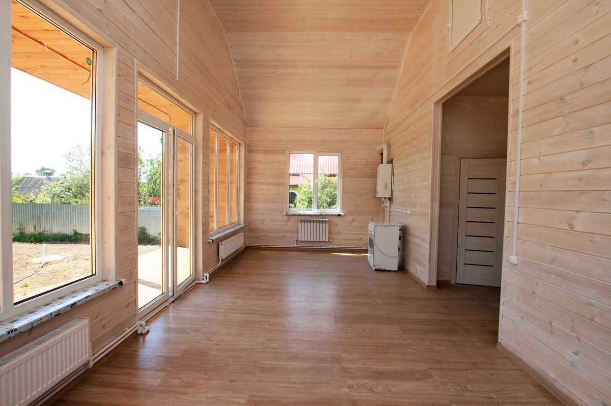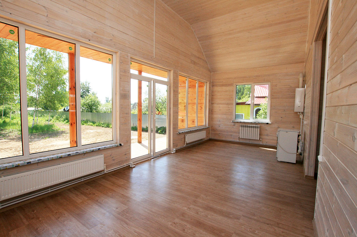 Стены внутри дома окрашены акриловой краской, в два слоя.