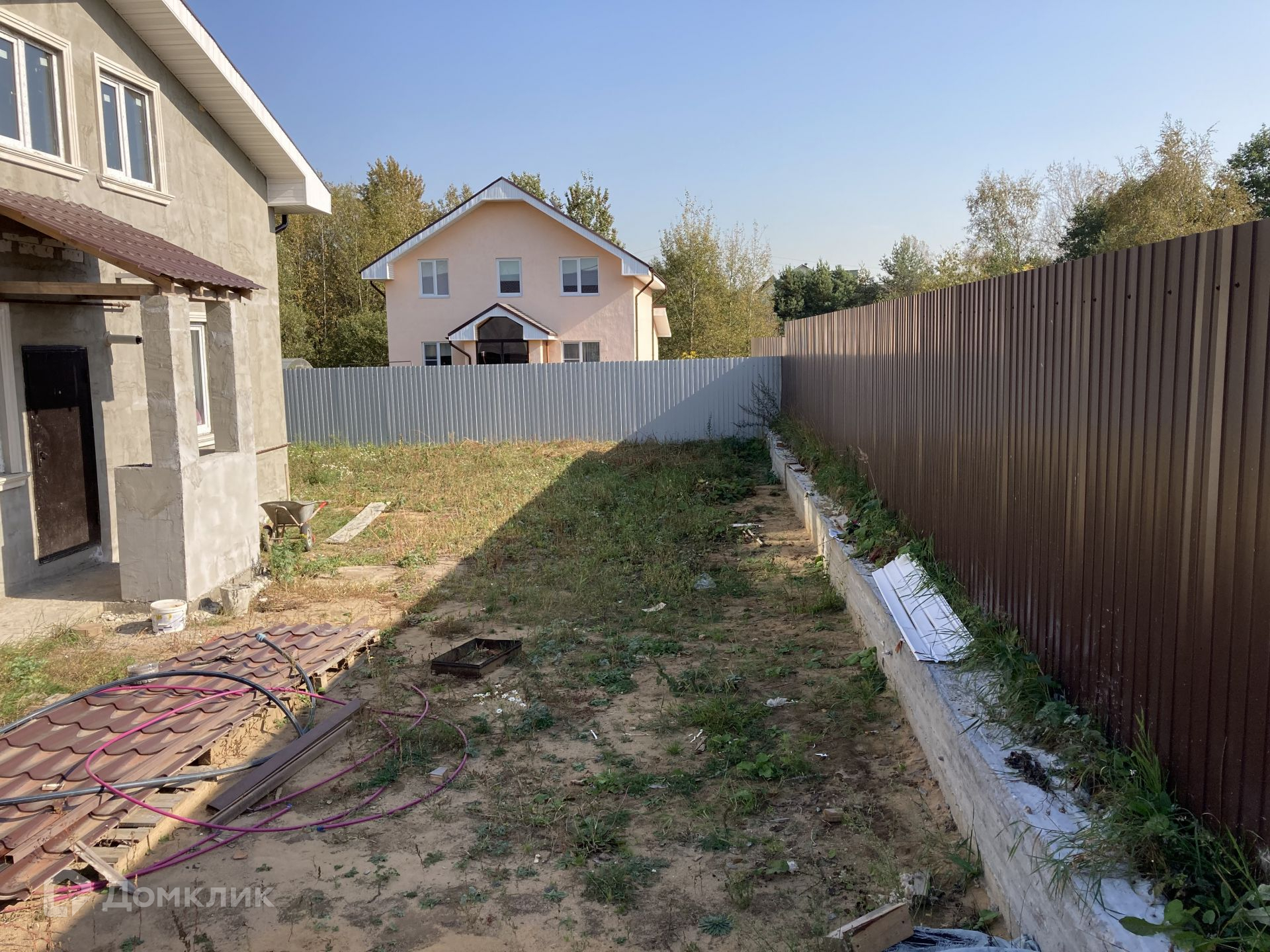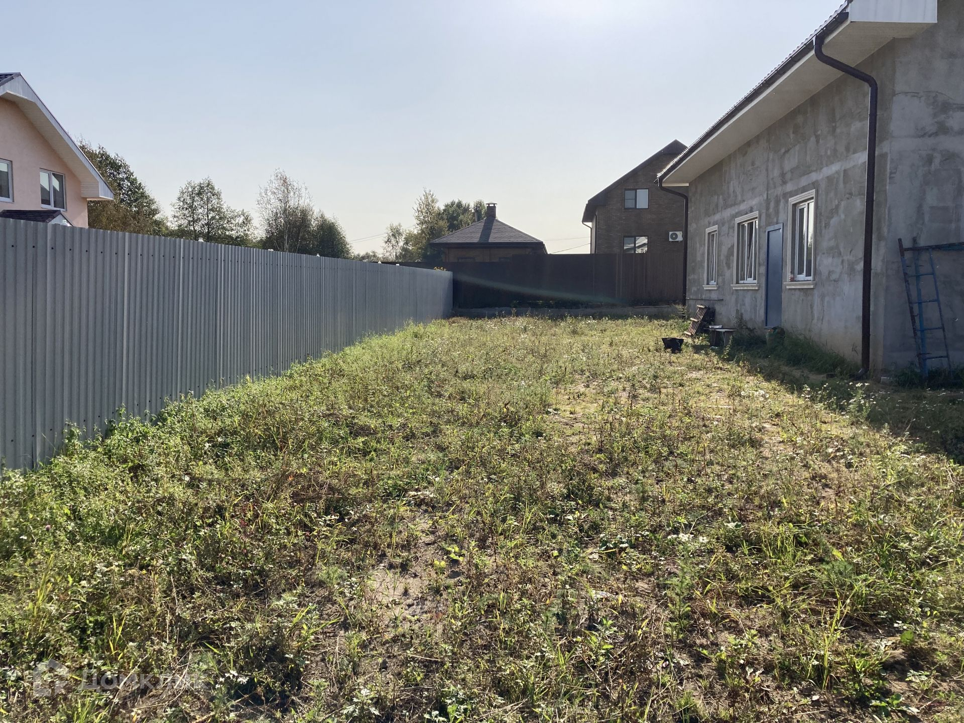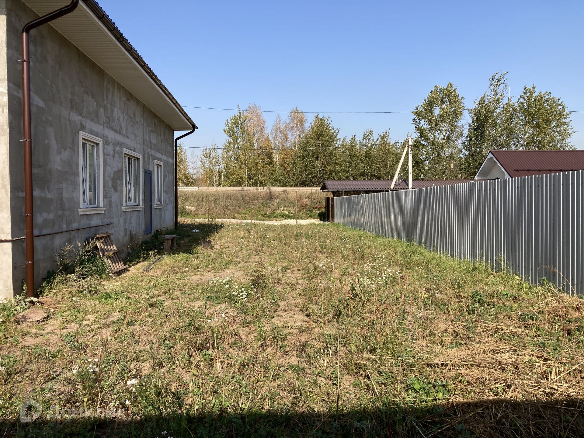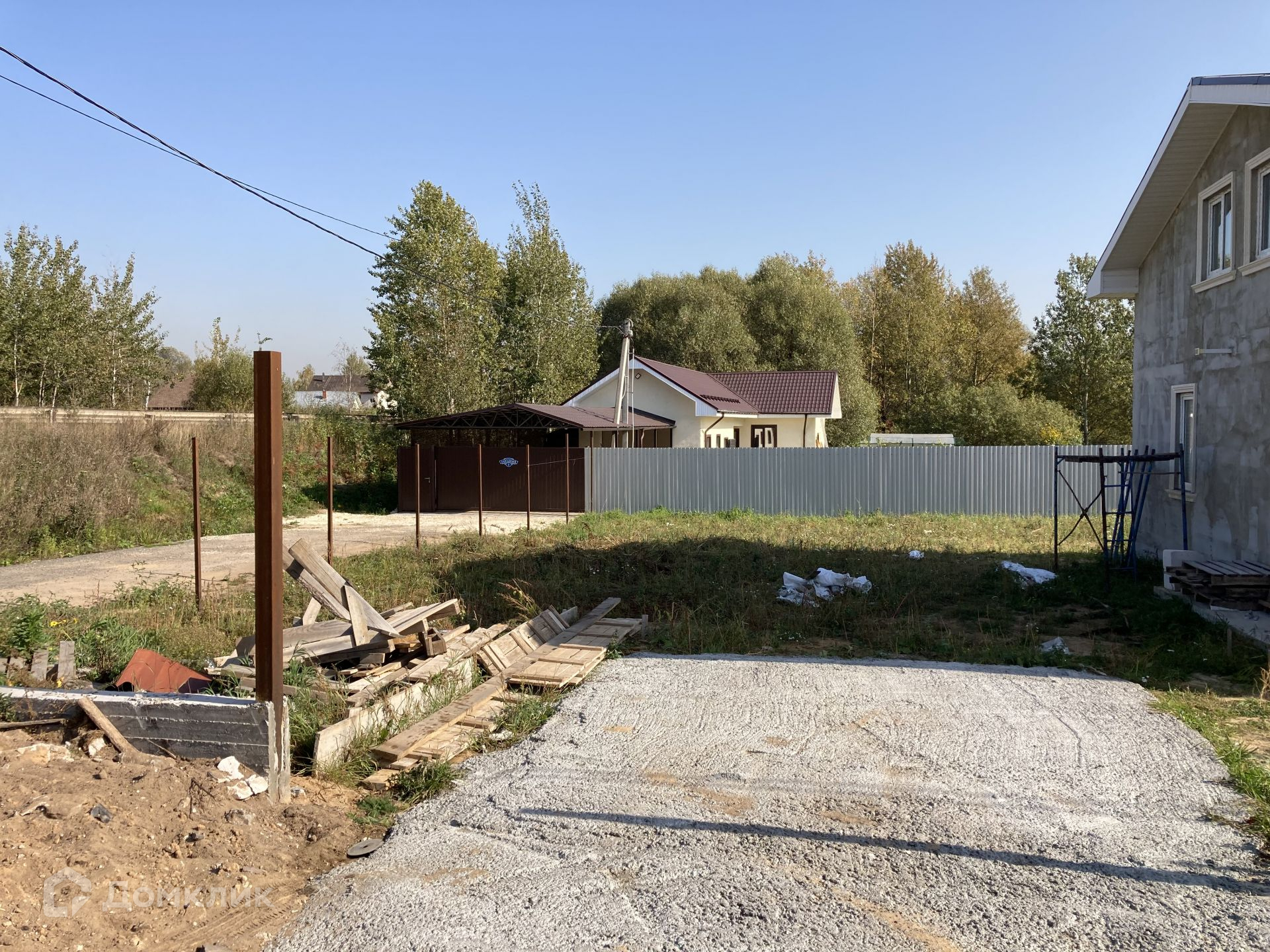 Дом располагается на участке 8 соток, участок прямоугольной формы, ровный, сухой, солнечный; расположен в благоустроенной, активно развивающейся деревне, с асфальтированными дорогами. Соседние участки застроены, солидное соседство, очень многие проживают в деревне постоянно.