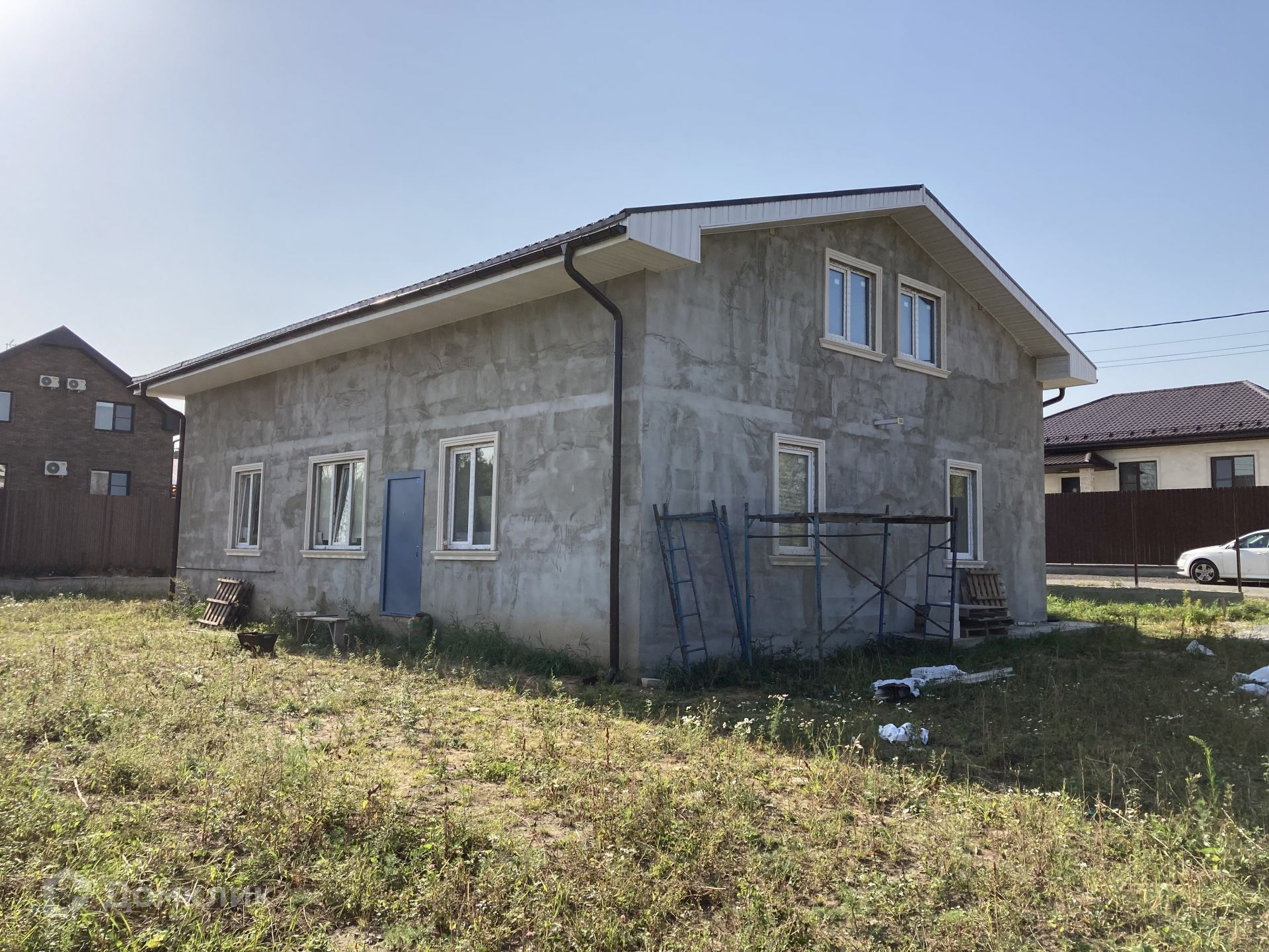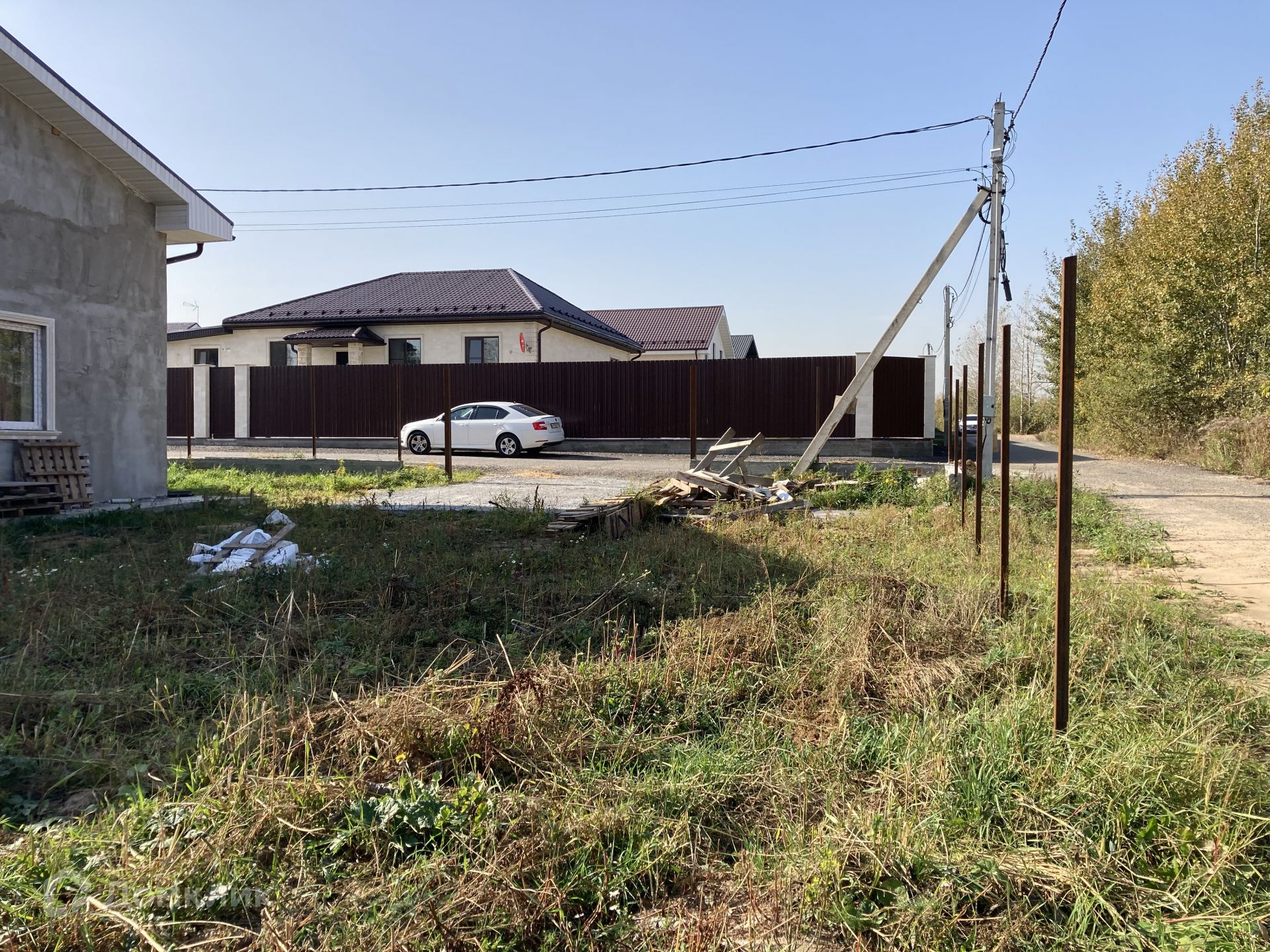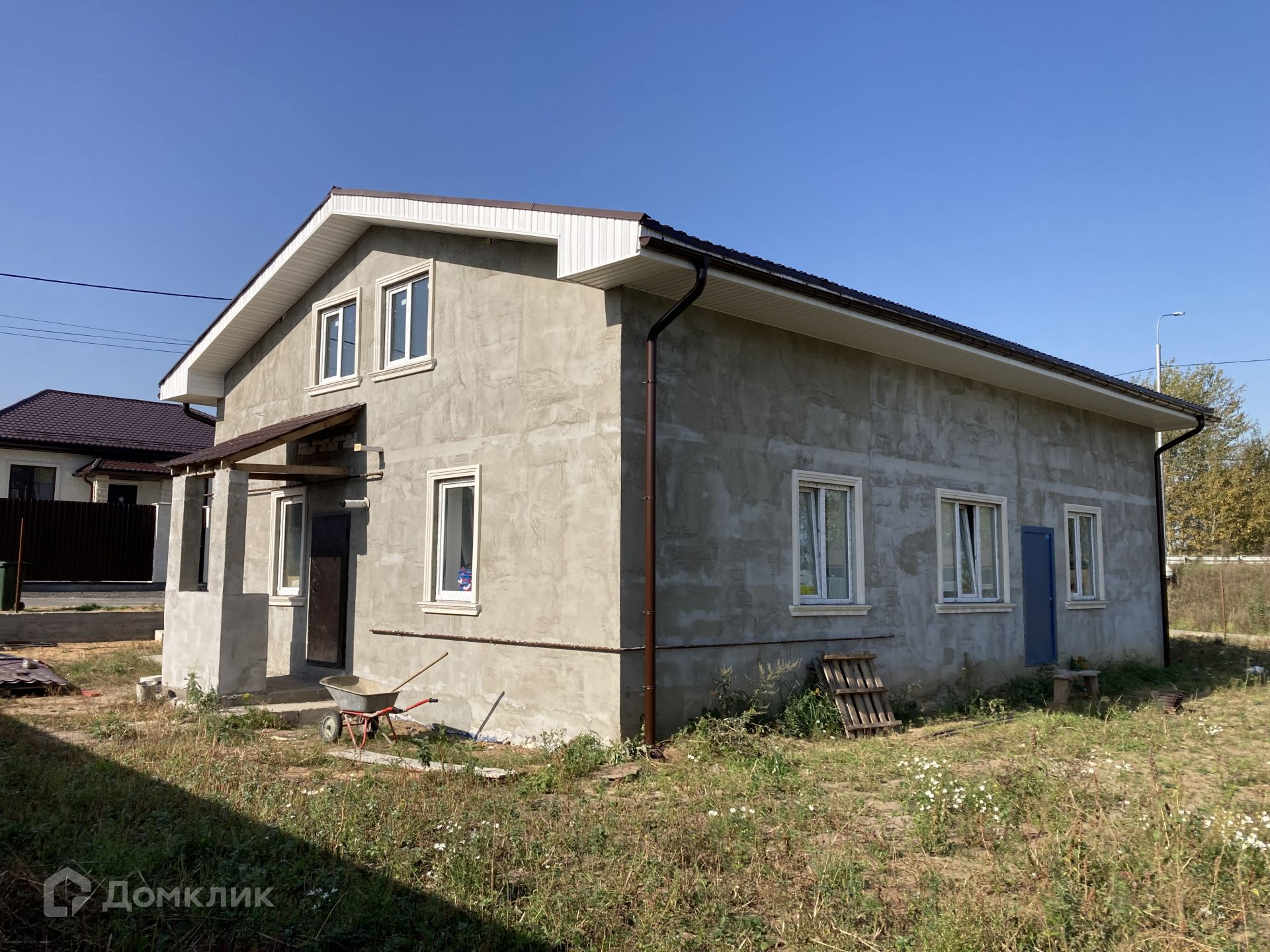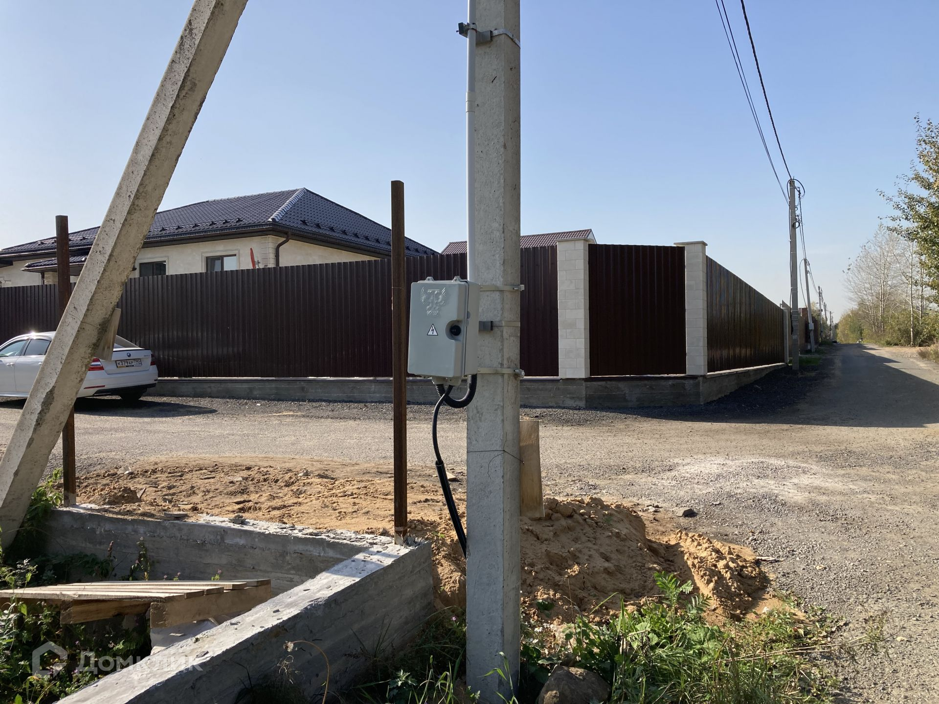 Дом располагается на участке 8 соток, участок прямоугольной формы, ровный, сухой, солнечный; расположен в благоустроенной, активно развивающейся деревне, с асфальтированными дорогами. Соседние участки застроены, солидное соседство, очень многие проживают в деревне постоянно.