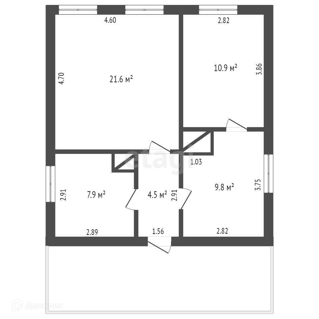 Общая площадь 54.7 м2