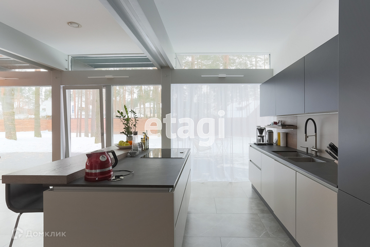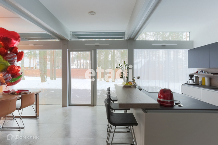 Год постройки дома 2019 ( внутреннюю отделку закончили весной 2020 ), площадь 326 кв.м без учета балконов и террас. Панорамное остекление общей высотой 8,5 метров позволяет раствориться в красоте окружающего соснового леса и придает объекту хороший уровень естественной инсоляции. Дом оборудован самой современной системой вентиляции, рекуперации, подогревом и кондиционированием воздуха. Отопление теплыми полами и системой нагревания воздуха. Высота потолков на 1 этаже - 3 метра, высота потолков на 2 этаже от 1,65 до 5 метров ( с панорамным остеклением ), это выгодно отличается от конкурентов osko или honka где высота потолков на втором этаже по краям не более 1,4 метра и появляются слепые зоны.