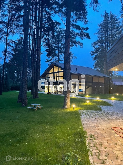 Участок 24 сотки, на участке более 40 корабельных сосен, огорожен забором высотой 2-3,5 метра. На участке выполнен ландшафтный дизайн, высажены деревья. Дорожки выполнены из высококачественной тротуарной плитки Цемсис . Организован газон общей площадью около 15 соток. Для автомобилей оборудована крытая парковка на 3 машины ( 67 кв.метров ), 3 бытовых помещения общей площадью 36 кв. метров. Котельная расположена в хоз.блоке в 60 метрах от дома, вас не будет беспокоить шум насосов, котла или генератора ( на случай отключения электричества ). Установлен современный газовый электрогенератор с автоматикой. Дом эргономично вписан в ландшафт и построен в один уровень с газоном без устаревших цоколей и ступенек. Строение двухэтажное, с наружной и внутренней отделкой по индивидуальному проекту и встроенной мебелью на заказ от лучших европейских производителей.