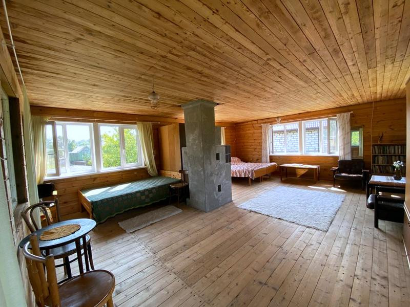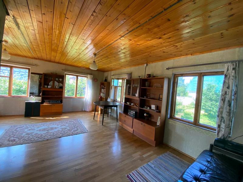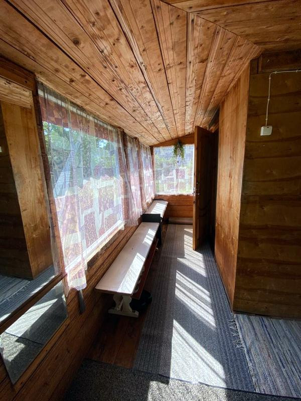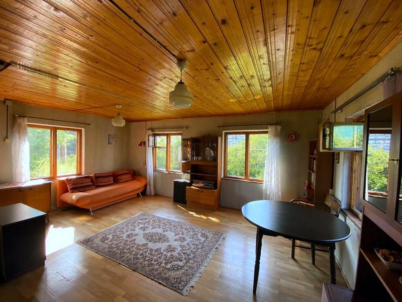-1 этаж и газобетона 300 + сухая штукатурка, 7 окон с двойными деревянными рамами в отличном состоянии, русская печь, на полу дубовый паркет, проводка вся медная. Потолок 2 ,40. Фундамент ленточный. К. первому этажу пристроена деревянная веранда (столбовой фундамент), сделано водоотведение, при желании можно поставить душевую кабину.