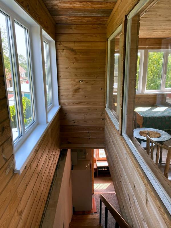 -- 2 этаж каркасно-щитовой, утеплитель: минеральная вата обшит вагонкой, пол деревянный пихтовые породы (перекрытия: балки 150х200) 12 окон стеклопакеты. При желании, можно зондировать. Есть выход на чердак. Крыша алюминиево-титановый профиль, утепление (керамзит+ опилки) Опалубка хвойя.