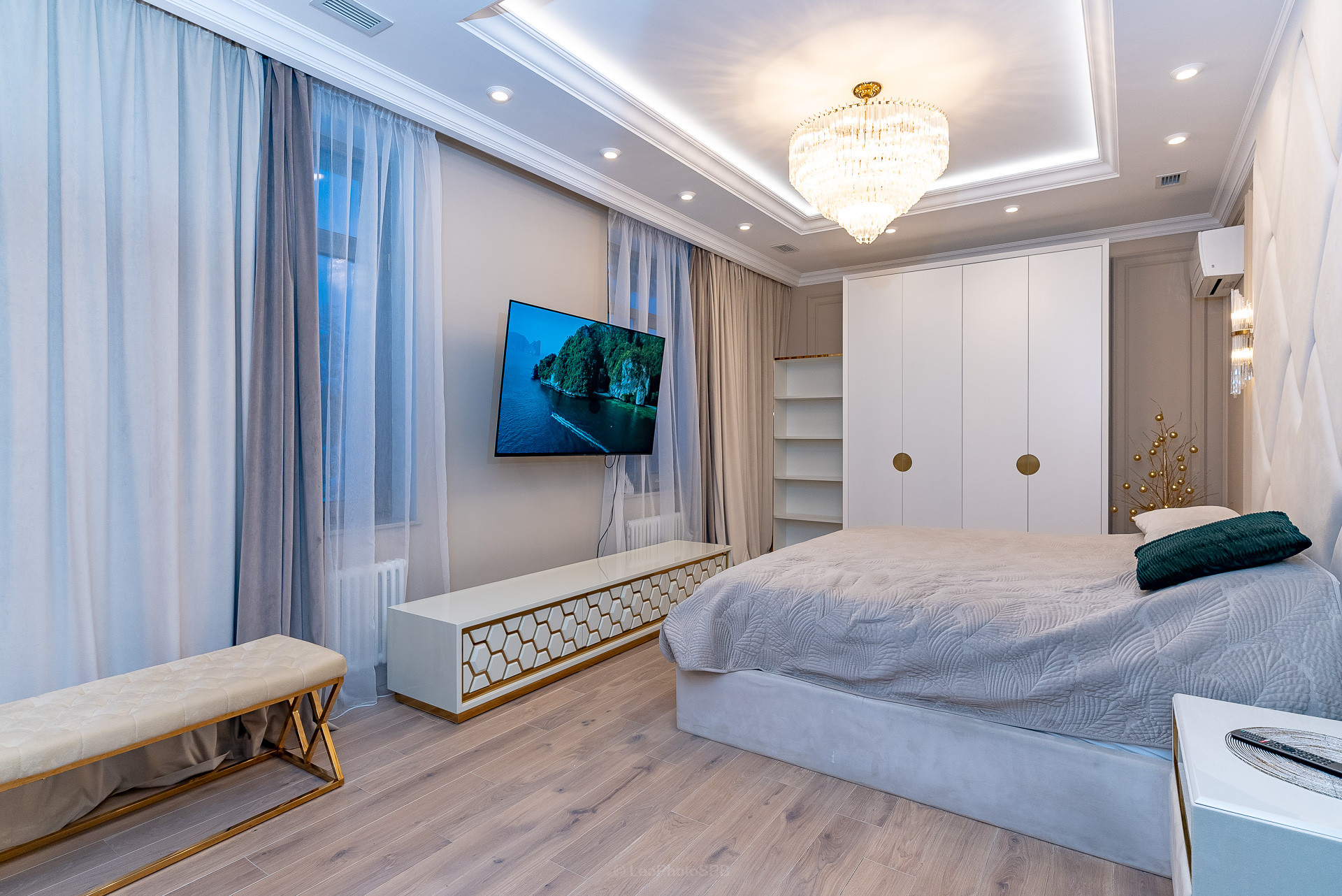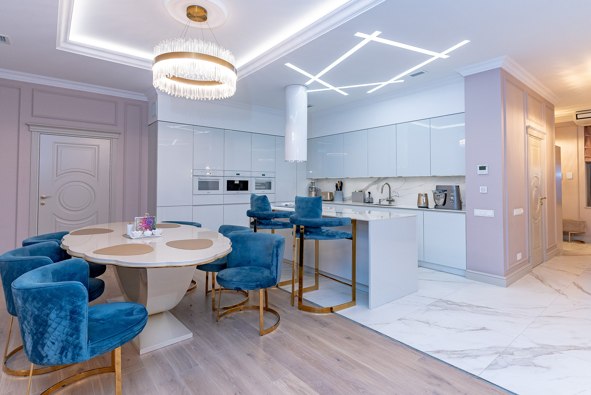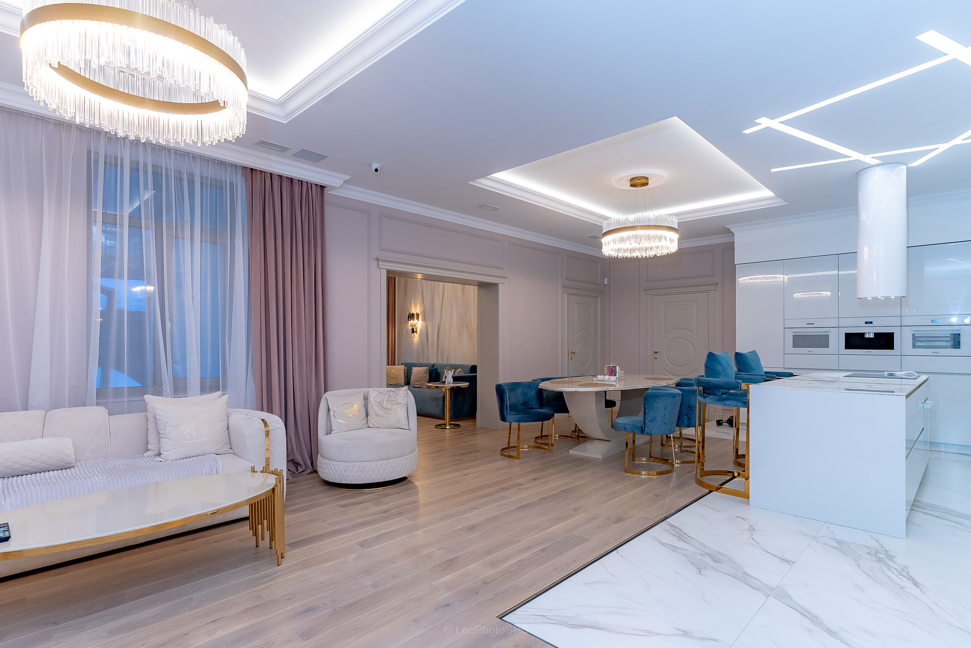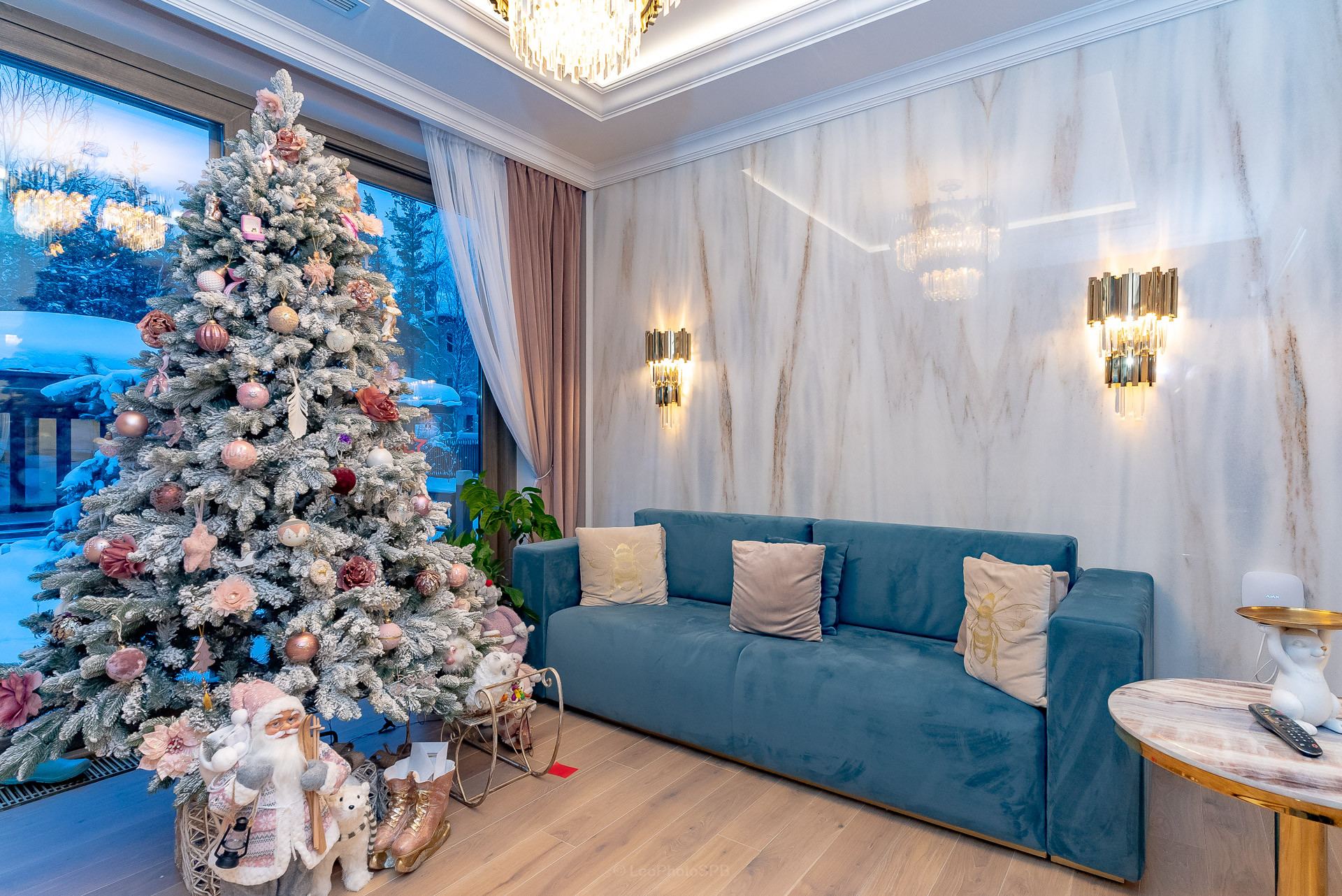 Дом оформлен с использованием дизайнерских решений, что придает интерьеру особую изысканность и стиль. Просторные светлые комнаты, качественная мебель и современная бытовая техника создают атмосферу уюта и комфорта.