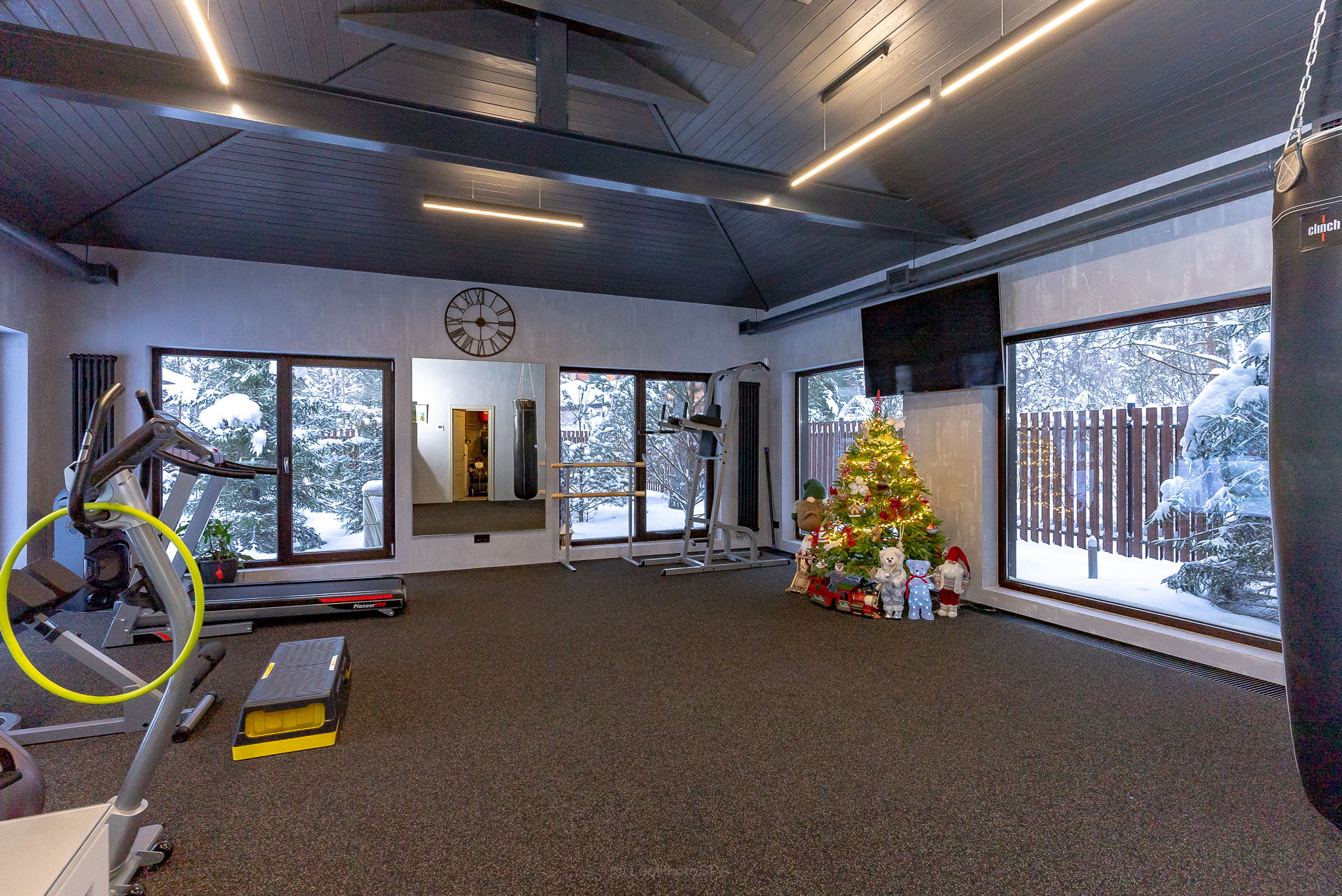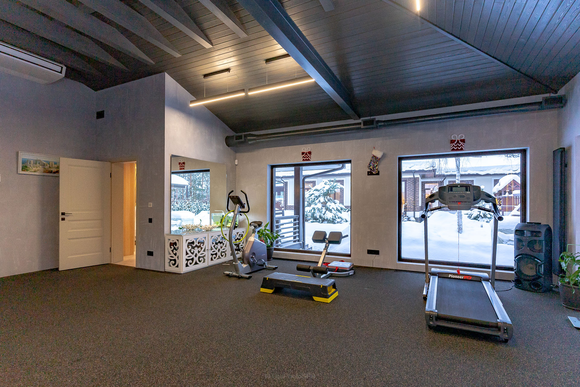 В дoмe имeeтся проcтоpнaя бaня, 121 кв.м, оборудованная всем необходимым для комфортного отдыха и релаксации. Также в распоряжении владельцев дома имеется тренажерный зал, оборудованный современными спортивными тренажерами.