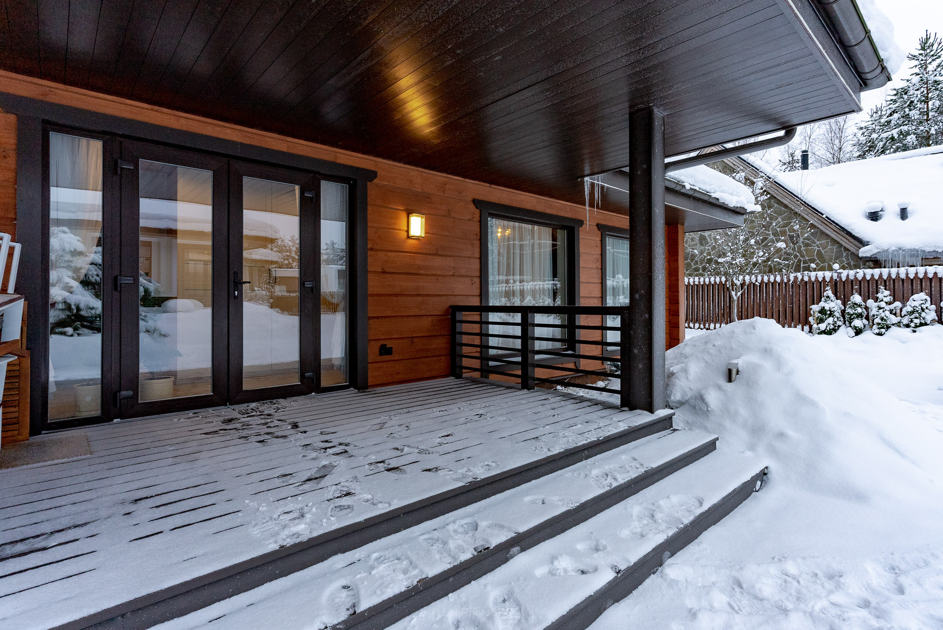 Также построена уютная летняя веранда, где под треск углей, жителей и гостей дома будет радовать горячая трапеза.