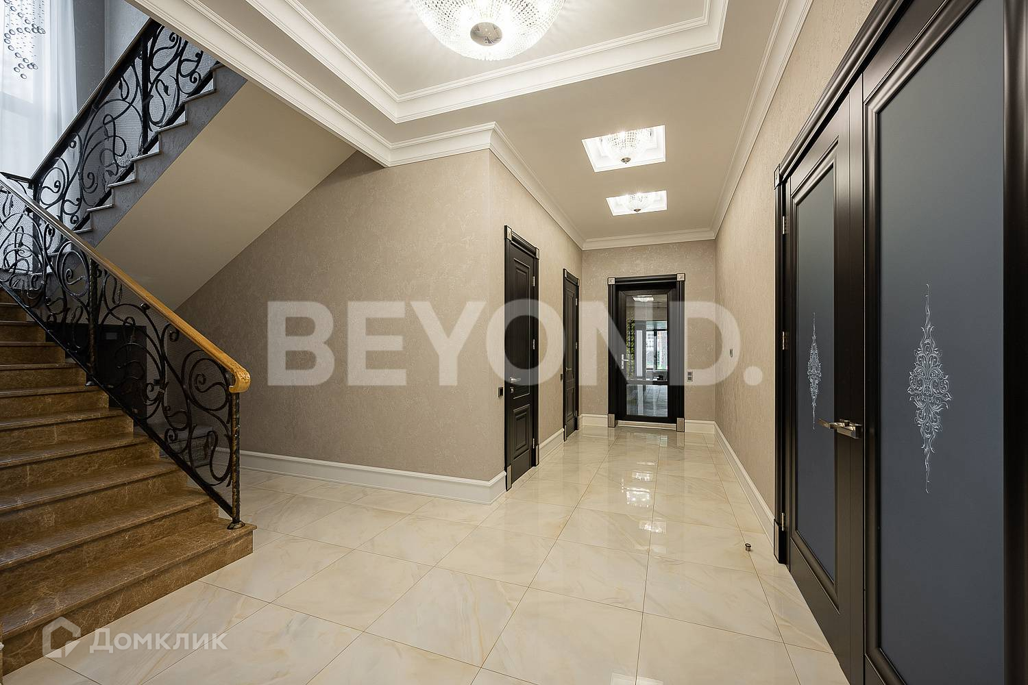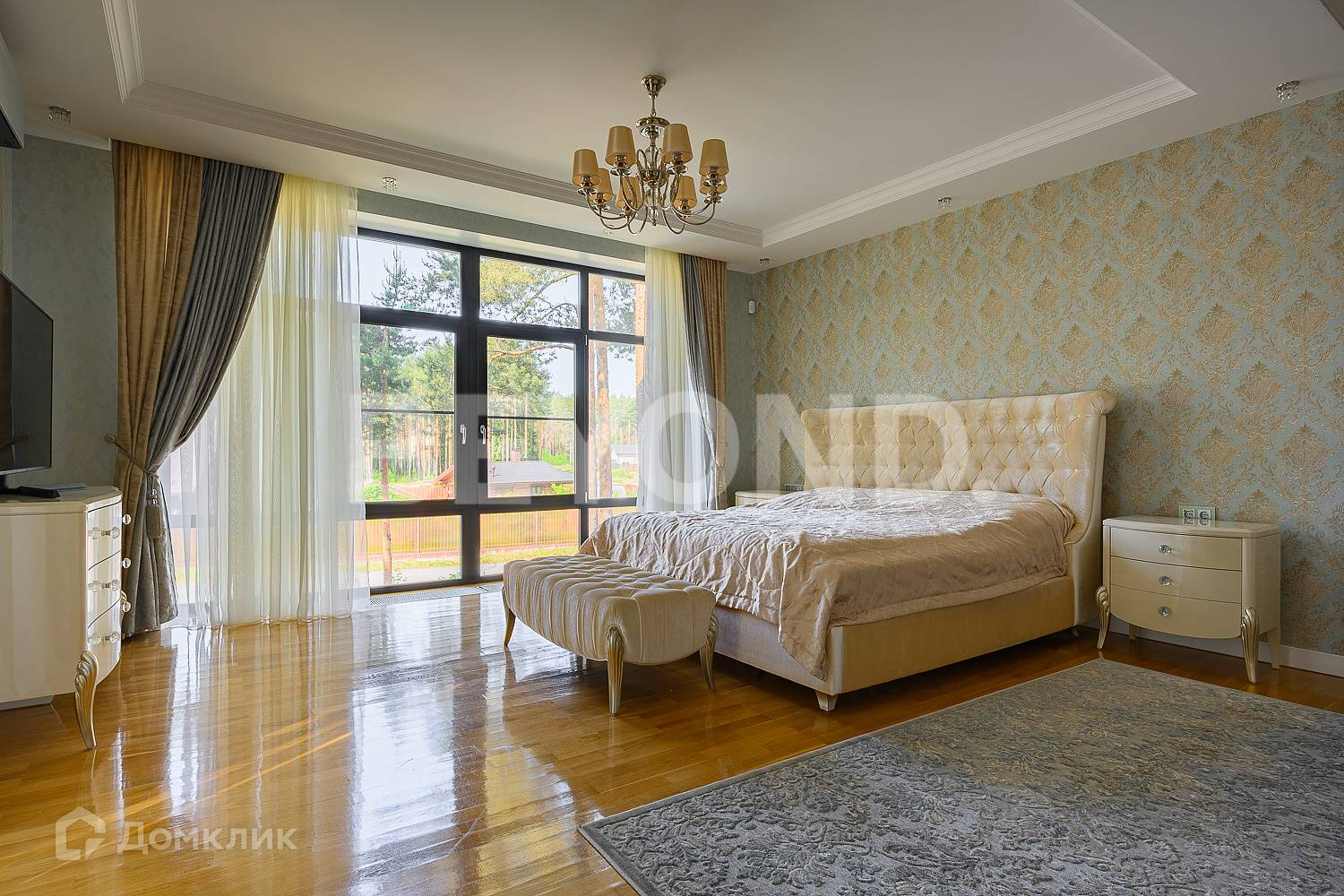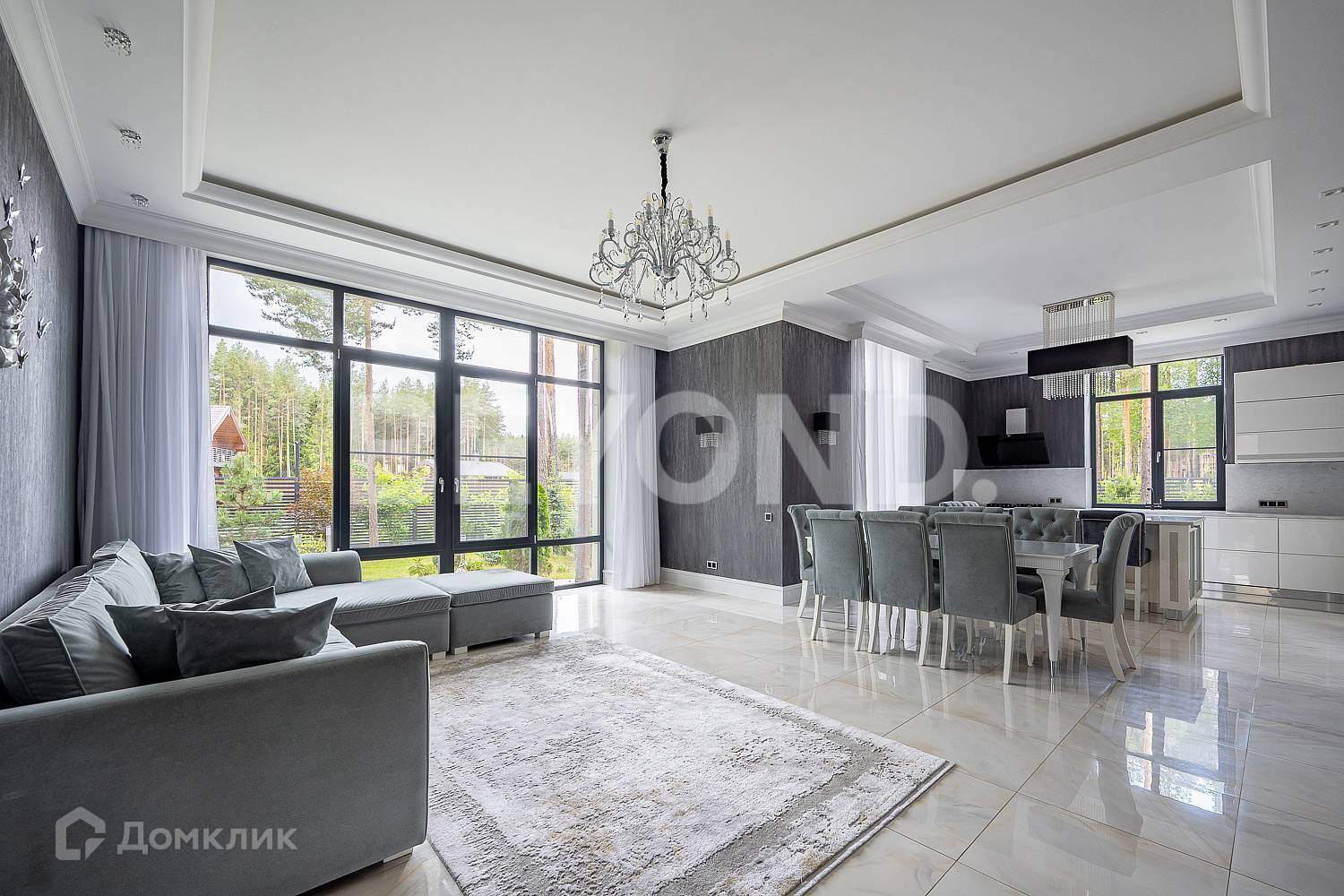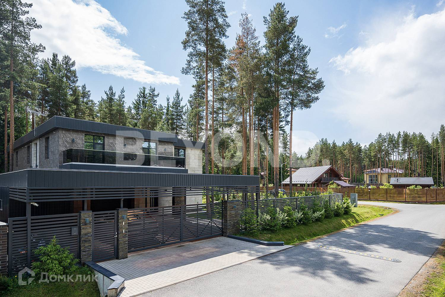 В продаже просторный стильный двухэтажный дом общей площадью 578 кв. м, на участке 17,5 сотки в окружении внушительных старых сосен.