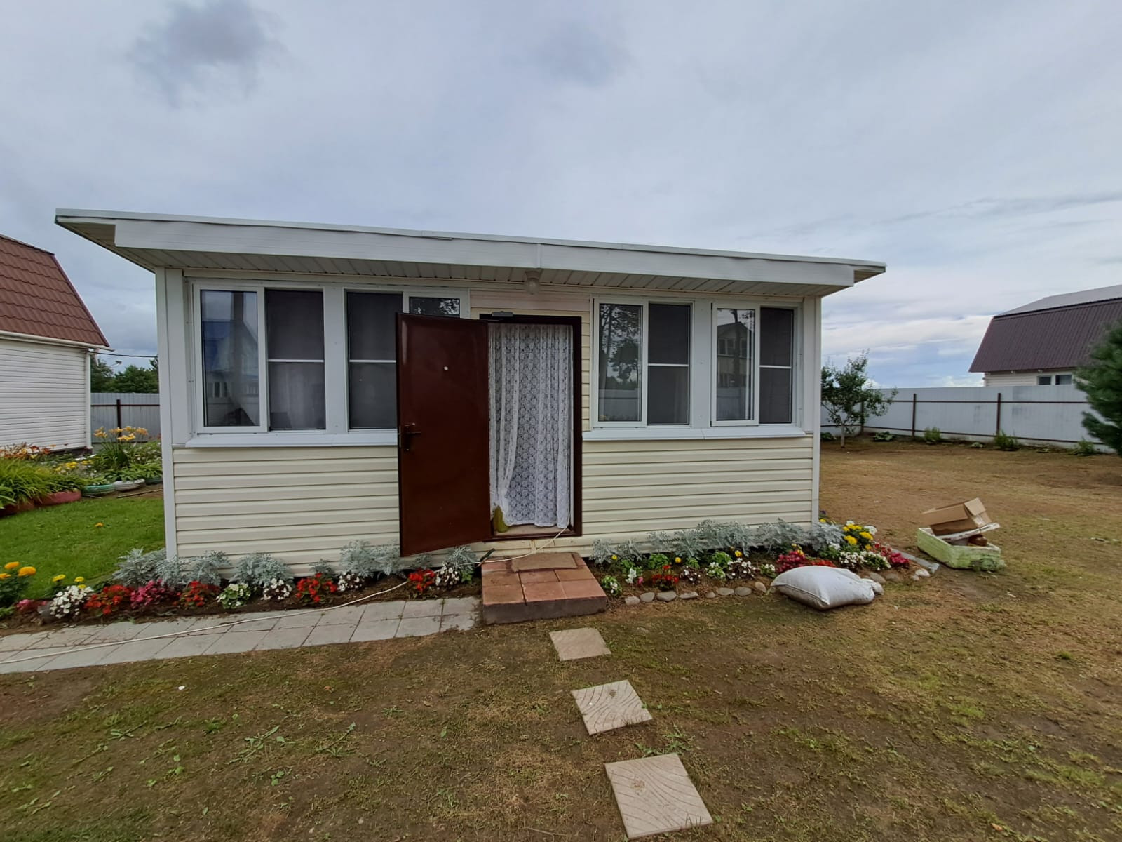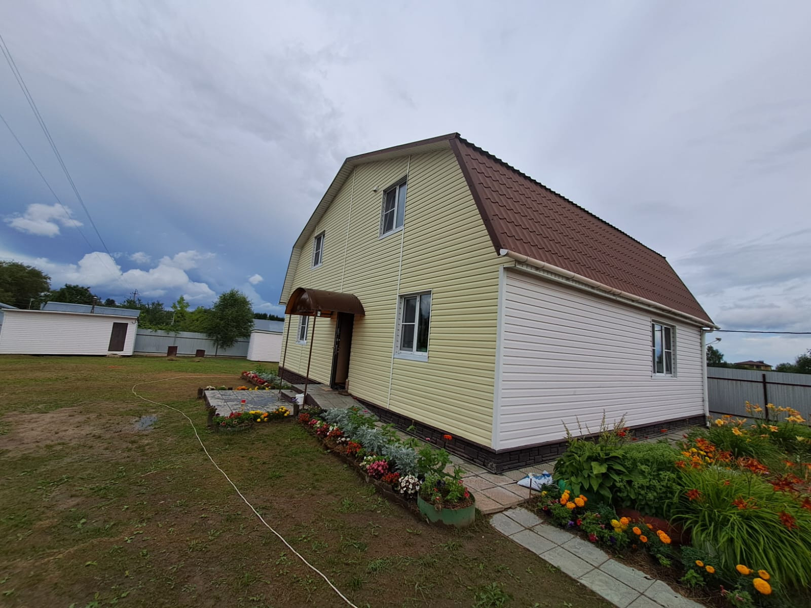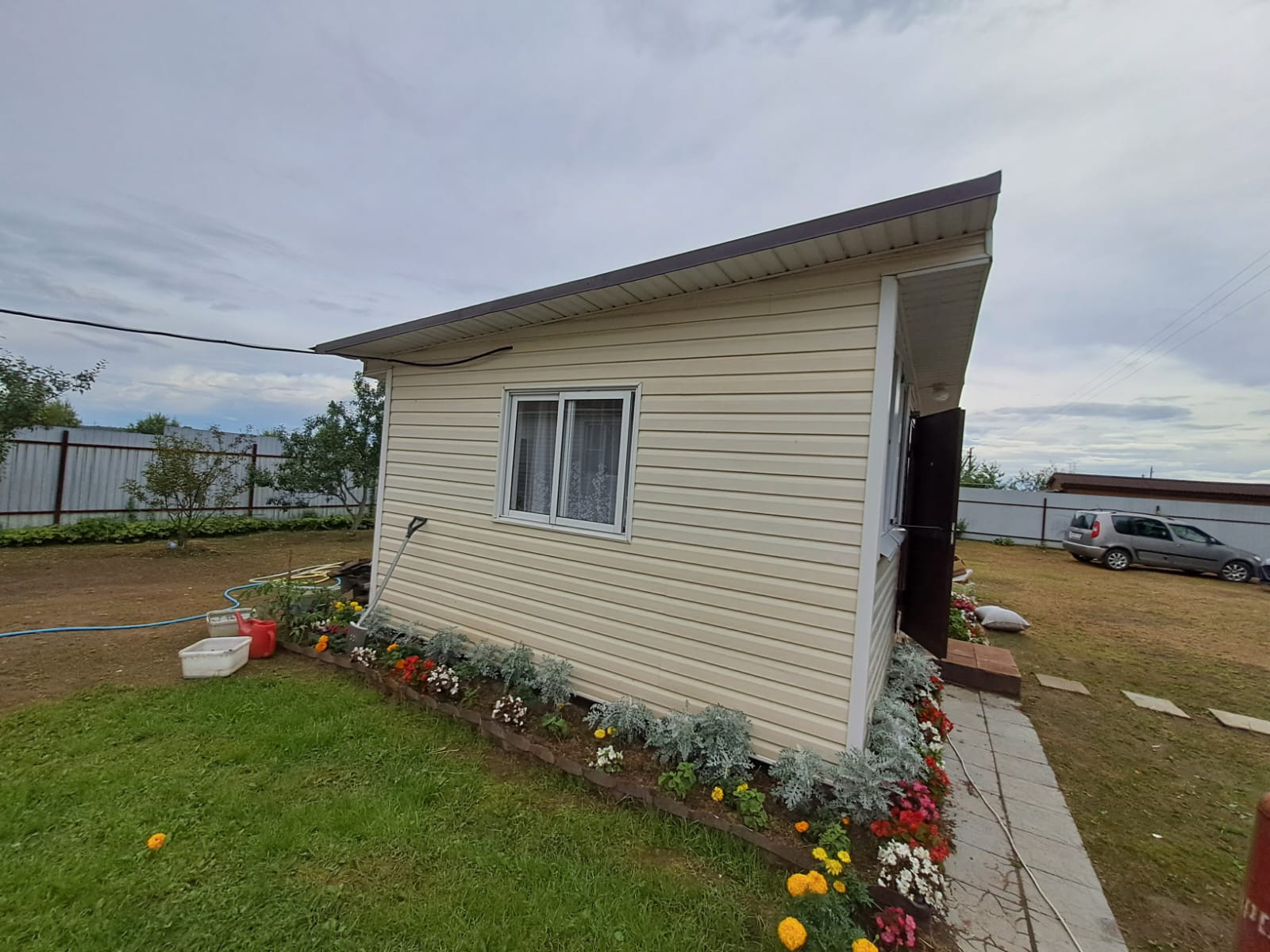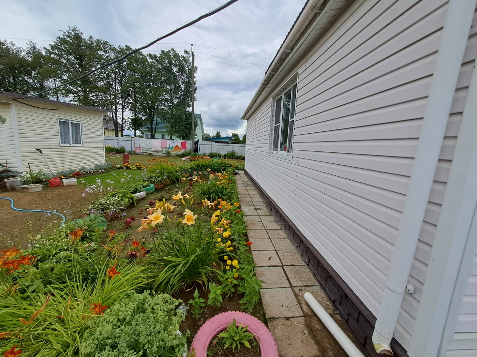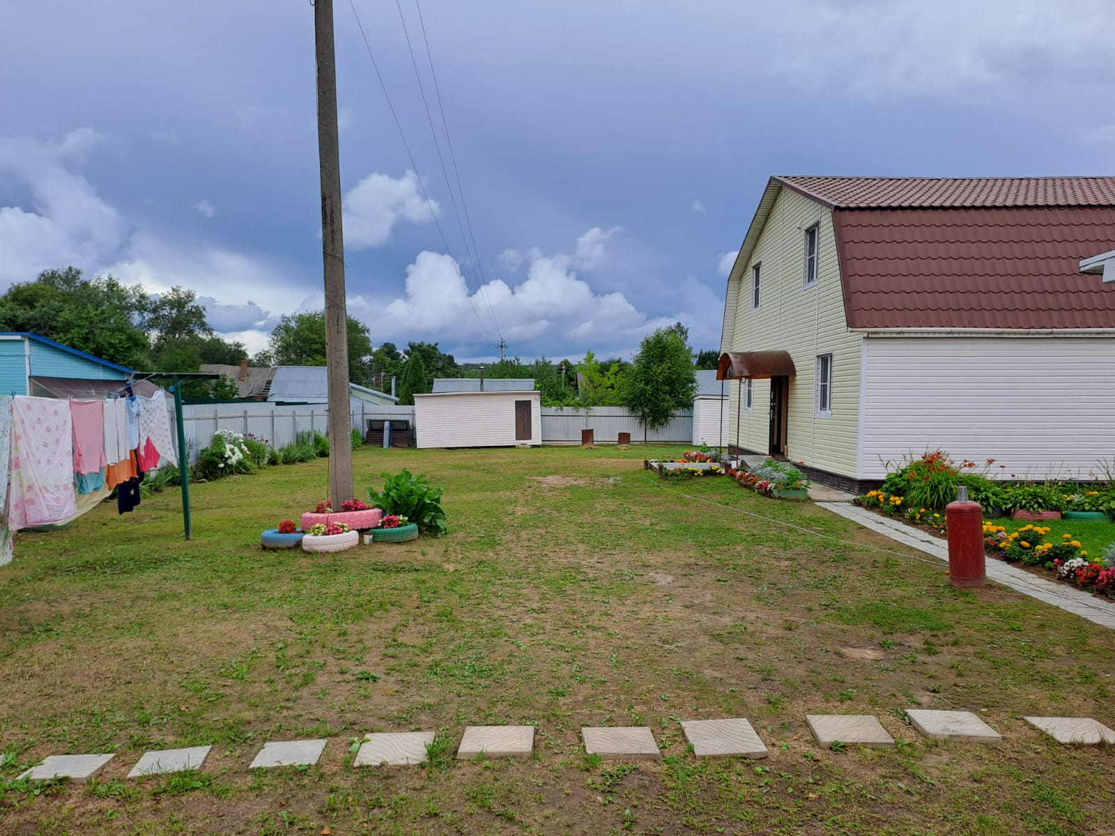 Участок ровный, ухоженный, правильной формы. Имеется два хозблока, для хранения садового инвентаря и личных вещей; летняя кухня, которая станет отличным местом для вечернего отдыха; небольшая мангальная зона; парковочное место для машин.