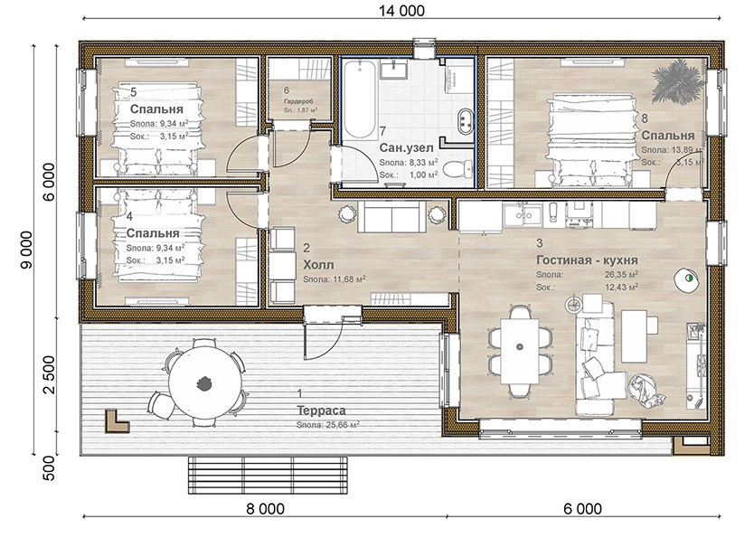 Для вас полностью готов грамотный проект со всеми коммуникациями, большим количеством комнат и теплыми стенами из современных материалов.