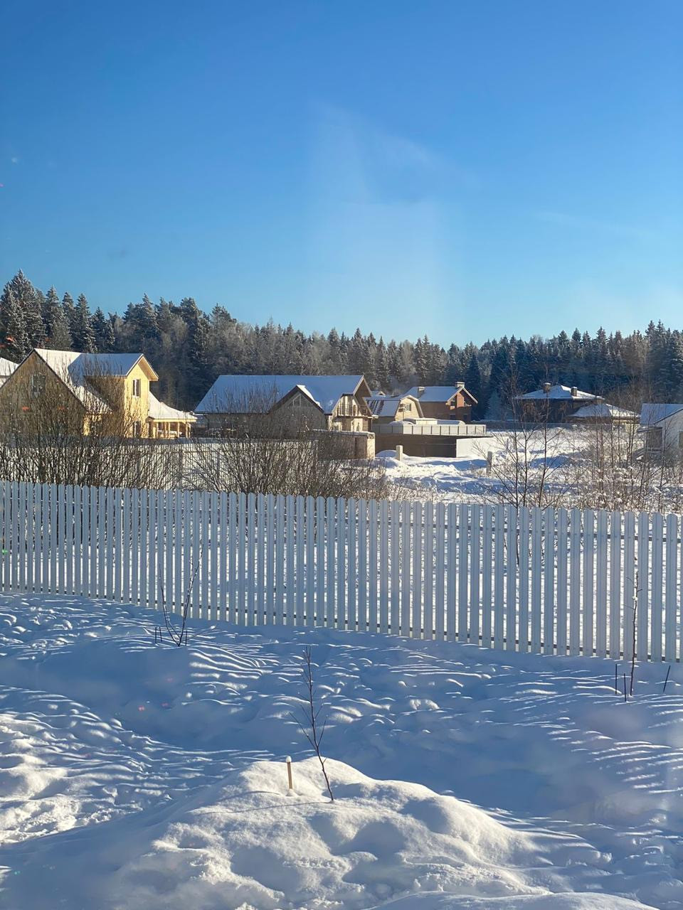 По периметру огорожен забором из двойного евроштакетника.