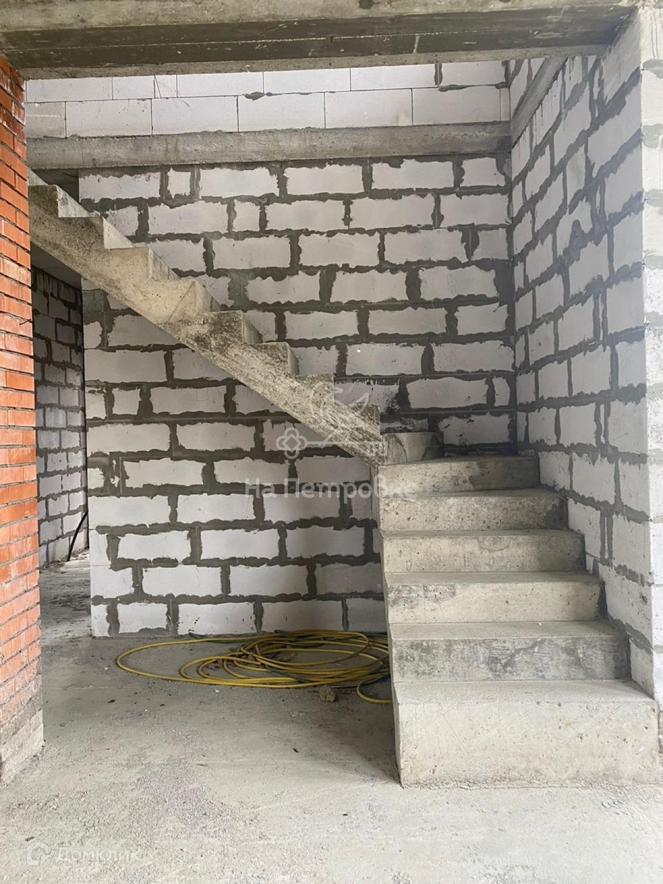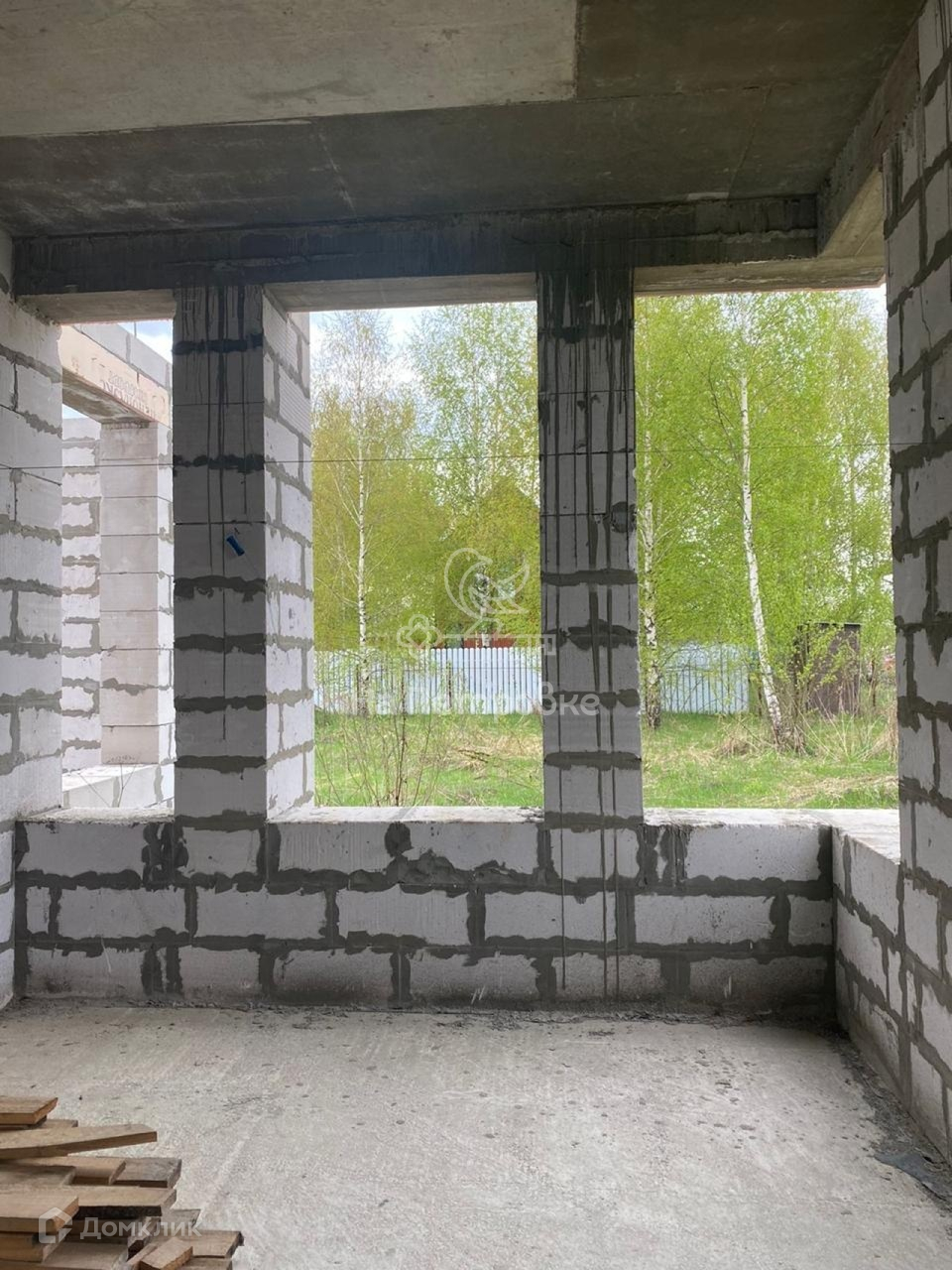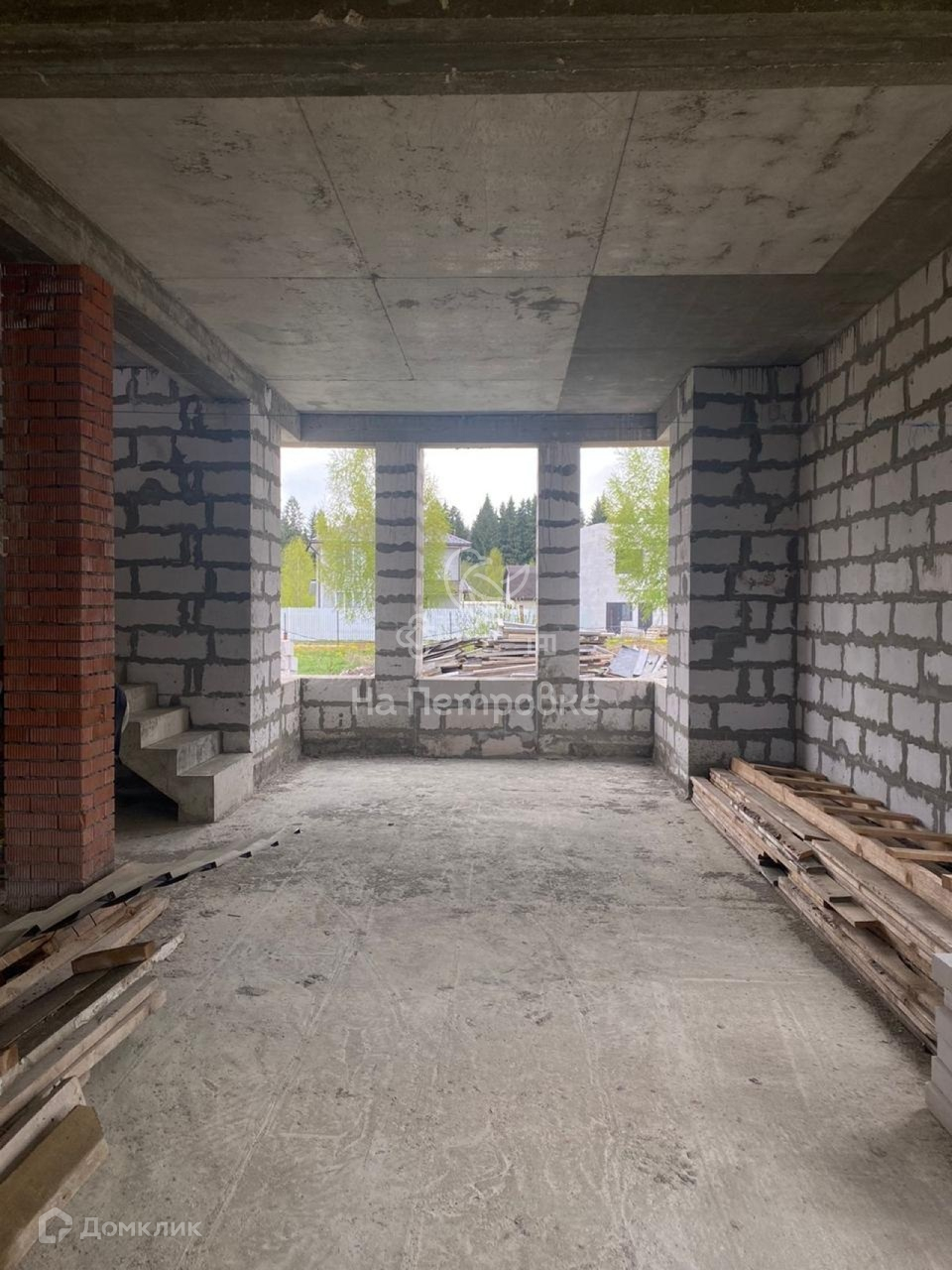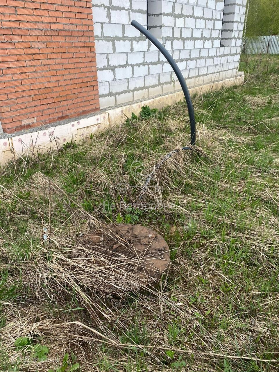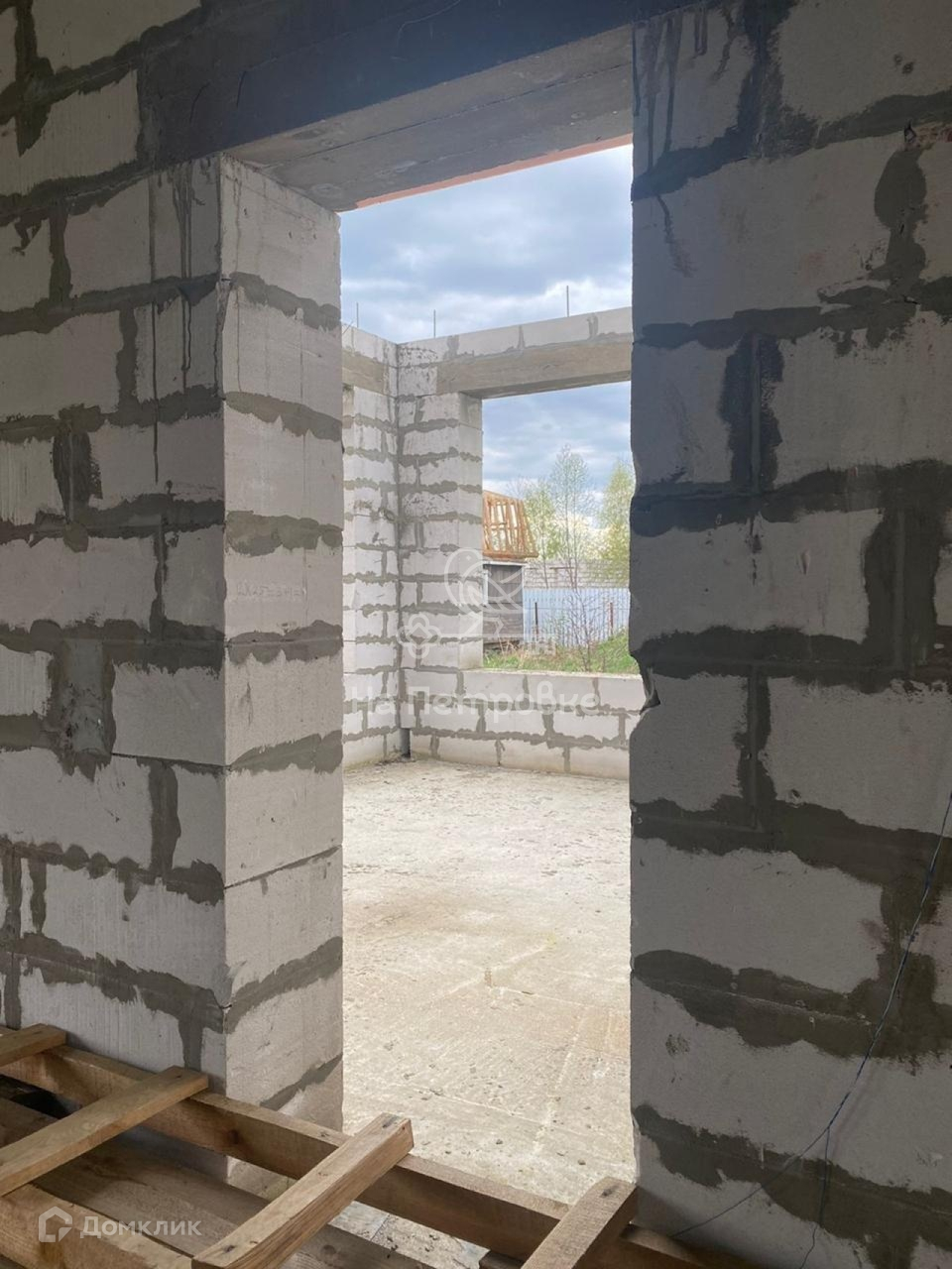 Дом возведен до уровня крыши (металлочерепица), требует дополнительного строительства.