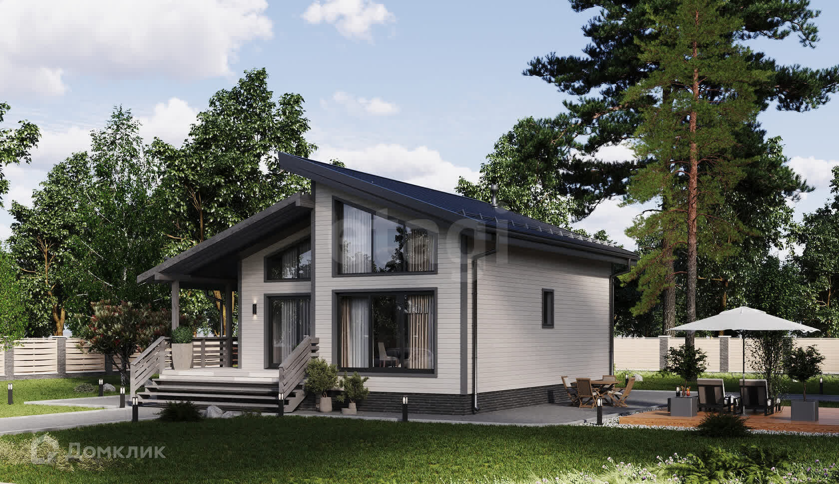 Современный каркасный дом, полностью отделанный внутри, со всеми необходимыми коммуникациями. Есть возможность внести изменения в дизайн по вашему вкусу.
