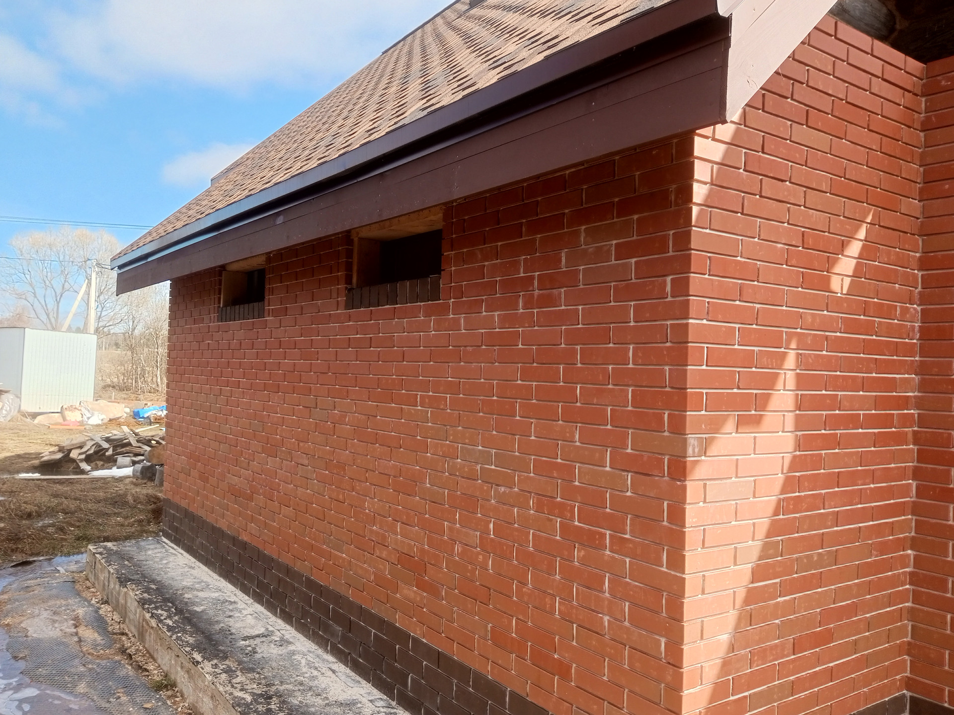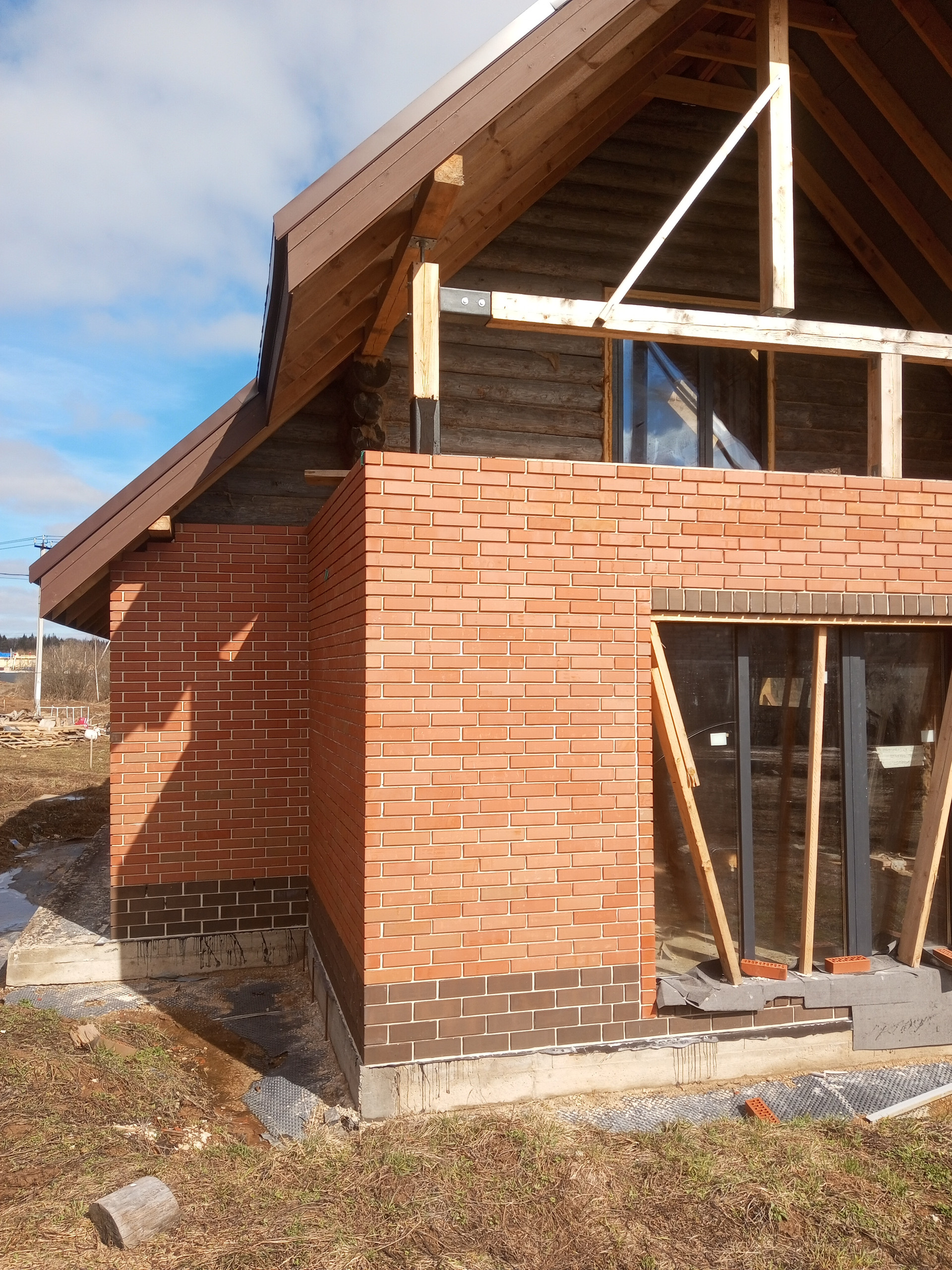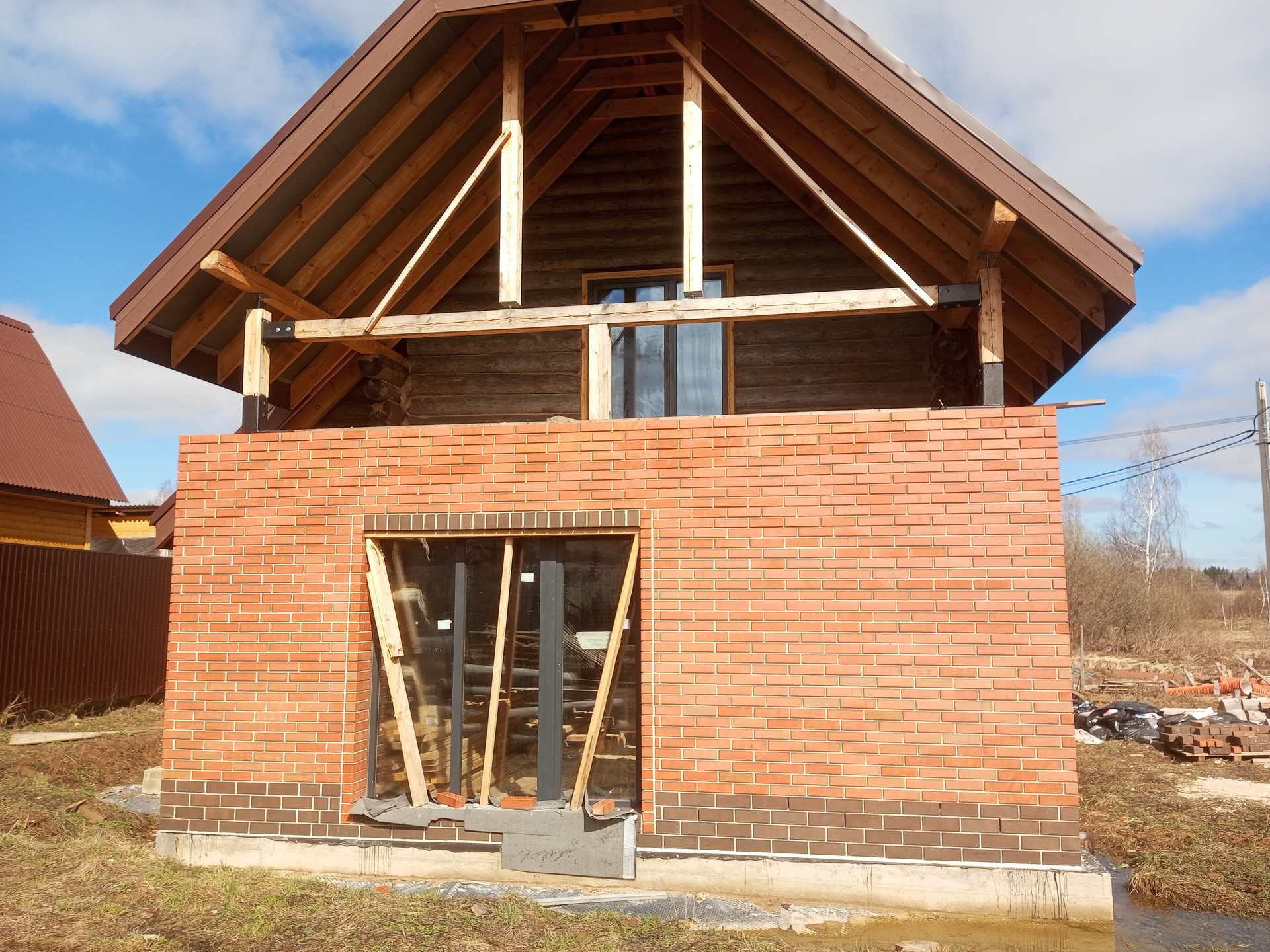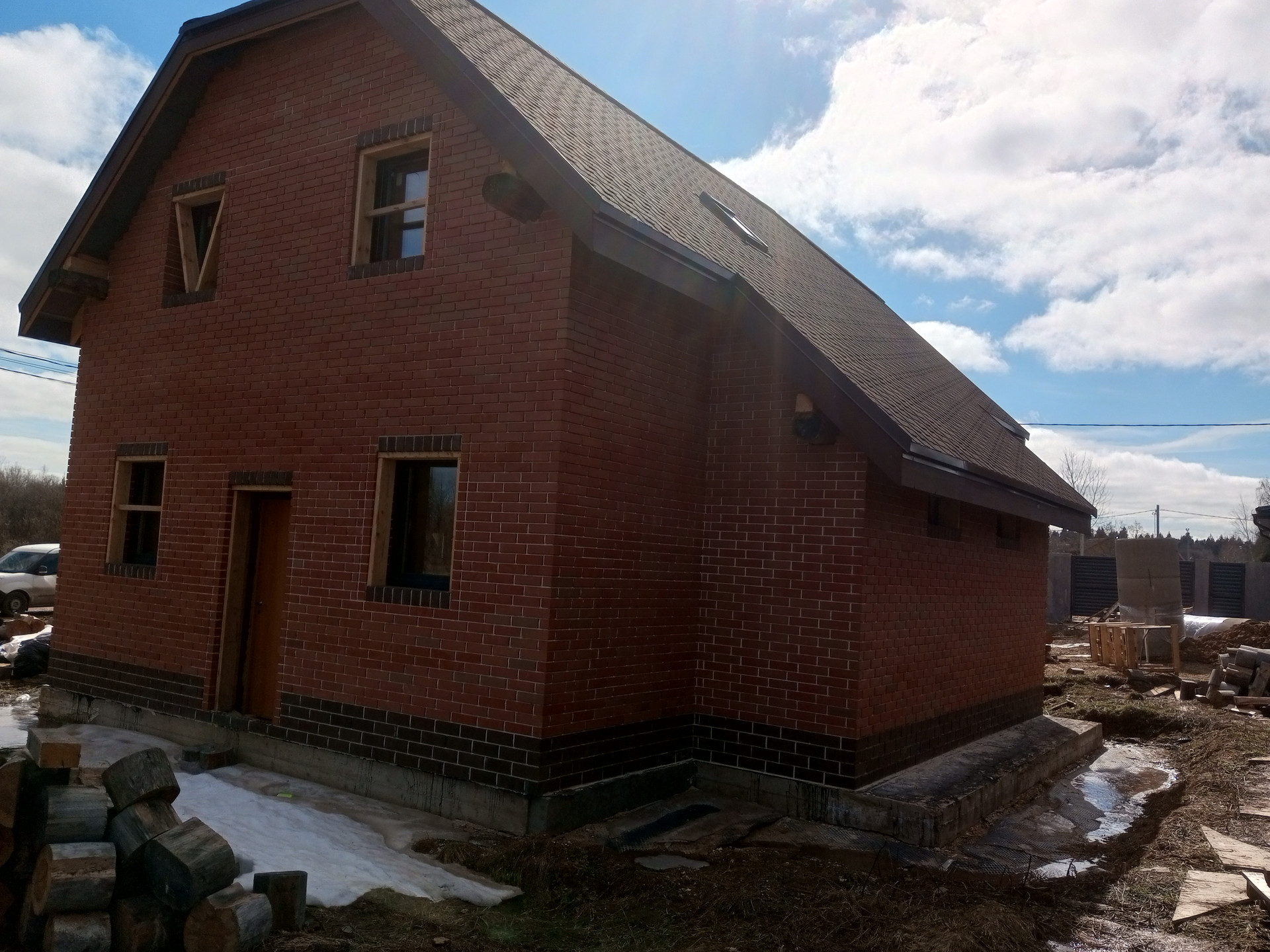 Деревянный дом диаметр бревна 30 см обложен кирпичом. Фундамент монолитная плита . мягкая кровля. Дом стоит на кадастровом учёте возможно прописка. Земли населённых пунктов без дополнительных оплат