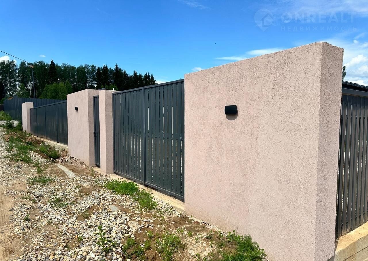 Забор - металлический евроштакетник, колонны из кирпича.