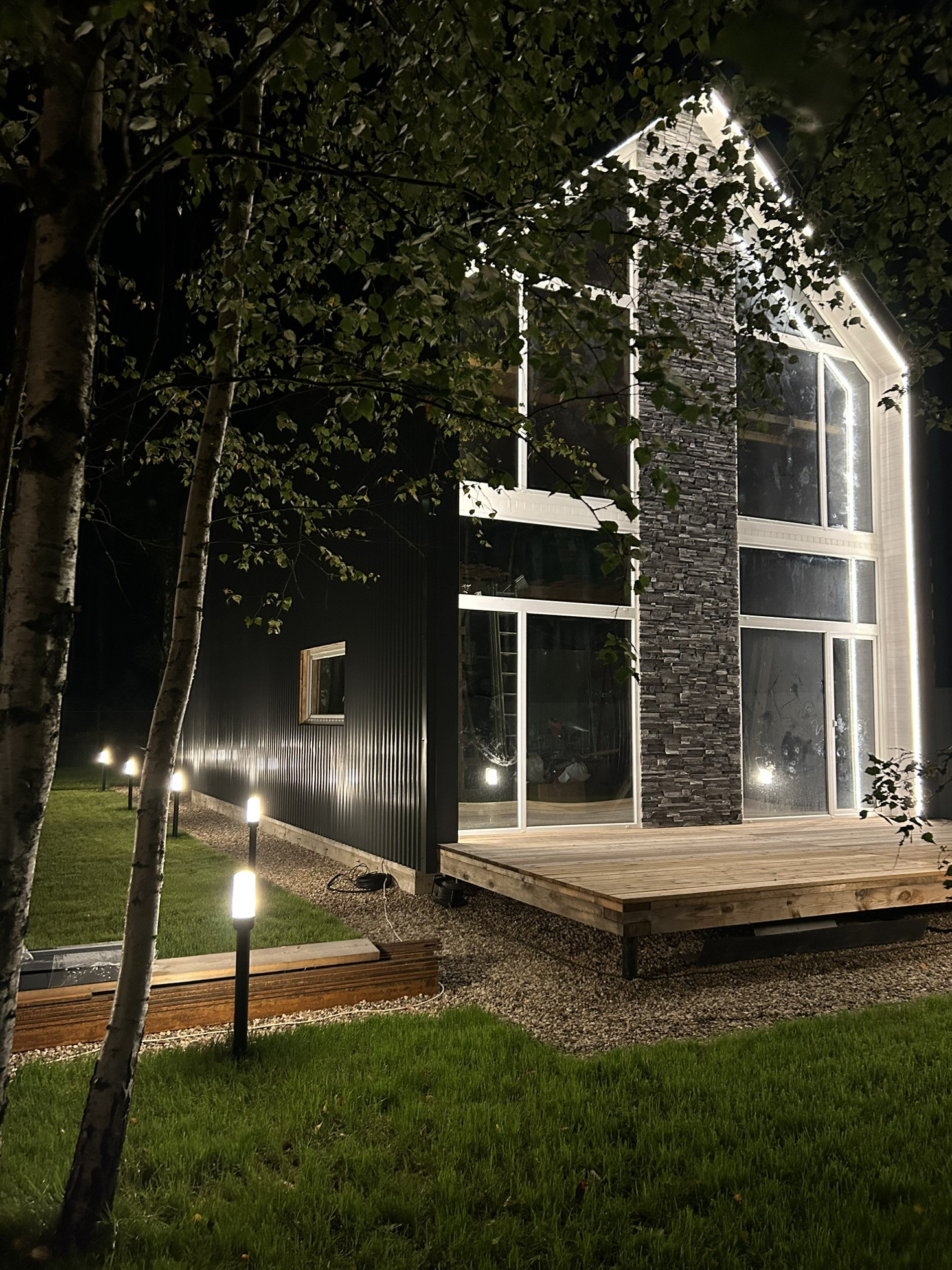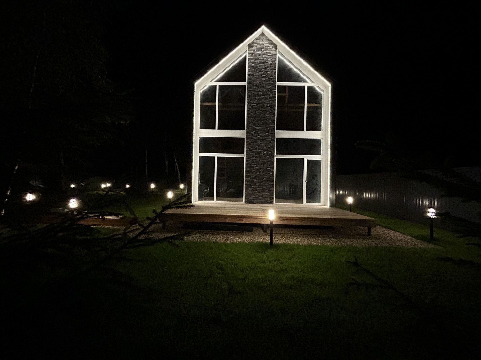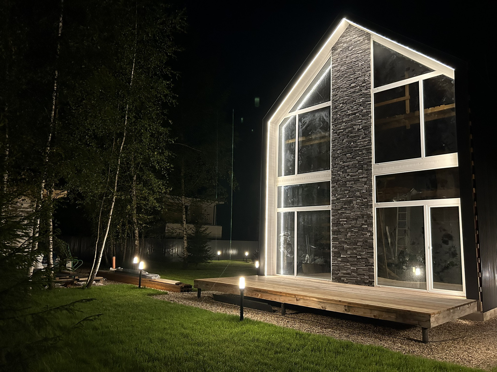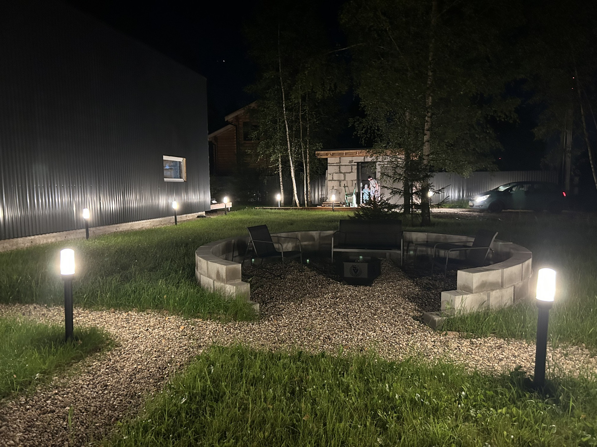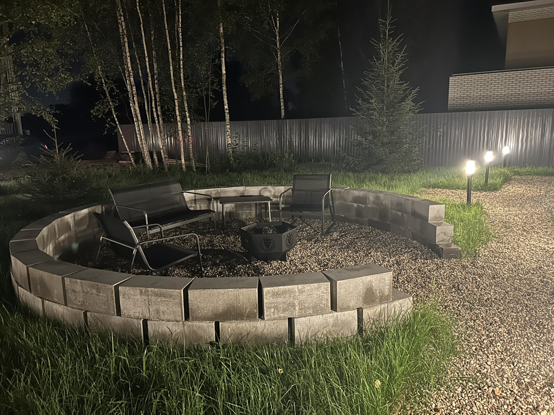 Инстаграмное костровище, мангальная зона и освещение по всему участку.