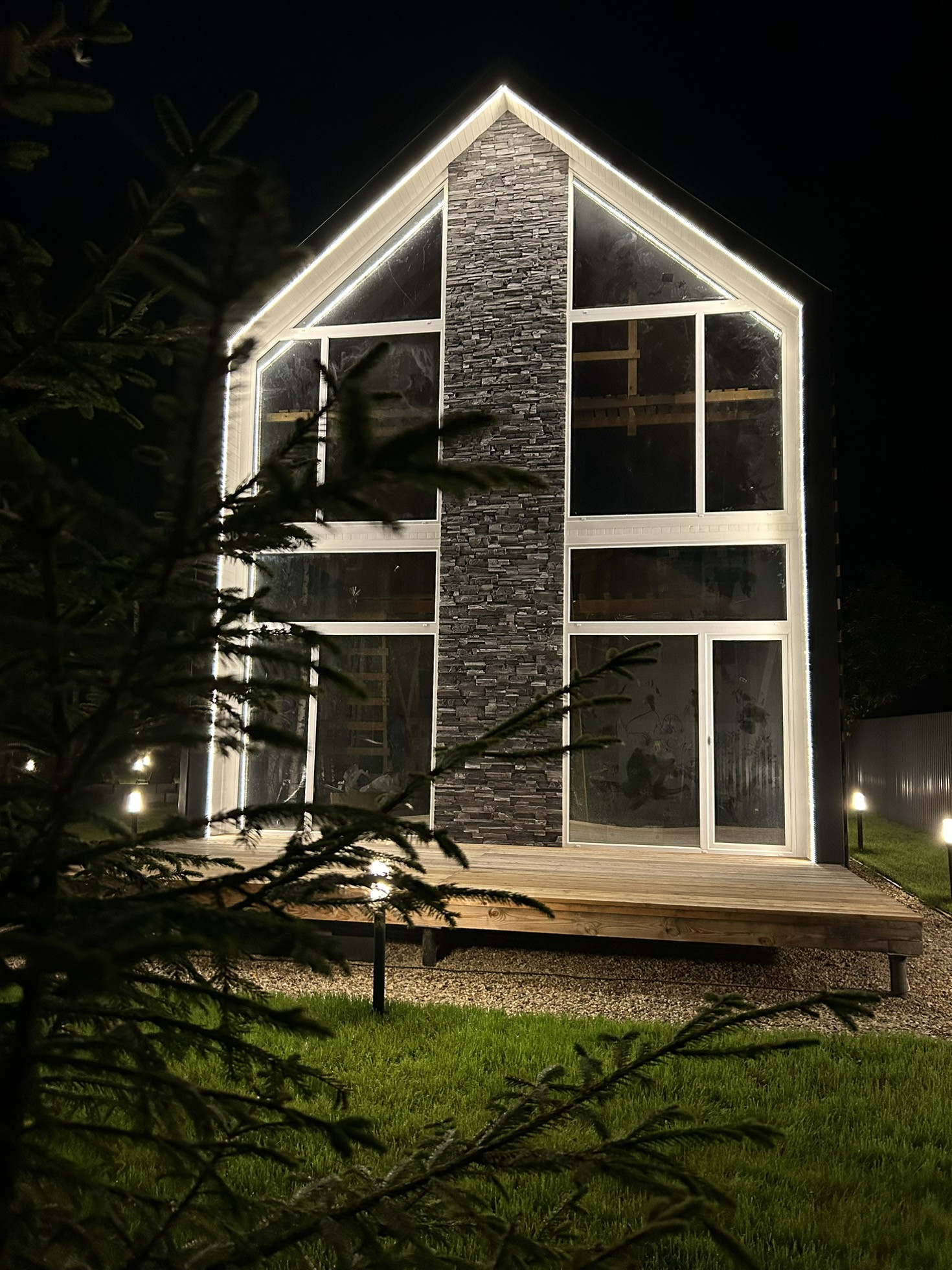Дом построен на полноценном ленточном фундаменте, никаких танцующих свай).