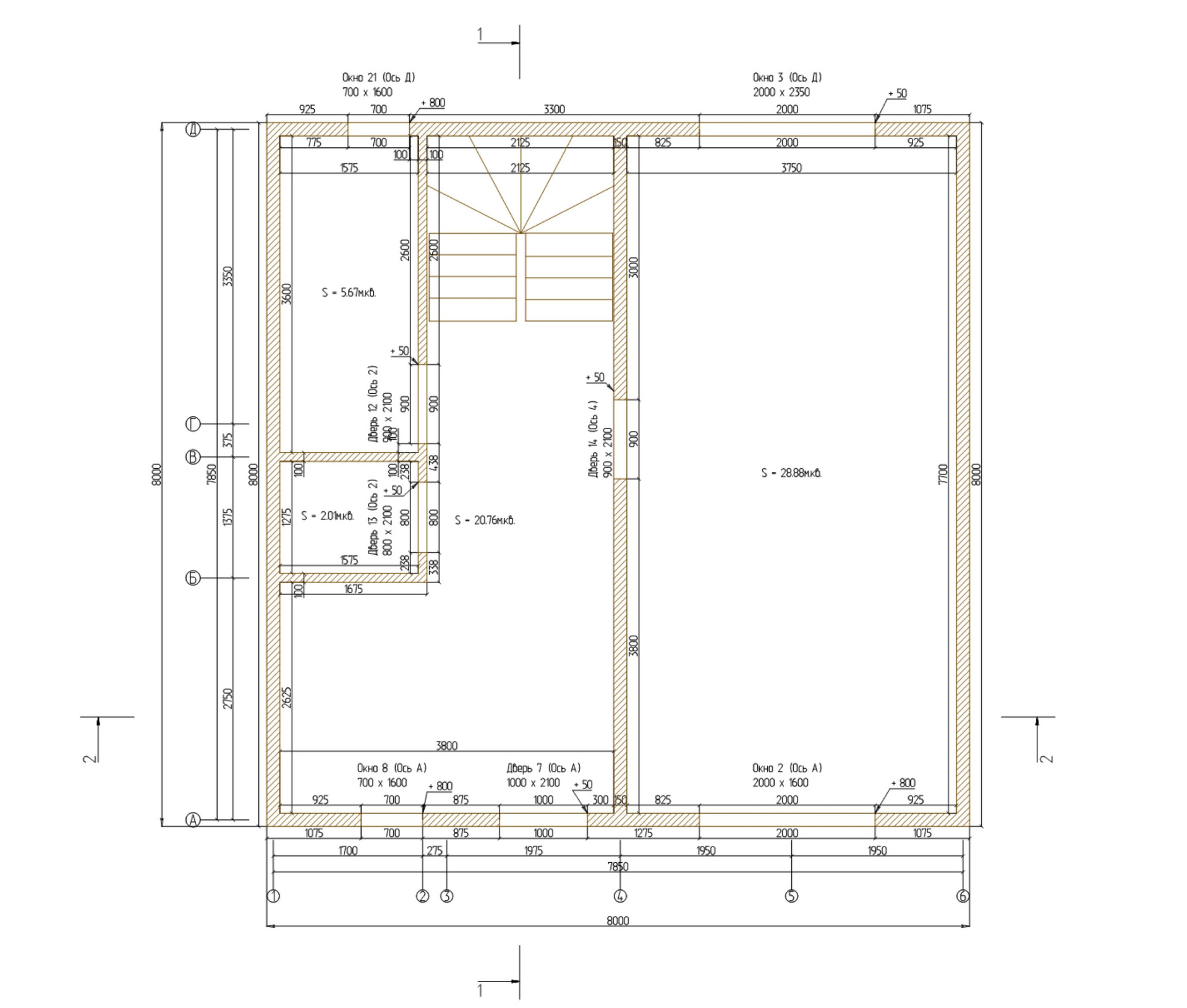 Дом двухэтажный 8х8 метров, построен по каркасной технологии.