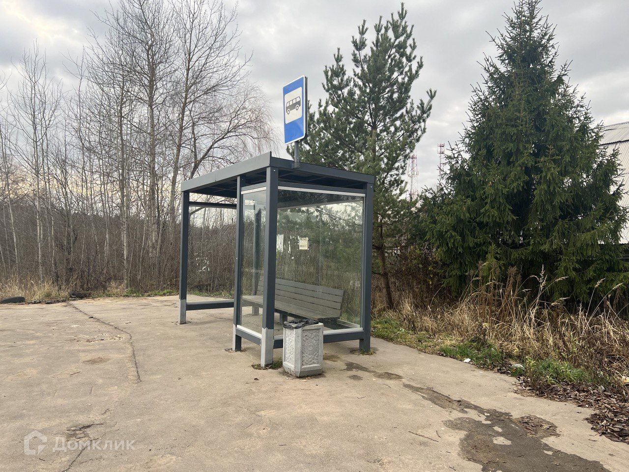 Остановка общественного транспорта, у въезда в поселок. Автобус ходит до г. Истра, откуда на электричке до Москвы 35 - 40 минут.