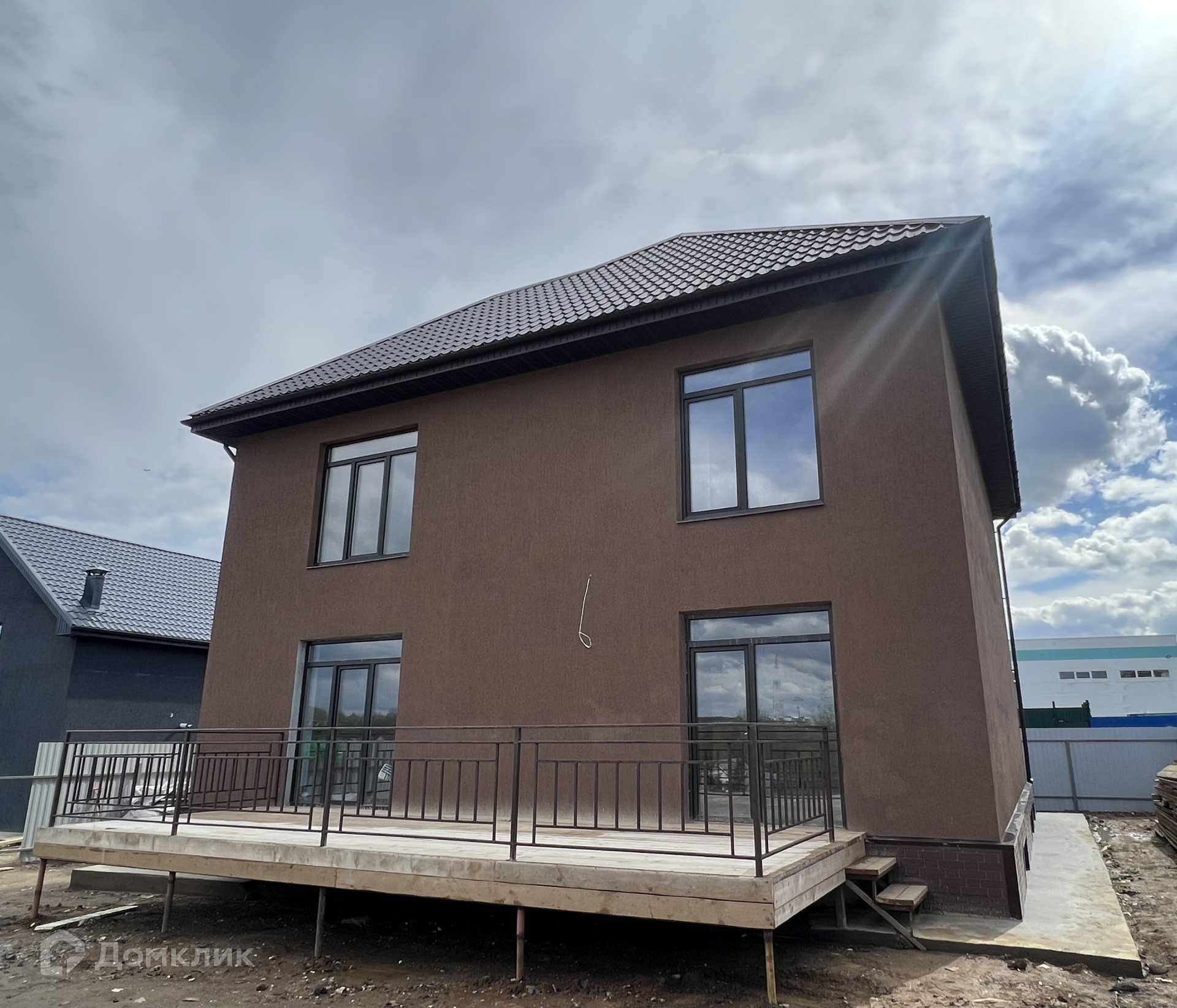Дом построен из качественного газоблока 300 мм., снаружи отделан декоративной штукатуркой Cerezit ("мокрый фасад"), на основе специального утеплителя в 100 мм., установлены качественные панорамные окна Rehay с тройными энергосберегающими стеклопакетами, кровля из деревянной стропильной системы с утеплением в 200 мм., железобетонные плиты перекрытия 220 мм. Фундамент блоки ФБС.