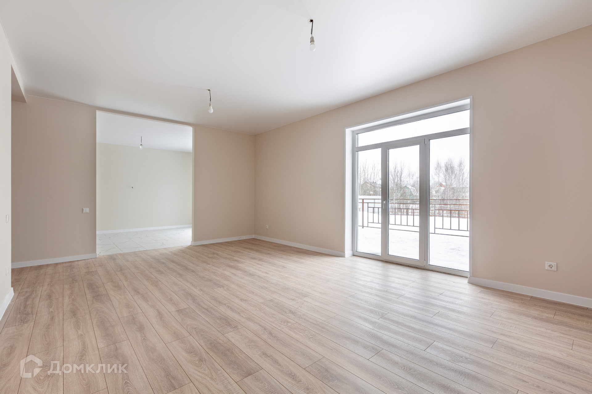 -просторная кухня-гостиная с французскими окнами в пол и выходом на террасу,