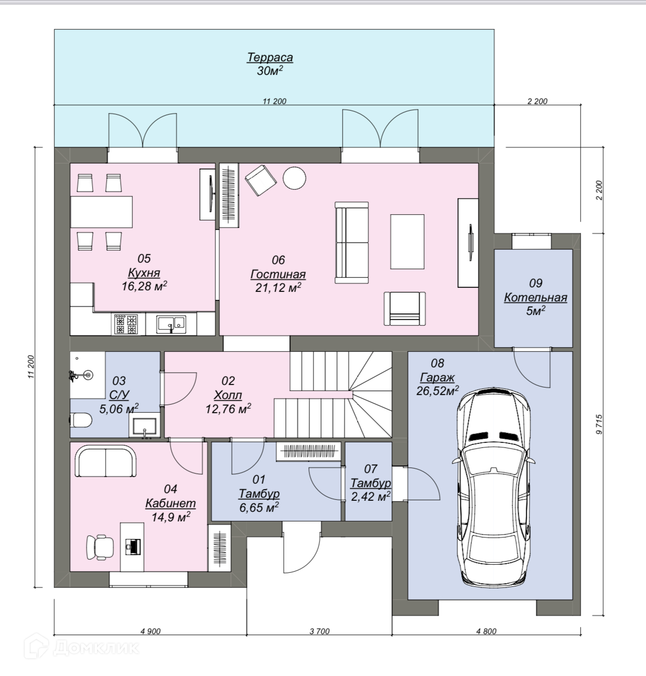 В доме удобная и продуманная планировка, на первом этаже:
