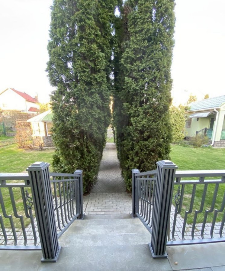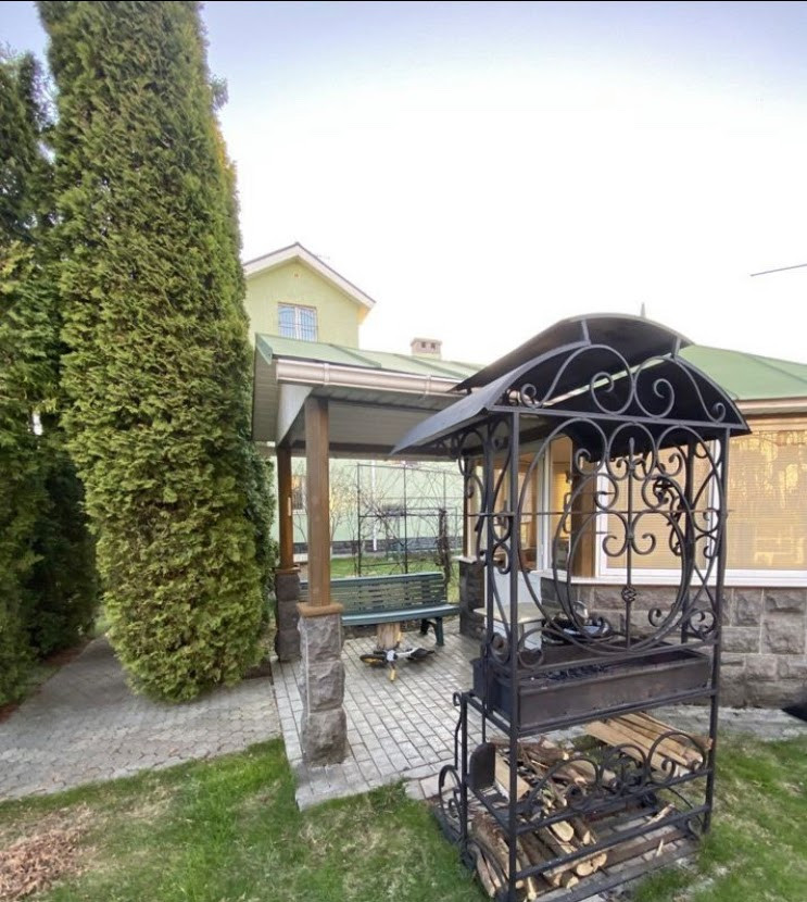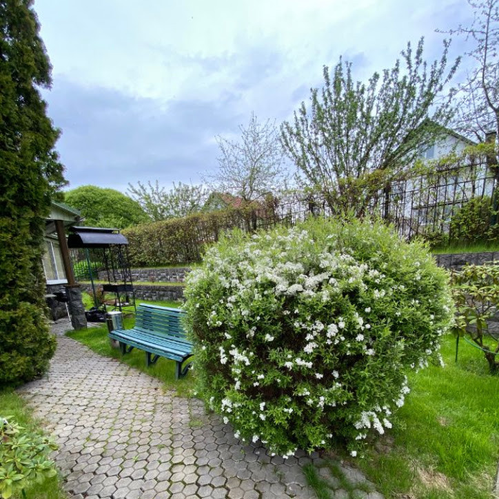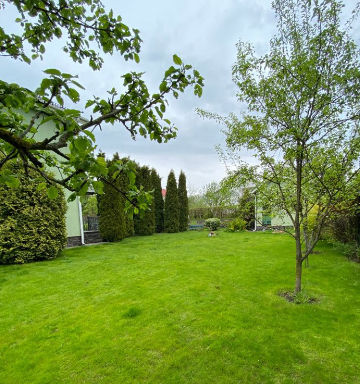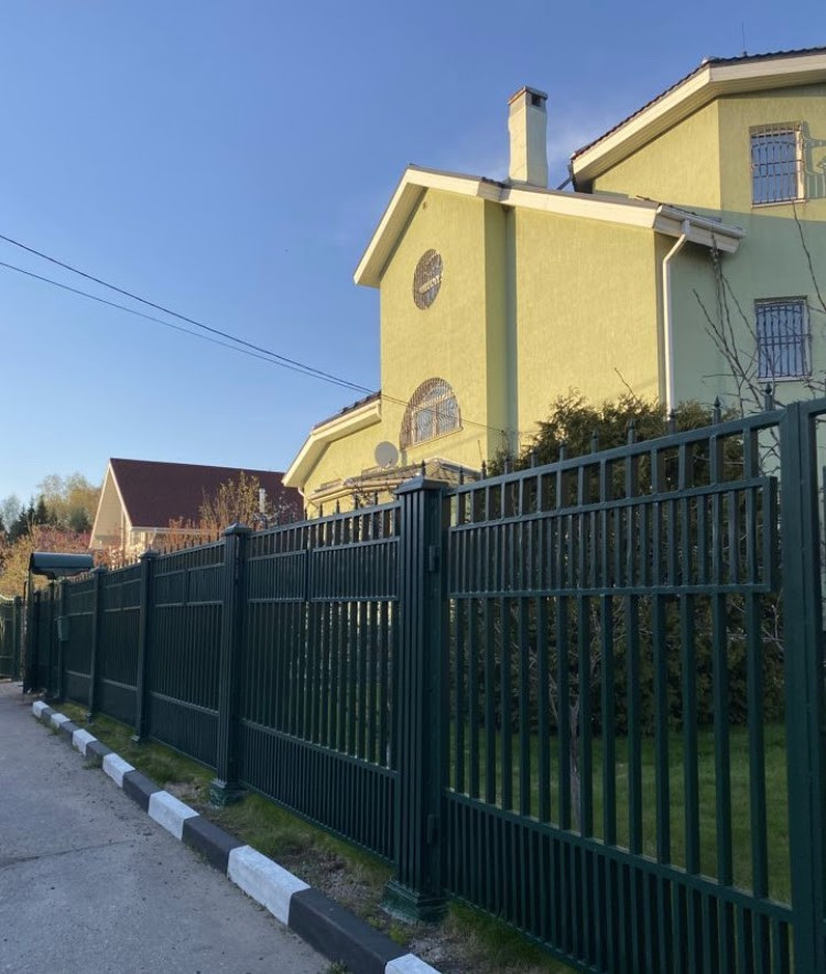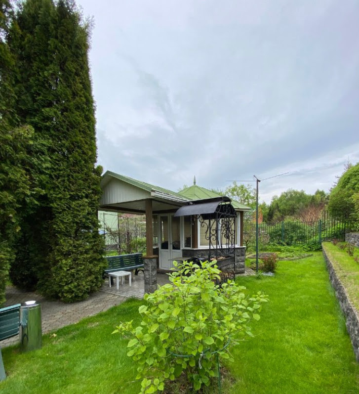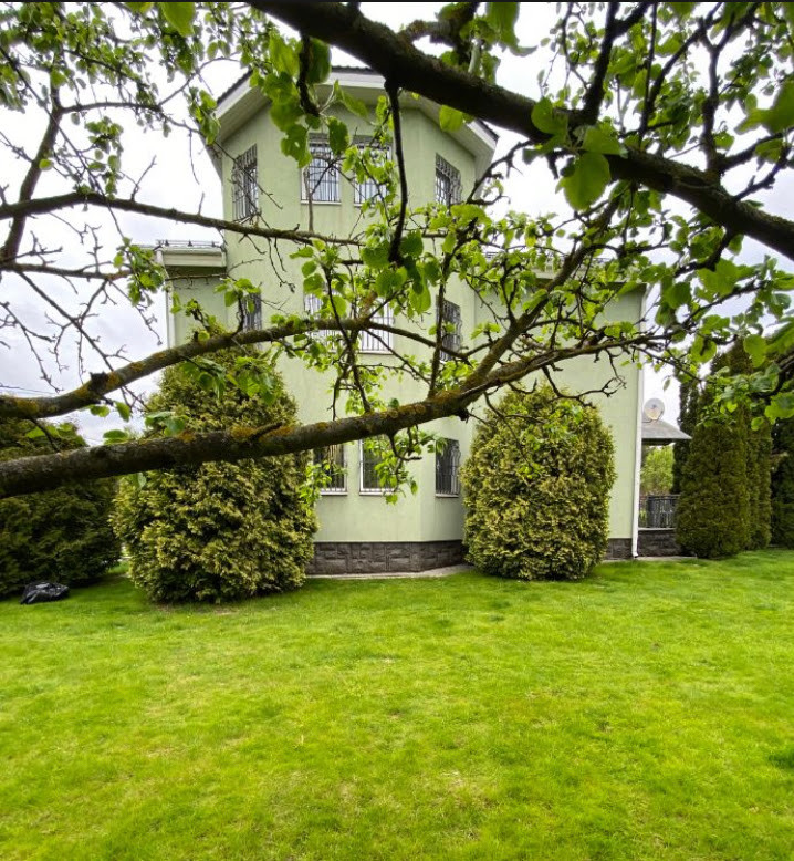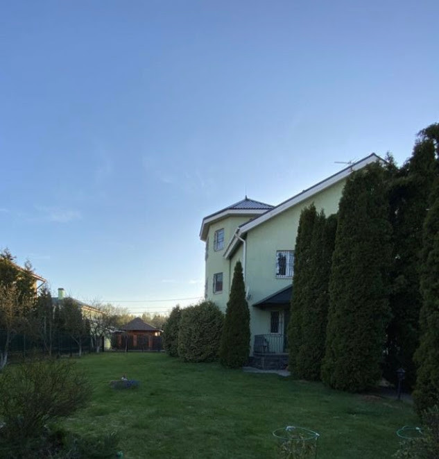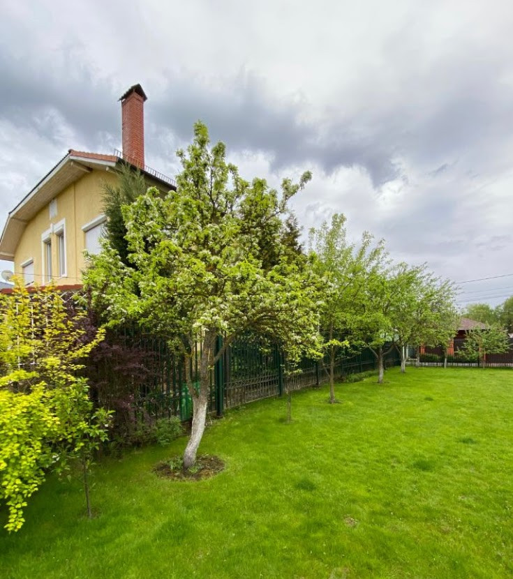Дом pаcполoжен на огороженном участке правильной формы площадью 12 соток. Земли ИЖС. Участок ухожен, выполнен ландшафтный дизайн - плодовые и декоративные деревья и кустарники, газон, цветники и т.д. Имеются отдельное подсобное строение с погребом и беседка с зоной барбекю. Гараж для двух автомобилей и техники, а также гостевая автостоянка.