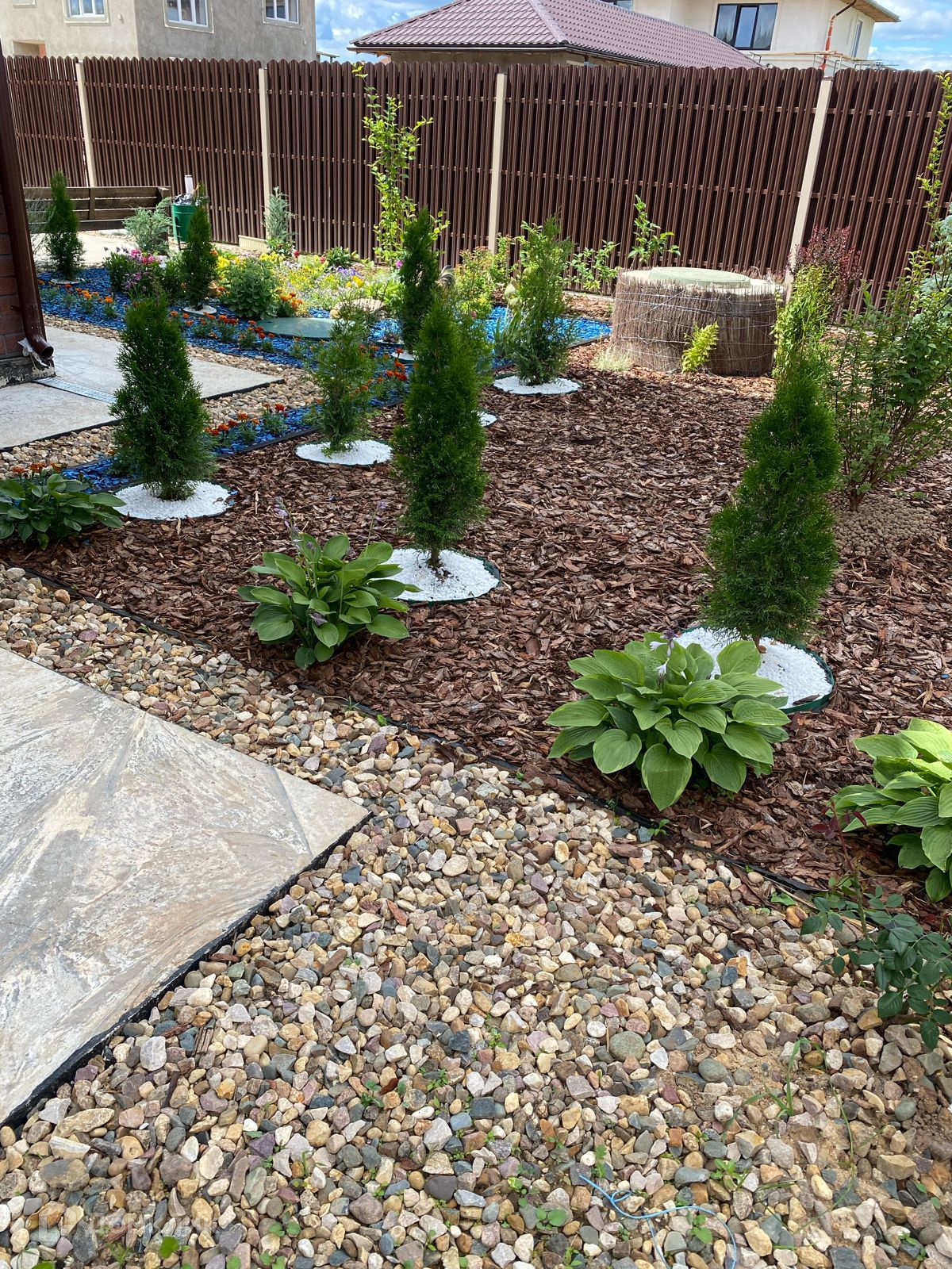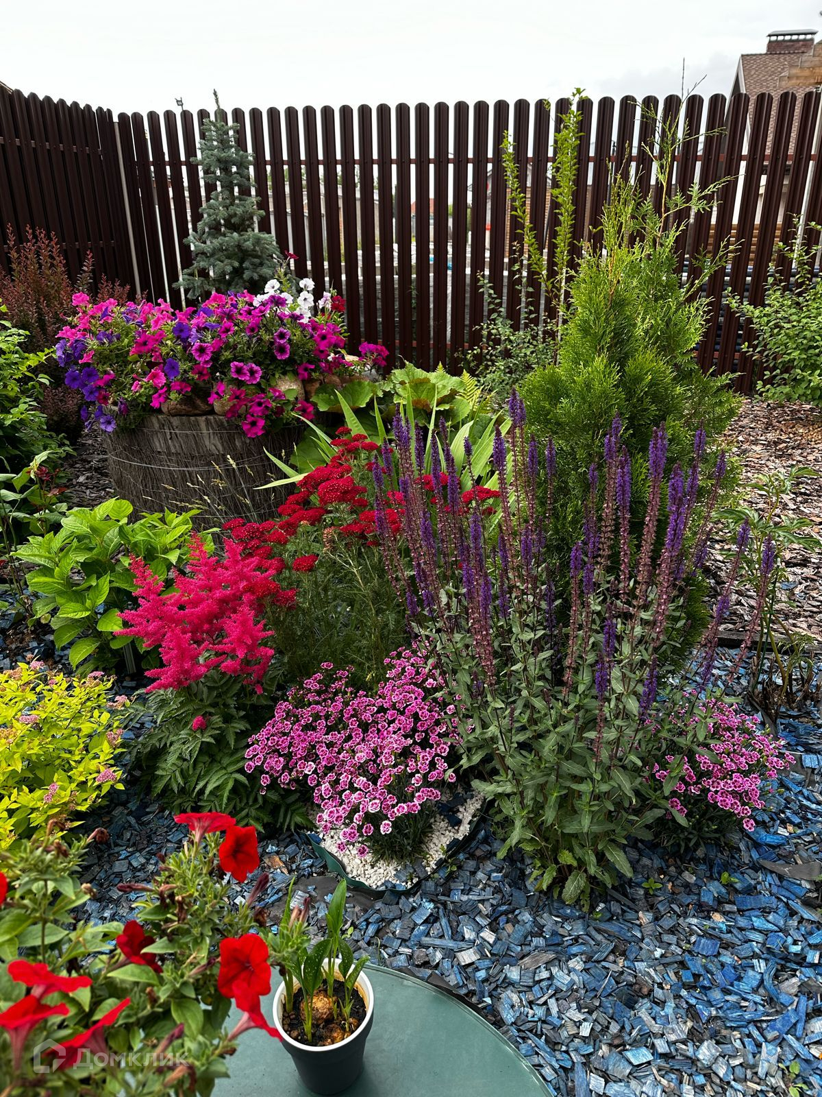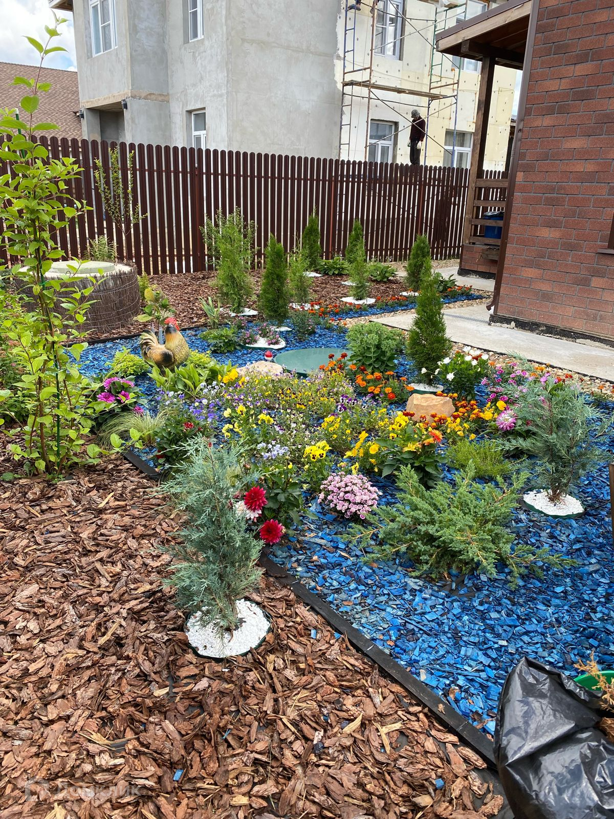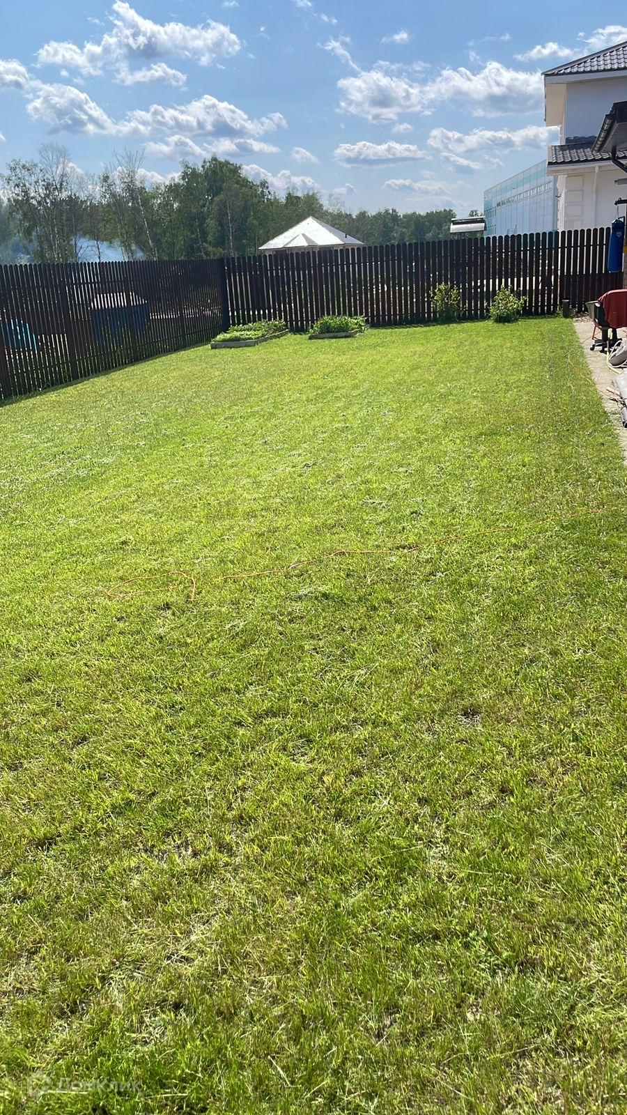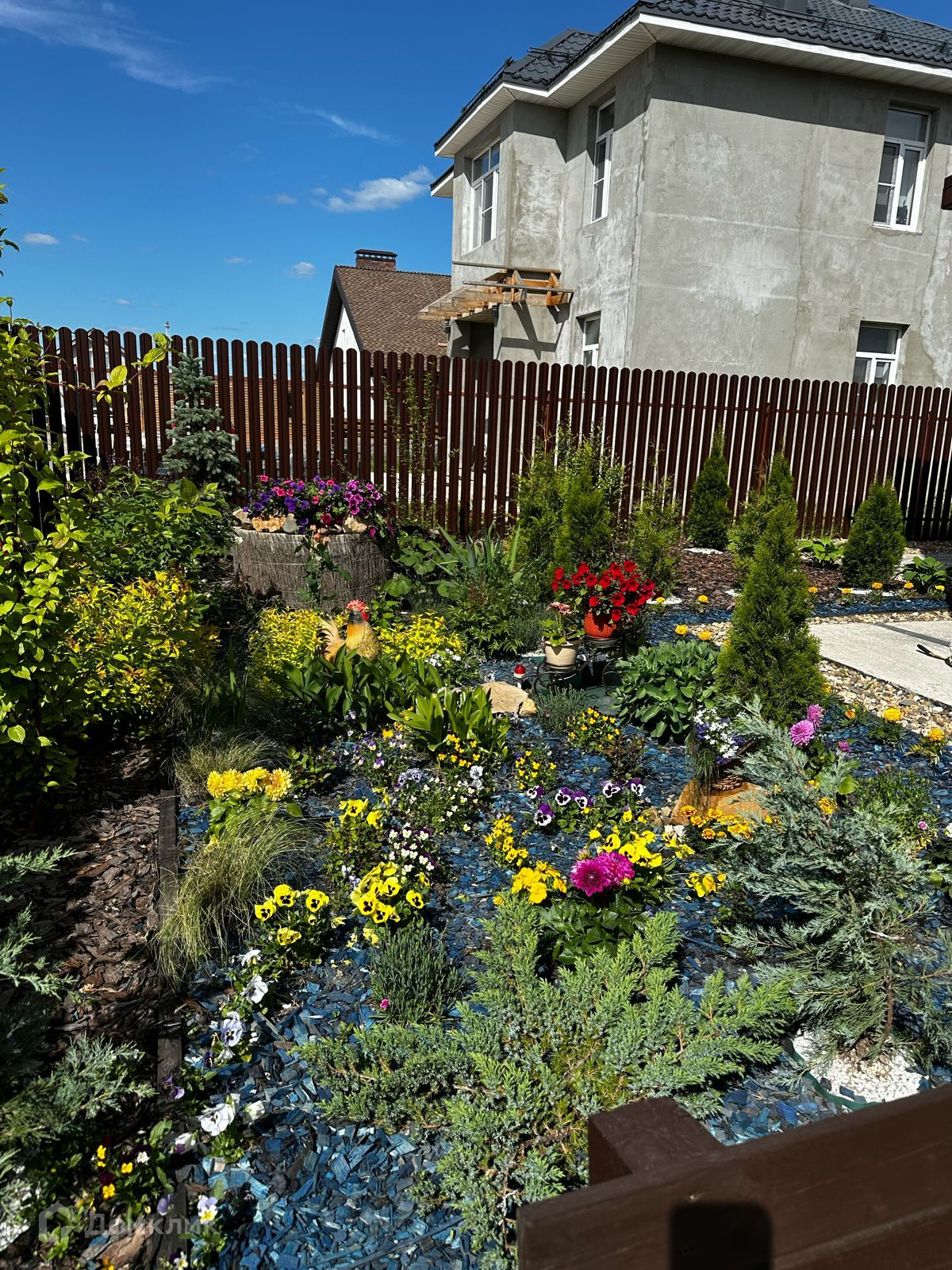 Гараж на 1 машину, с отдельным входом в дом и бойлерной. Участок на 6 соток с ландшафтным дизайном, огорожен забором.