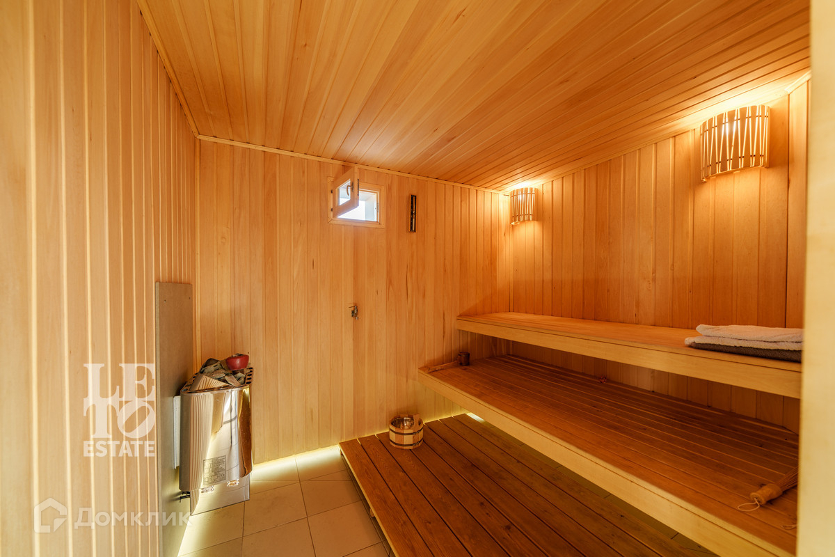 Отдельно стоящая баня включает в себя террасу, кухню, парную, душевую, санузел, а также помещение для персонала с комнатой и санузлом.