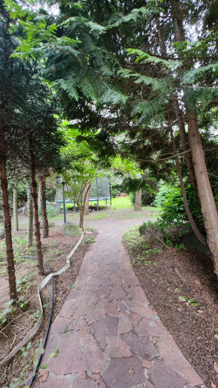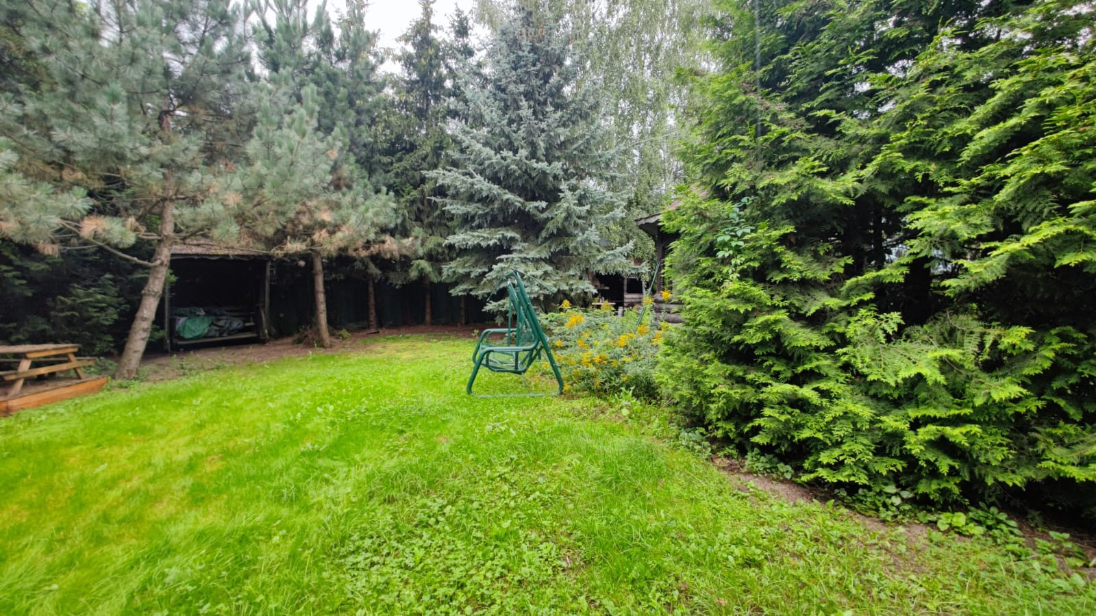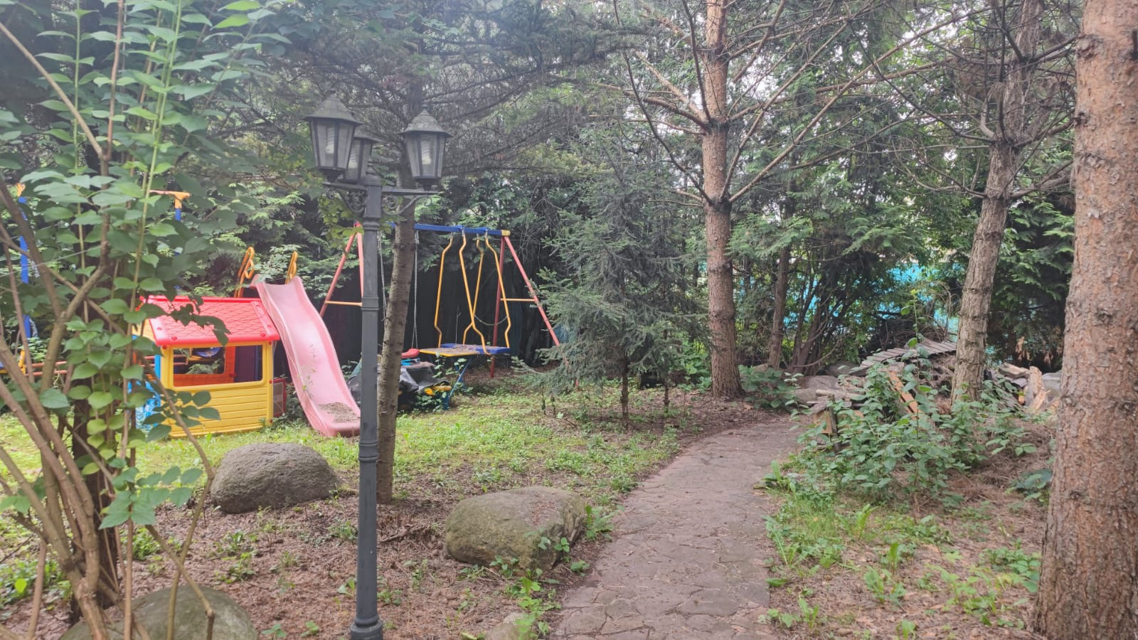 Участок правильной формы, без перепадов, имеются небольшие приспособления для детских игр, подведена тропинка к зоне отдыха. Забор поставлен. На участке высажены деревья, в том числе плодовые и туи.