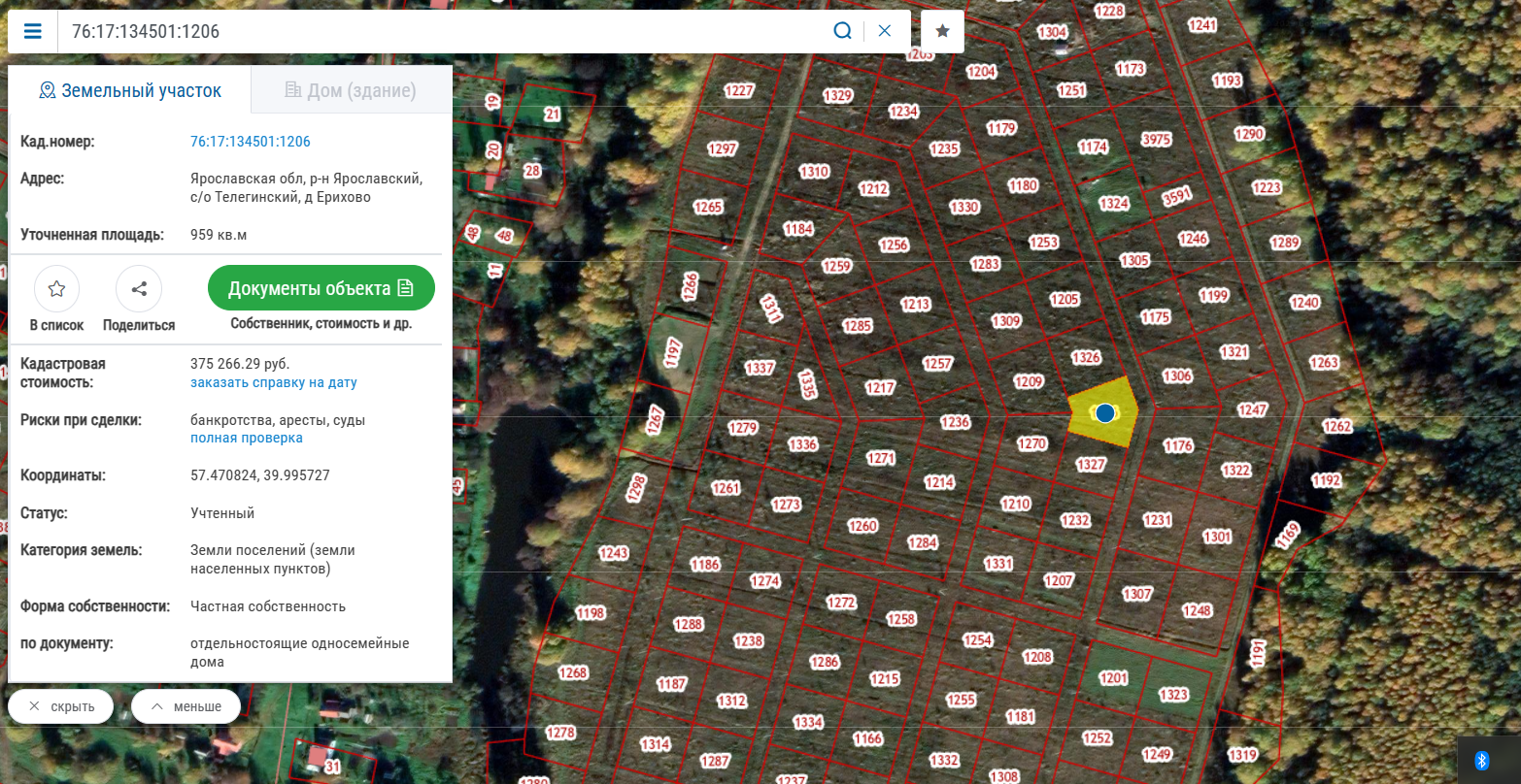 Продам земельный участок, площадью 9,59 соток, находящийся по адресу:  Ярославская обл., р-н Ярославский, с/о Телегинский, д. Ерихово, кадастровый номер: 76:17:134501:1206. Участок в собственности, все документы есть.