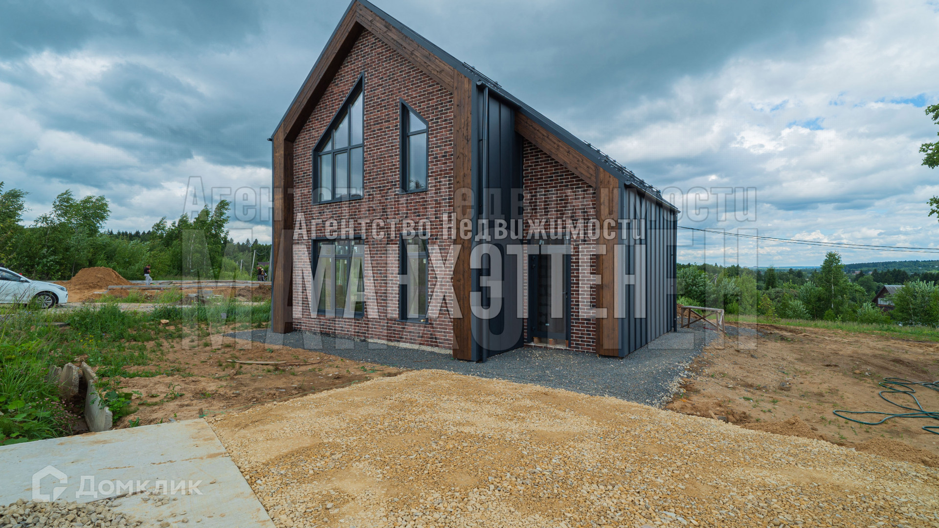 Наружная отделка стен здания: комбинированная (фальц, планкен, клинкерная плитка);