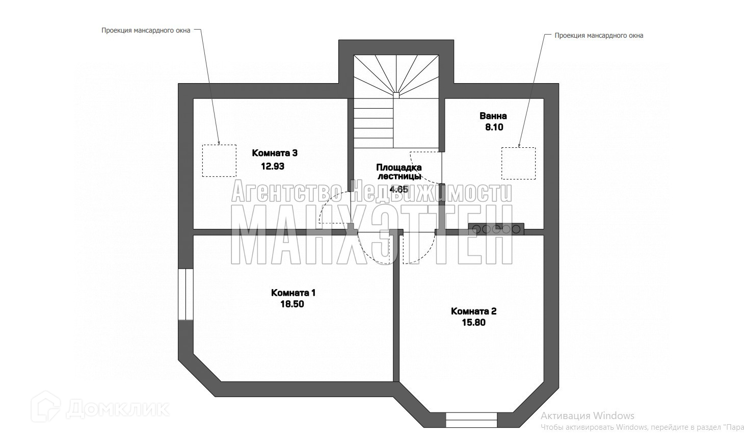 3 комнаты-12,93 кв.м.,18,5 кв.м., 15,8 кв.м, сан/узел 8,1кв.м.