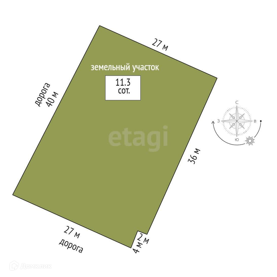 Площадь участка 11.3 сот.