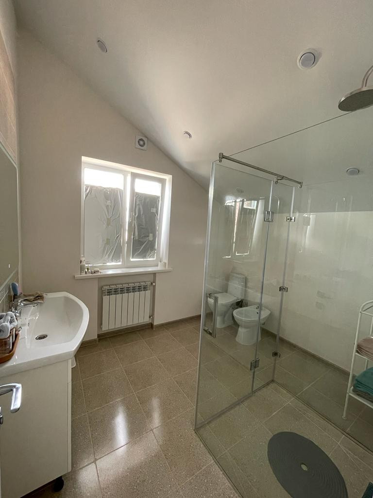 Коттеджный посёлок, дома типовые, комплектация под ключ. Дом 160м2 + терраса 30м2, участок 15 сот.,д. Ермолино, г.о. Истра, до центра Истры 3км. Фундамент ленточный, газобетонный блок, фасад- кирпич, перекрытия плиты ЖБИ. Кровля мягкая ( Docke), утепленная 200 мм. Первый этаж: прихожая, санузел, гостевая спальня, просторная кухня-гостинная с камином и выходом на террасу и витражным остеклением в пол, установлены внутрипольные конвекторы. Второй этаж: три просторные спальни, гардеробная и санузел. В доме на всём первом этаже установлена система "тёплый пол ", второй этаж радиаторы в спальных, санузел второй этаж радиаторы и тёплый пол. Вся сантехника, электрика франция(legrand), кафель, ламинат Германия 10мм,33 класс. Участок огорожен зобором, ворота роспошные. На территории выполненно благоустройство, площадка под автомобиль(брусчатка), отмоска вокруг дома (брусчатка). Электричество 15кВа, вода, газ, канализация. Инфраструктура г. Истры 3км: школы, дет.сады, больницы, торговые центры, кинотеатры, Новый Иерусалим. Прописка.