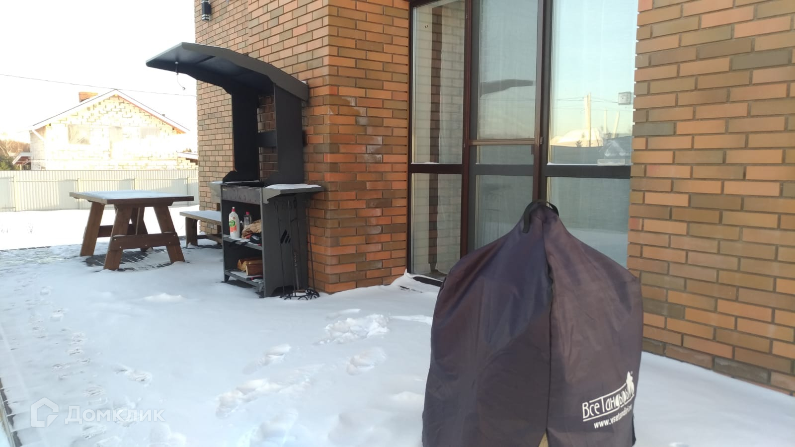Огорожен, на территории выполнено благоустройство - площадка под автомобиль, отмостка вокруг дома и терраса выполнены из брусчатки.