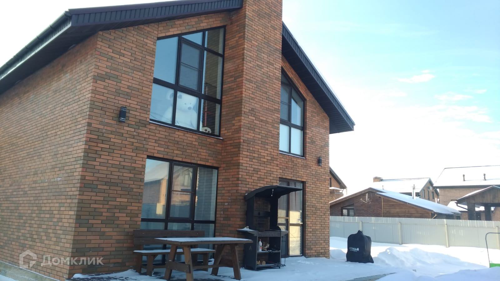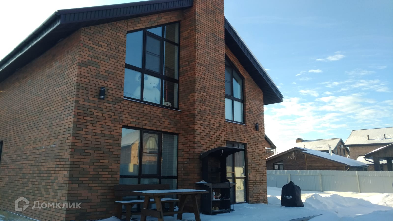 Стены- газоблок, фасад обложен отделочным кирпичом (производство -Германия);